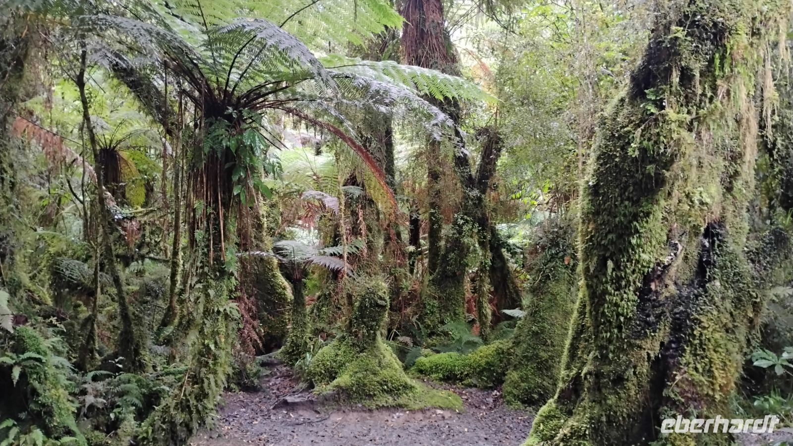 Weiter ging es zum Rimu Walk in Ohakune, wo wir einen gemütlichen Rundweg durch einen ursprünglichen Wald mit Baumfarnen und eindrucksvollen Rimu-Bäumen erkundeten. Diese hoch aufragenden, uralten Bäume sind ein fester Bestandteil der neuseeländischen Vegetation und boten eine herrliche Kulisse für diesen morgendlichen kurzen Rundweg.