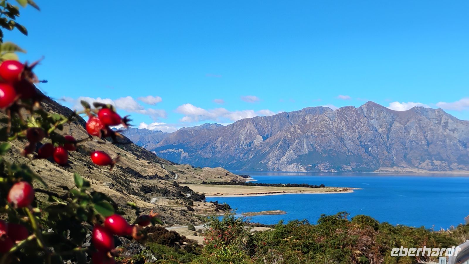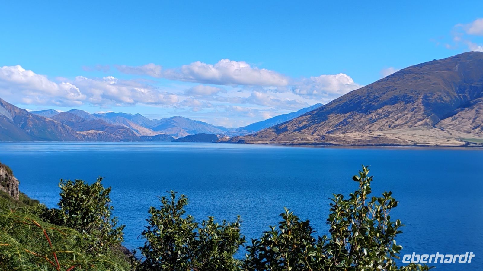 Unterwegs passierten wir den malerischen Lake Hawea, der Zwillingssee des Lake Wanaka, den wir kurz darauf erreichten. Mit seinem tiefblauen Wasser strahlten er eine ganz eigene, fast schon meditative Atmosphäre aus. Der Lake Wanaka ist Neuseelands viertgrößter See und erstreckt sich über eine Fläche von 192 Quadratkilometern.
