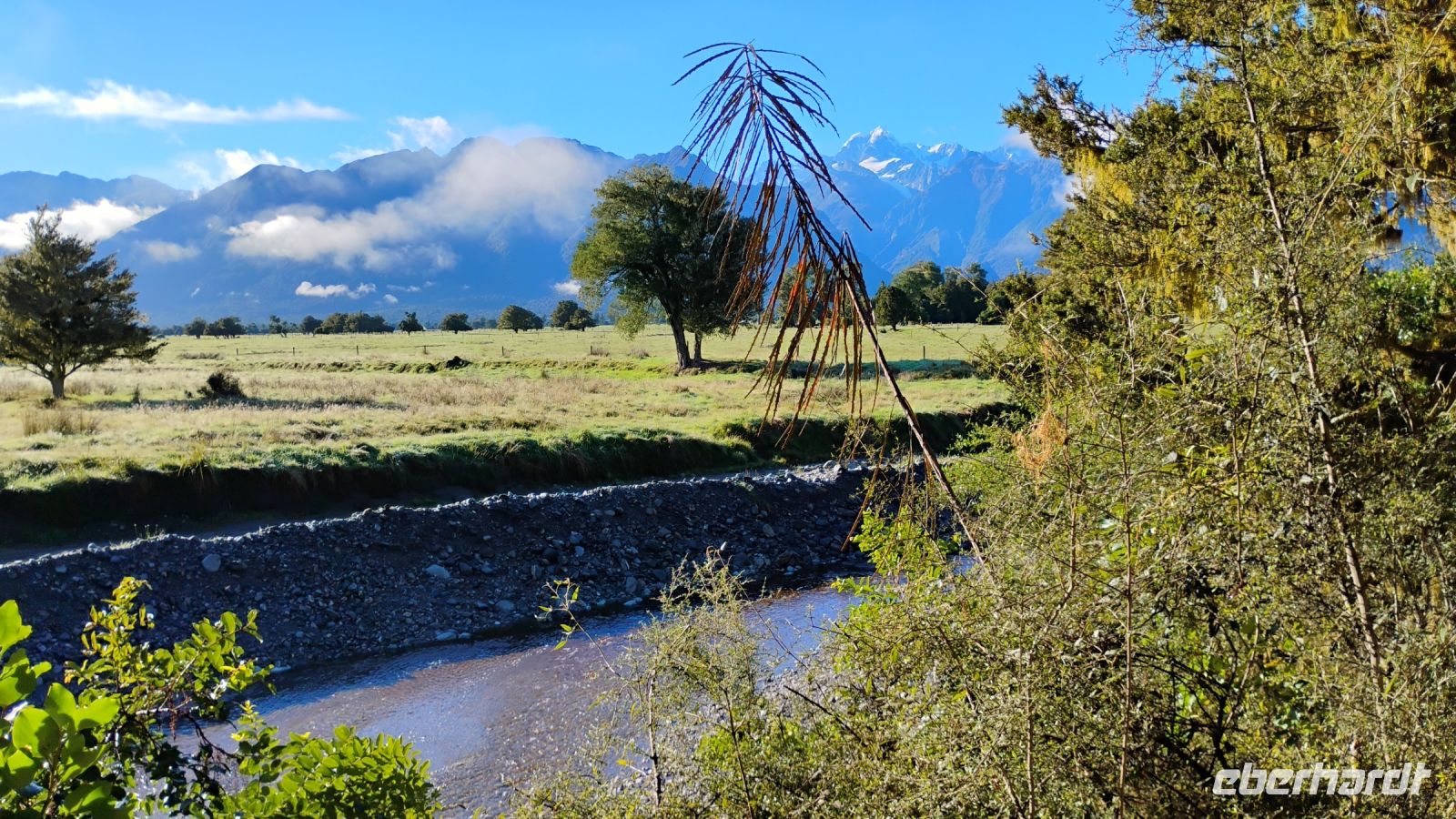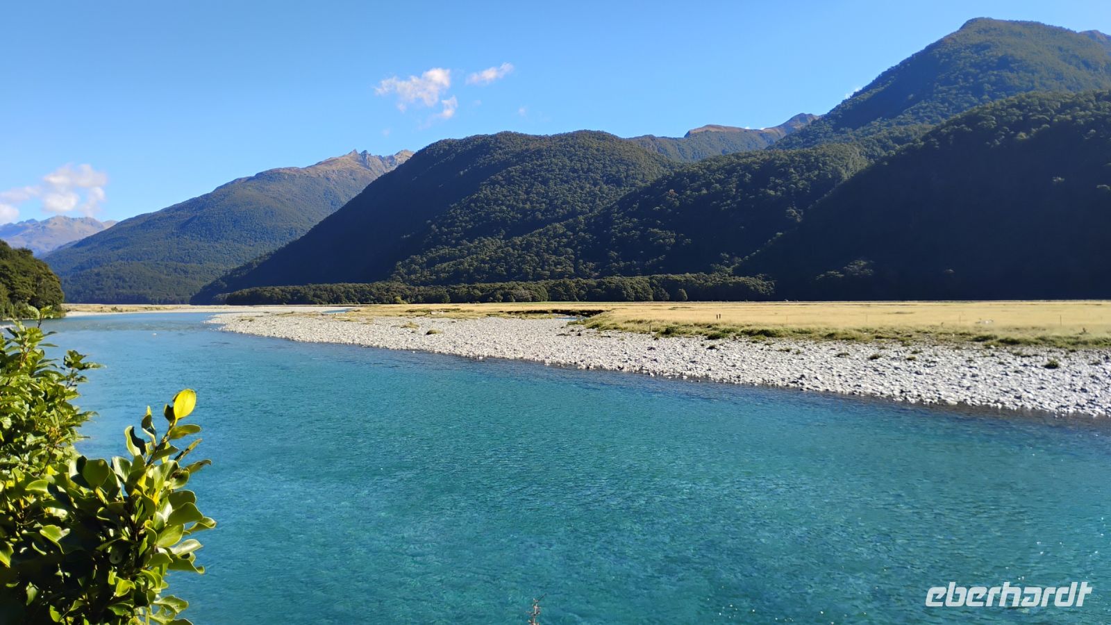 Weiter ging es entlang des Haast Rivers, während Alec uns interessante Geschichten über Julius von Haast, den Namensgeber des Flusses und des Ortes, erzählte. Bei einem weiteren Halt bot sich uns die Gelegenheit, die beeindruckende Flusslandschaft fotografisch festzuhalten.