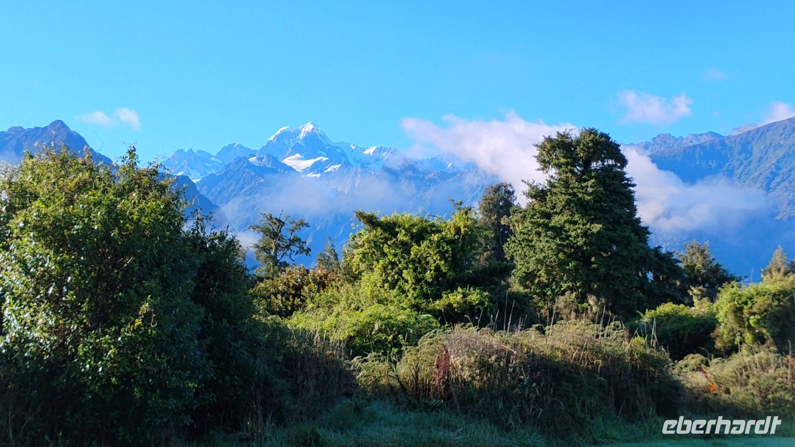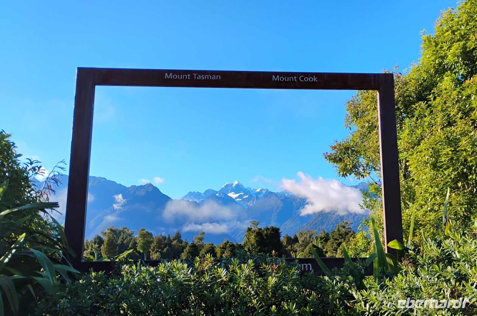 Nach der Landung wurden wir von Alec und dem Rest der Gruppe abgeholt, um gemeinsam zu einer kurzen Wanderung zum Lake Matheson aufzubrechen. Dieser idyllische See ist bekannt für seine perfekte Spiegelung der umliegenden Bergwelt – ein faszinierendes Naturschauspiel. Im Anschluss ließen wir das Panorama bei einer Kaffeepause im Café am Ende des Wanderweges auf uns wirken, während sich vor uns ein grandioser Blick auf den Mount Tasman eröffnete.