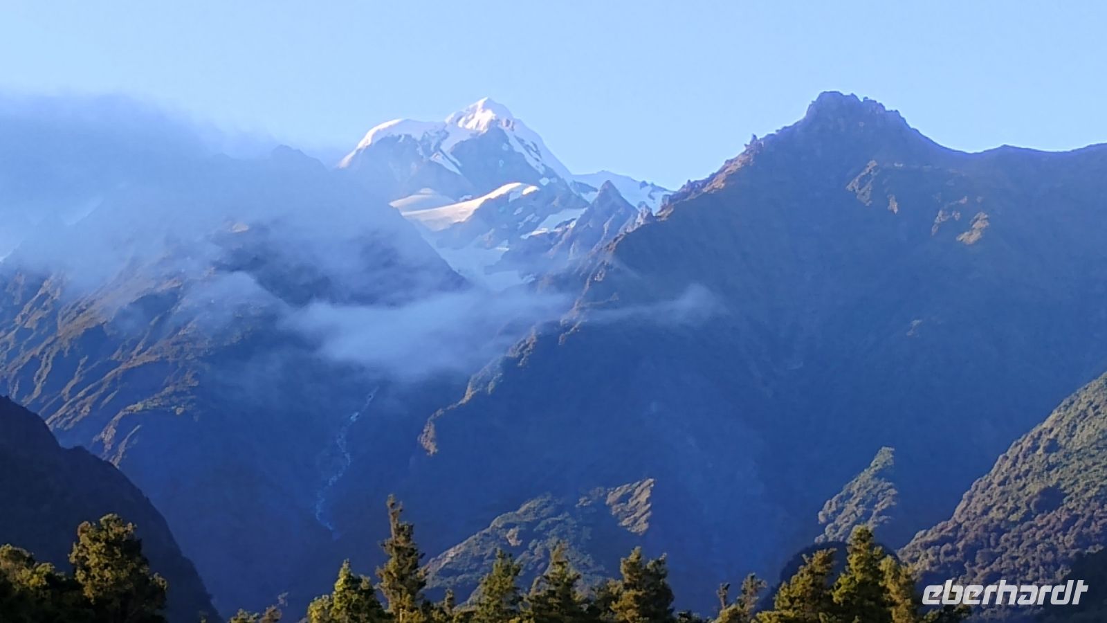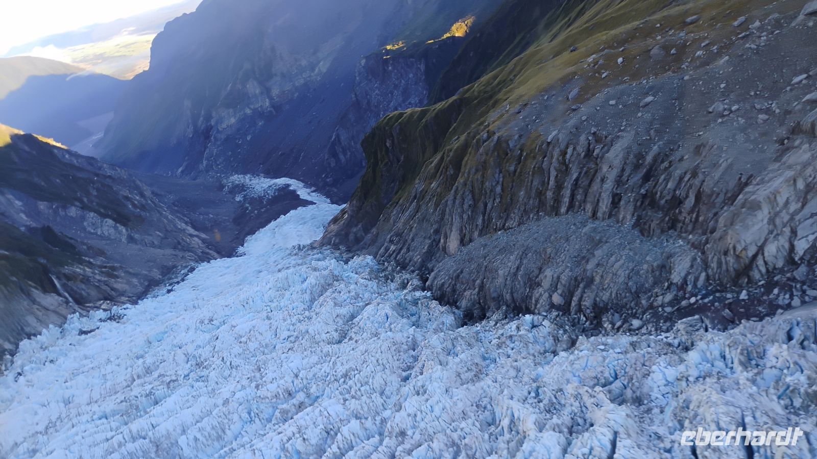 Dabei erzählte Alec uns die Maori-Legende: Die Bergsteigerin Hine Hukatere verlor einst ihren Geliebten Wawe durch eine Lawine. Ihre unaufhörlichen Tränen verwandelten die Götter in Eis – so entstand der Gletscher, der heute als eines der eindrucksvollsten Naturwunder Neuseelands gilt.