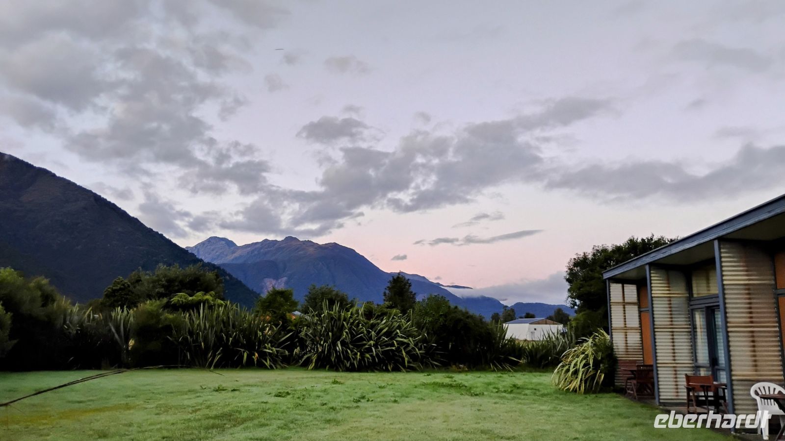 Obwohl unsere Zimmer alle extra mit Blick auf den Mount Cook gebucht wurden, blieb uns dieser Anblick aufgrund dichter Wolken und Regens verwehrt. Dennoch hoffen wir, dass sich das Wetter bis morgen bessert und wir einen Blick auf Neuseelands höchsten Berg erhaschen können.