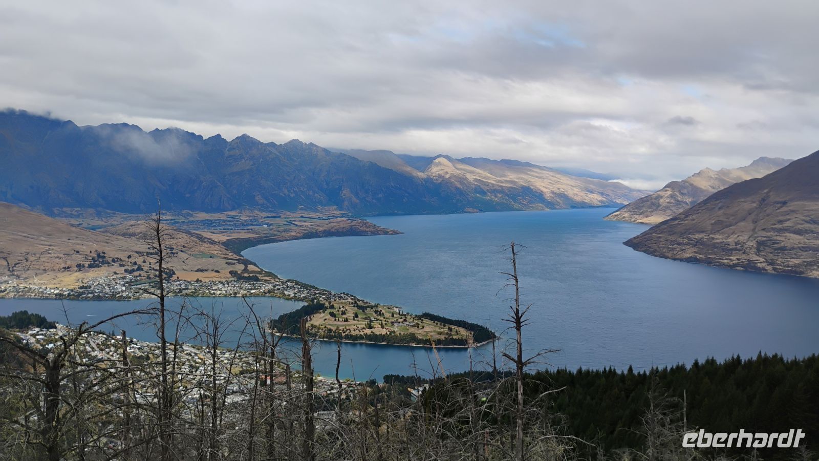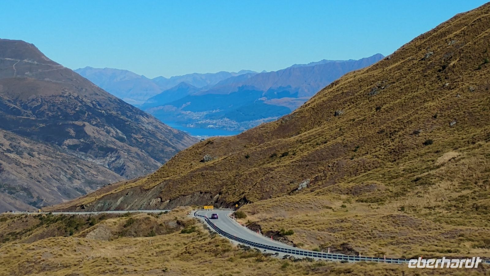 Weiter ging es über den landschaftlich reizvollen Crown Range Pass, von dem sich uns ein atemberaubender Blick auf den Wakatipu-See und Queenstown bot.