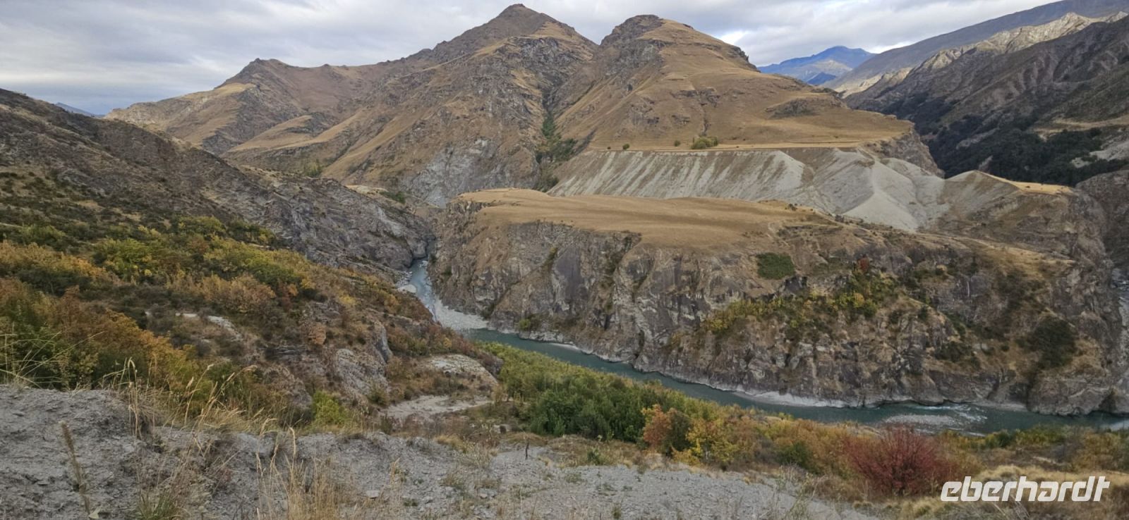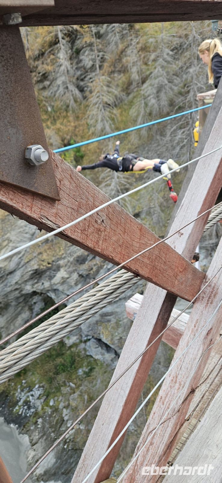 Der Shotover River, der tief unten durch den Canyon fließt, war einst eine der reichsten Goldlagerstätten des Landes. Während der Tour erfuhren wir spannende Geschichten über die Goldgräberzeit und machten zahlreiche Stopps, um die spektakulären Ausblicke zu genießen. Besonders beeindruckend war der Stopp an einer historischen Brücke, wo wir Bungee-Springern zuschauten, die sich wagemutig in die Tiefe stürzten.