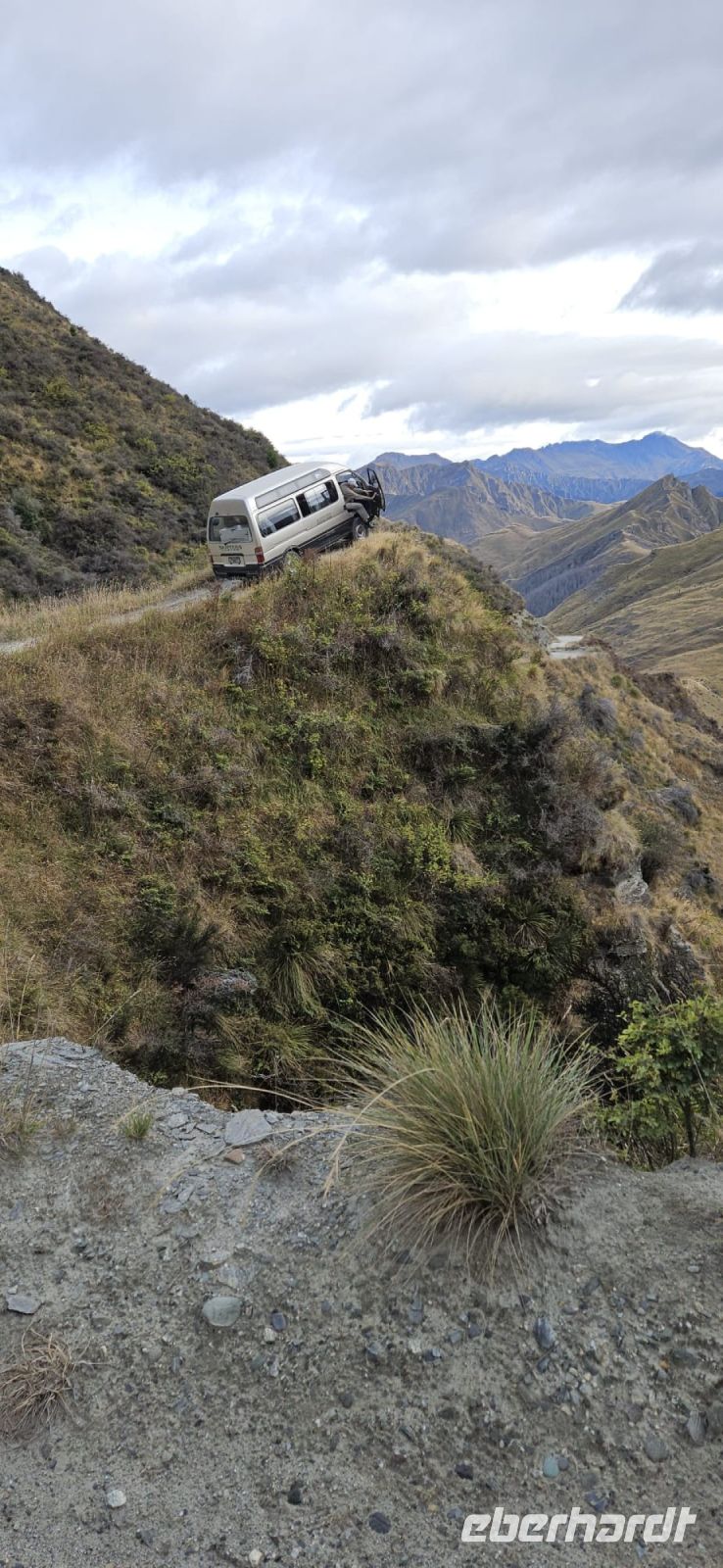 Einige Reisende unserer Gruppe entschieden sich für eine Erkundungstour in den legendären Skippers Canyon, eine der spektakulärsten Schluchten Neuseelands. In einem robusten 4WD Toyota Kleinbus aus den 1990er Jahren brachen wir von Queenstown auf und fuhren auf einer schmalen, kurvenreichen Schotterstraße durch die beeindruckende Schlucht. Oft ging es direkt am steilen Abgrund entlang – ein Nervenkitzel, der die Fahrt noch spannender machte.