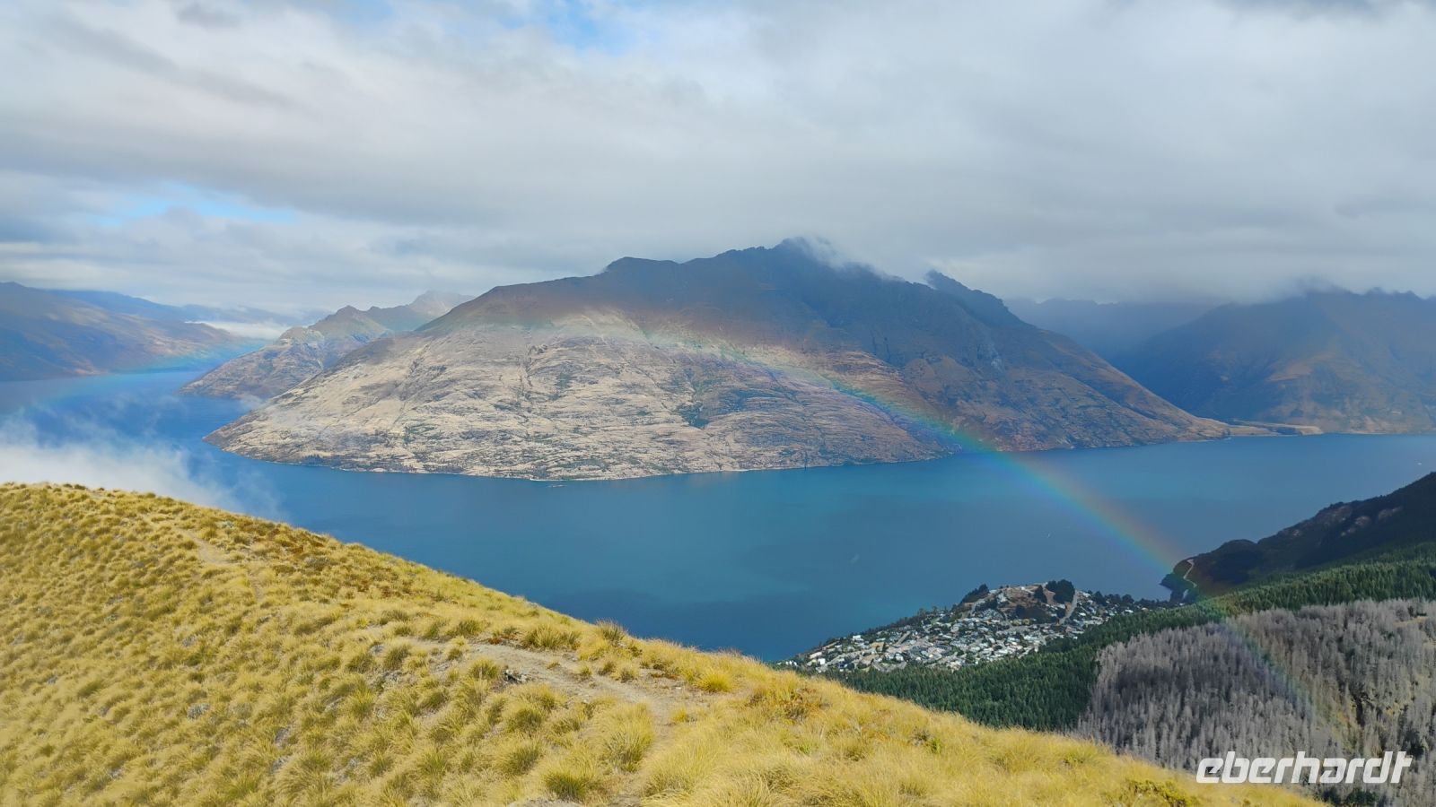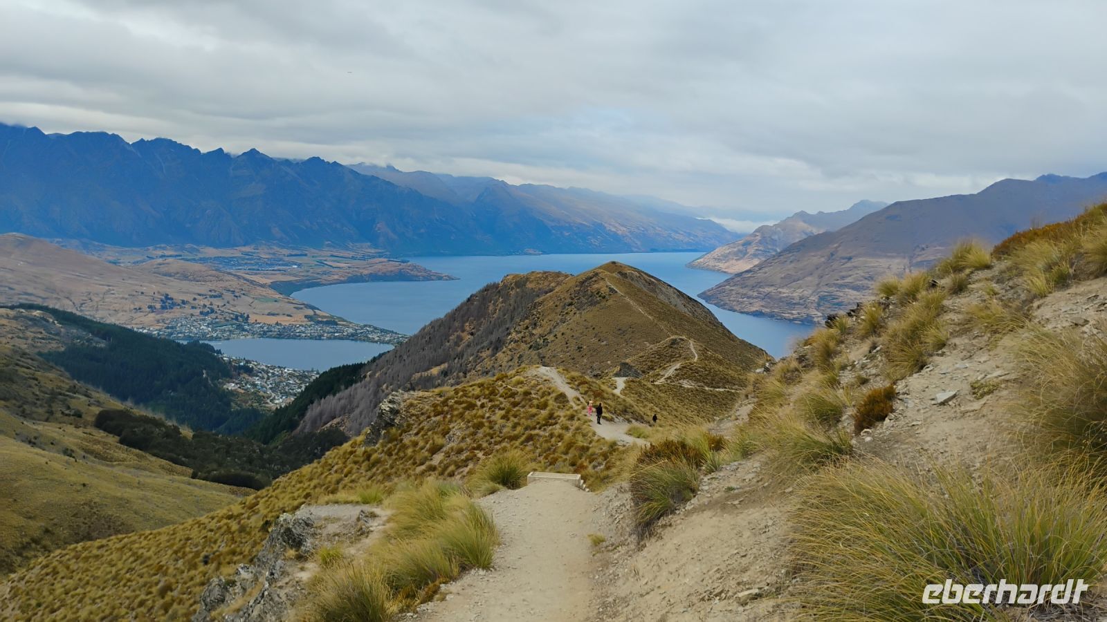 Die Wanderung führte zunächst durch dichten Wald, bevor sich die Vegetation lichtete und den Blick auf die beeindruckende Berglandschaft freigab. Mit zunehmender Höhe wurde der Weg steiler und anspruchsvoller, doch die Anstrengung wurde mit einem spektakulären Panorama belohnt. Vom Sattel aus bot sich eine atemberaubende Aussicht auf Queenstown, den türkisblauen Wakatipu-See und das weite Hochland von Otago.