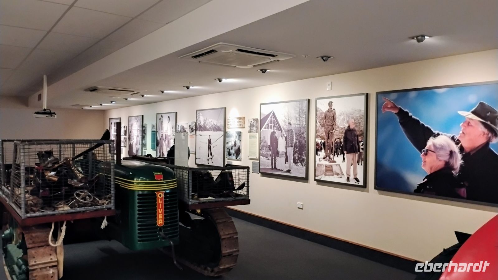 Kurz darauf hielten wir am Gertrude Saddle Track und blickten auf steile Felswände, in denen sich das Sonnenlicht spiegelte. Diese Region bot bereits vielen Bergsteigern ein ideales Trainingsgebiet – auch Sir Edmund Hillary bereitete sich in den neuseeländischen Alpen auf seine Everest-Besteigung vor und wir erfuhren während der Fahrt mehr aus seinem Leben.