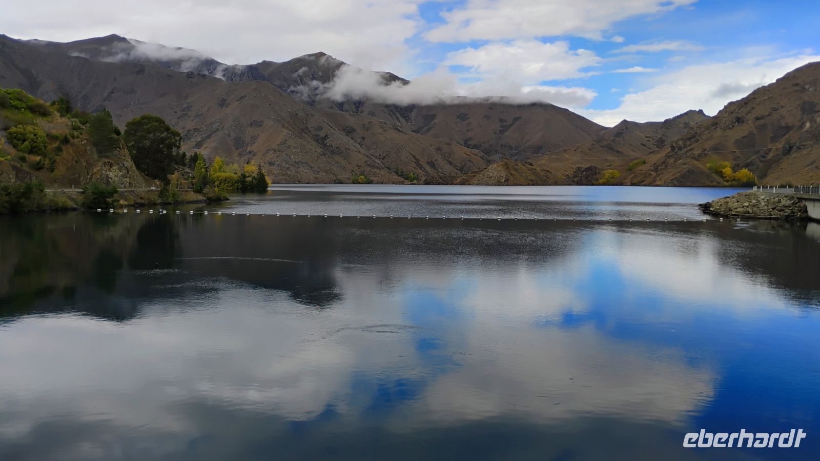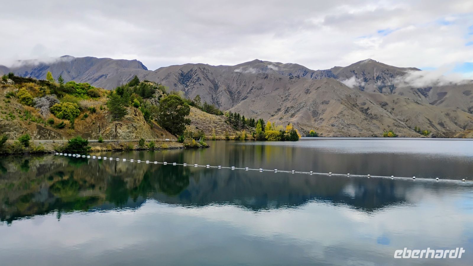 Später hielten wir am Benmore-Staudamm, Neuseelands größtem Erddamm, der in den 1960er Jahren im Rahmen des Waitaki-Wasserkraftprojekts errichtet wurde. Der daraus entstandene Lake Benmore ist der größte künstliche See des Landes.