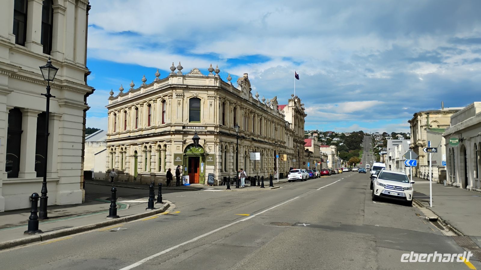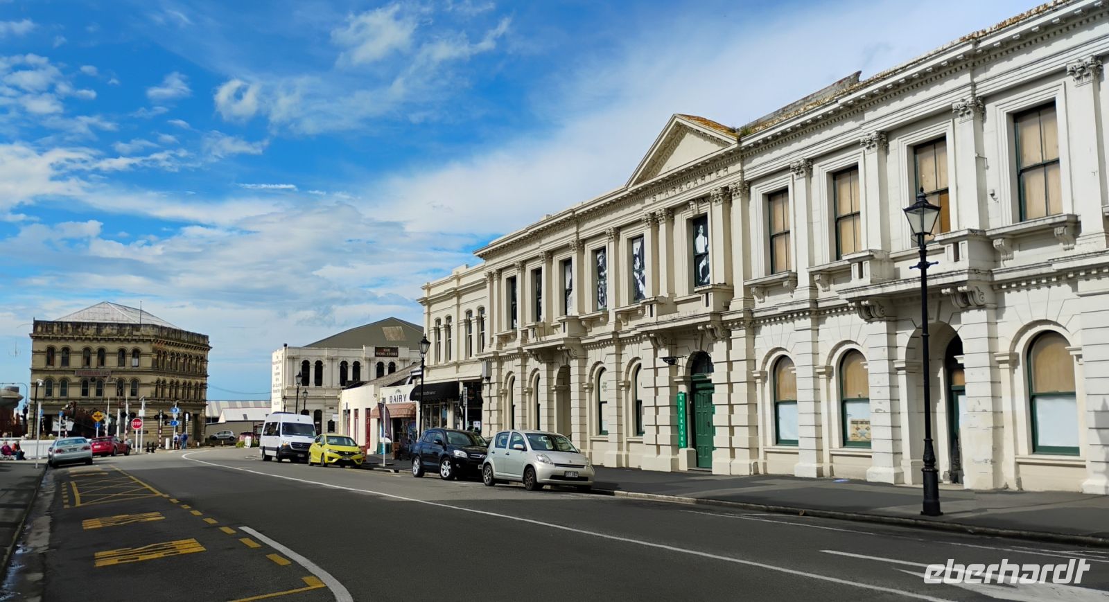 Je näher wir Dunedin kamen, desto stärker wurde der Wind. In der Stadt angekommen, empfing uns dichter Wolkenhimmel, stürmischer Wind und leichter Nieselregen. Nach einem kurzen Stopp an der historischen Universität und am prächtigen Bahnhof teilte sich die Gruppe auf: Einige besuchten das empfehlenswerte Otago Settlers Museum, während andere das Stadtzentrum rund um das Octagon erkundeten.