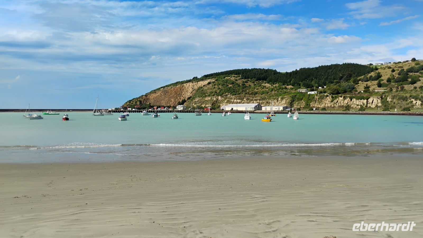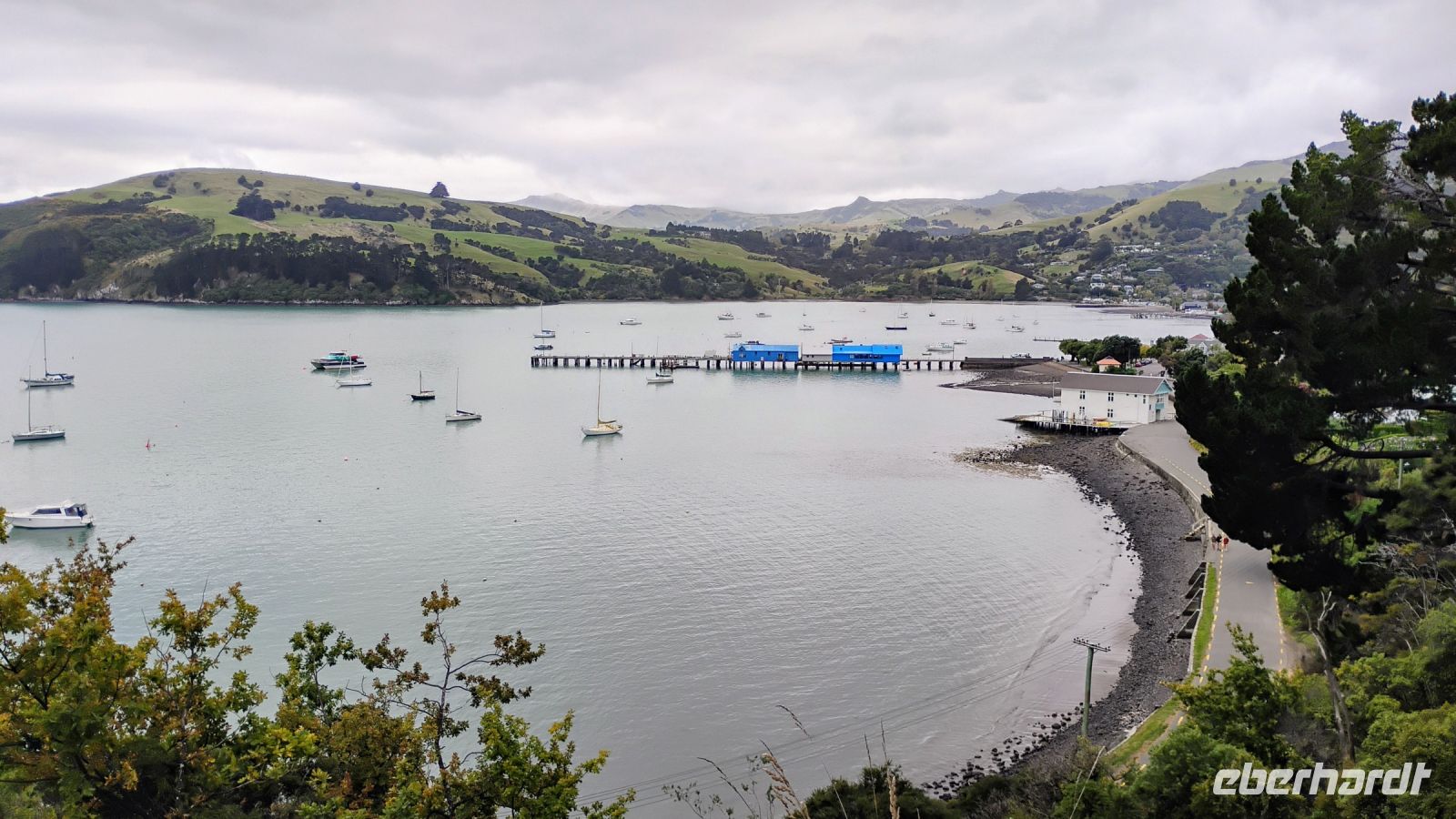 Während der Fahrt erzählte Alec von den verheerenden Erdbeben in seiner Heimatstadt Christchurch und gab uns einen Einblick in die bewegte Geschichte der Region. Schließlich erreichten wir die landschaftlich reizvolle Banks Peninsula. Nach einem Fotostopp mit Blick auf Akaroa staunten wir erneut über die unerwartete landschaftliche Veränderung. In den kleinen Hafenort Akaroa mit seinem französischen Charme haben wir uns alle sofort verliebt.