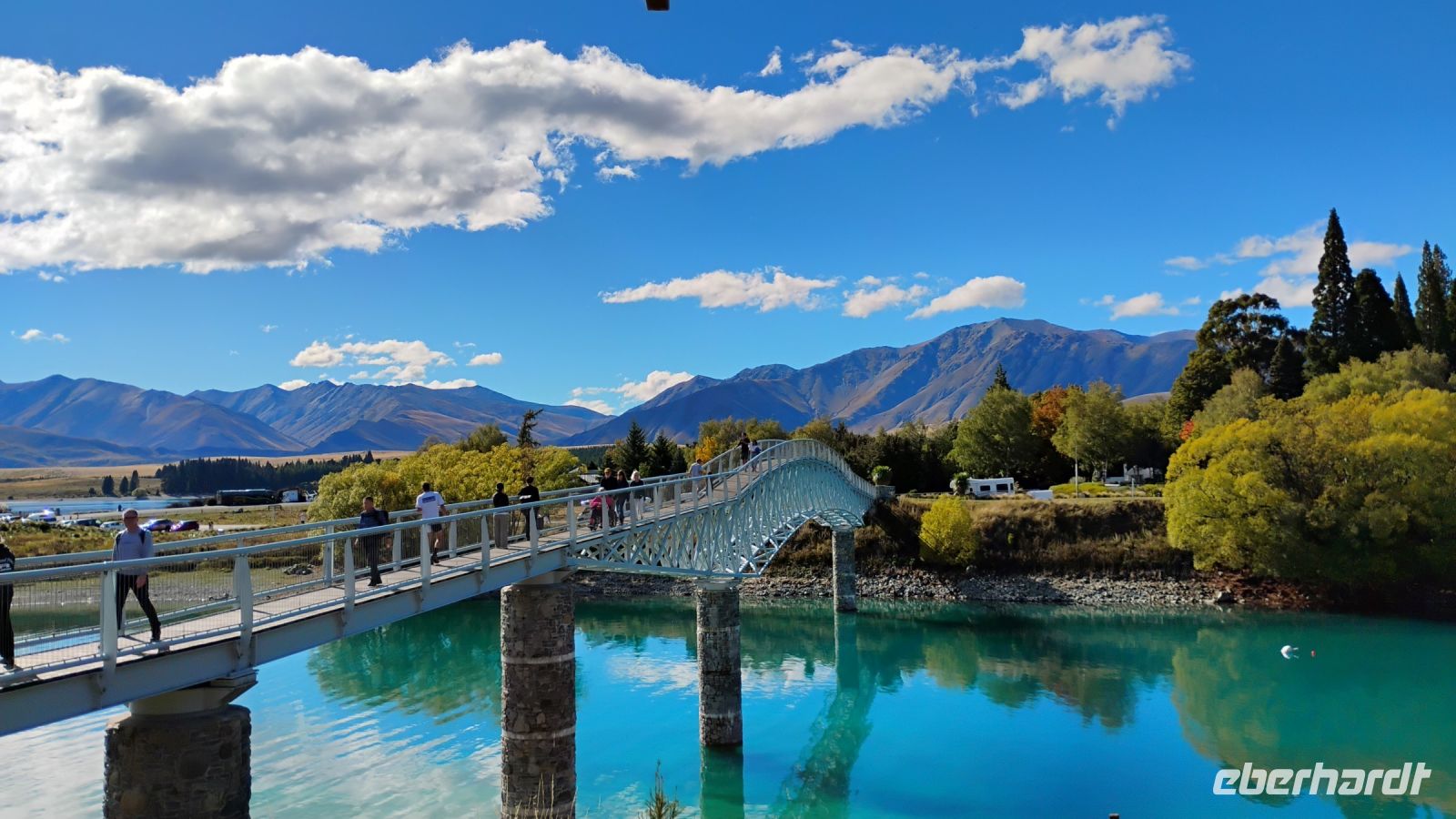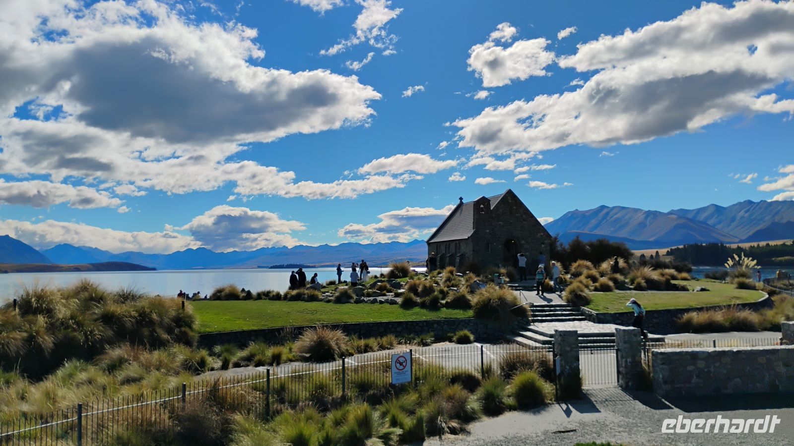 Ein nächster Halt führte uns zum türkisblauen Lake Tekapo und zur berühmten Kirche des Guten Hirten. Danach folgte die Weiterfahrt durch das goldene Mackenzie Country und die weiten Ebenen von Canterbury, wo wir in Geraldine eine kurze Mittagspause einlegten – mittlerweile bei sommerlichen Temperaturen.
