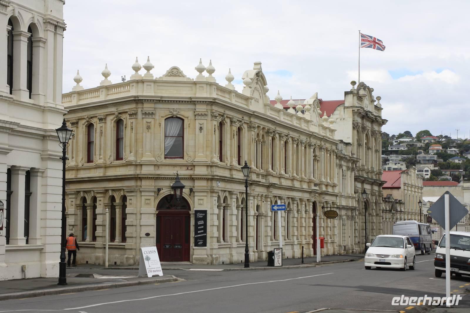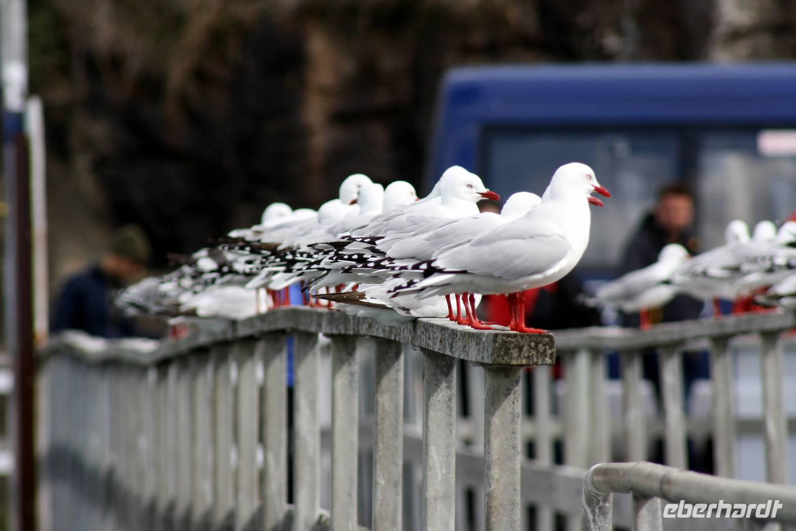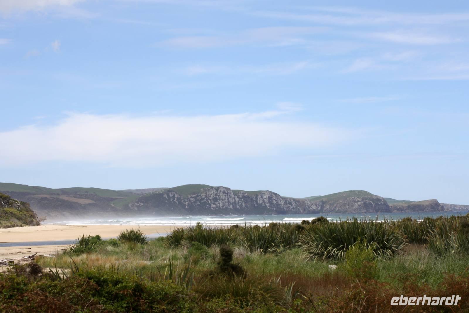 Wir lassen die Bergwelt der Südalpen vorerst hinter uns und reisen weiter gen Süden. Unser erster Halt ist die Kleinstadt Oamaru. Der Sandstein in dieser Gegend verleiht der Stadt auch die Bezeichnung „weiße Stadt". Es ist gerade „Heritage Week" in Oamaru, so dass wir vielen Damen in traditionellen Kleidern begegnen - sehr schick! An der Küste legen wir einen Stopp bei den Moeraki Boulders ein. Am Strand finden wir seltsam anmutende Steinkugeln im Sand. Eine beeindruckende Laune der Natur! Schließlich erreichen wir die „Schottenstadt" Dunedin. Das britische Erbe spiegelt sich in der Architektur wider und auch das Wetter ist vorübergehend typisch schottisch. Vor den Toren der Stadt erstreckt sich die Otago Halbinsel. Am Ende liegt Taiaroa Head, wo sich die einzige Festland-Kolonie der Königs-Albtrosse befindet. Mit dem Boot „Monarch" unternehmen wir eine einstündige Fahrt um diese Landzunge. Wir haben nicht nur Glück mit wenig Seegang sondern können sogar zweimal den majestätischen Vogel fliegen sehen. Darüber hinaus können wir auch die Neuseeländische Pelzrobbe, Kormorane und Löffler beobachten.