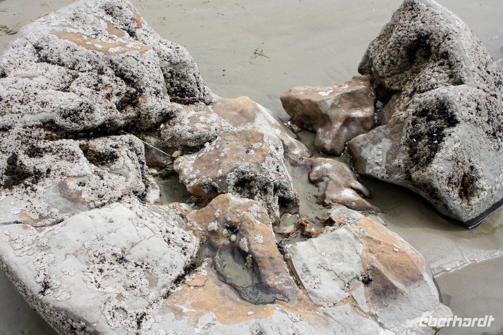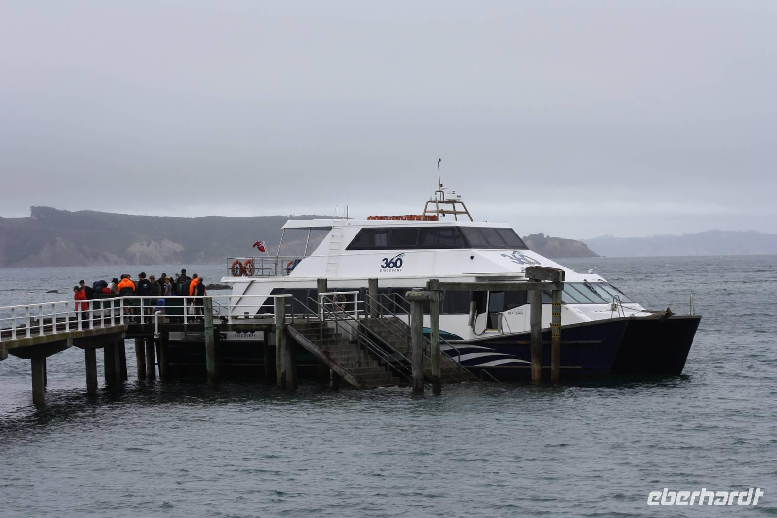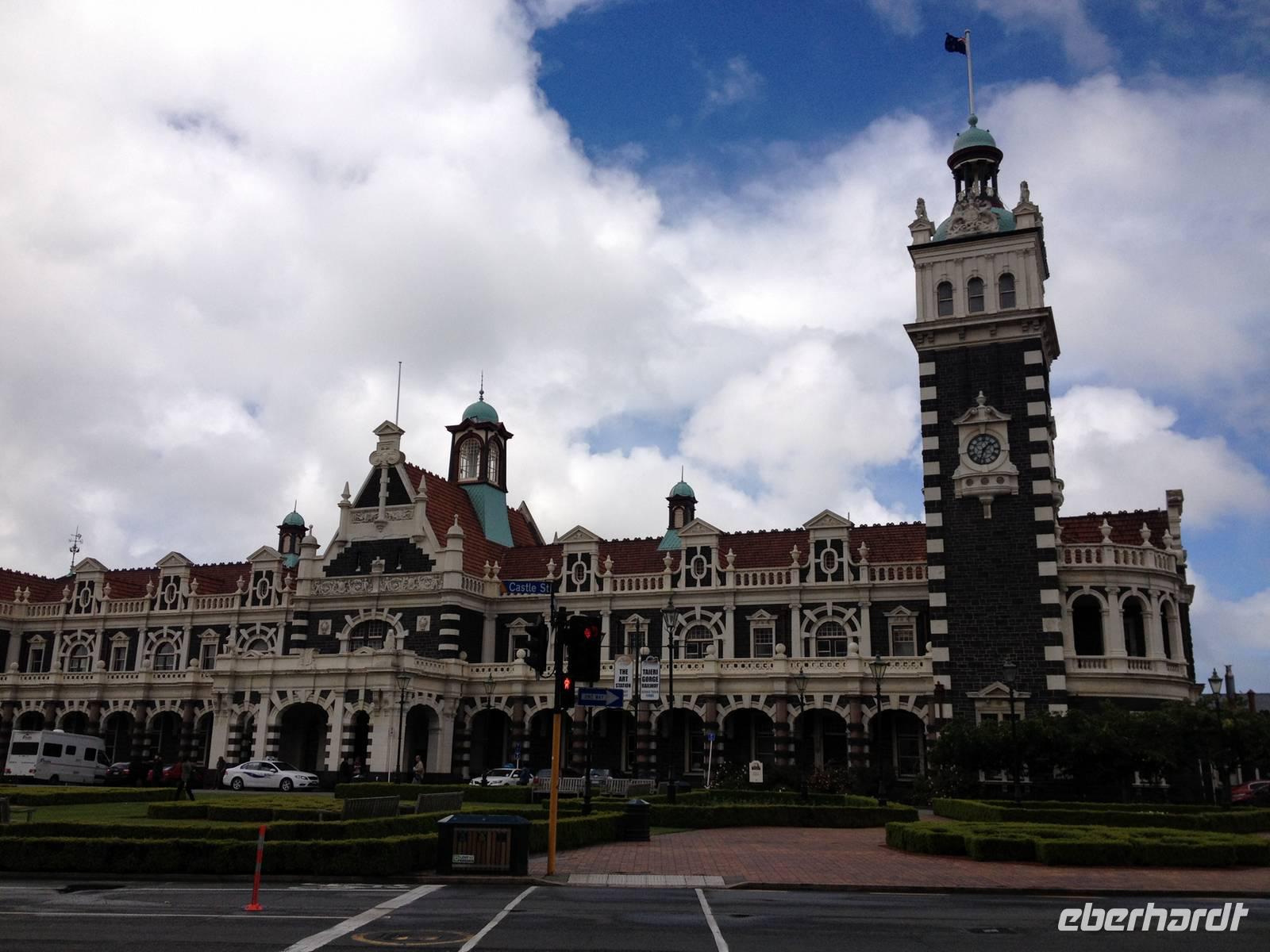 Wir lassen die Bergwelt der Südalpen vorerst hinter uns und reisen weiter gen Süden. Unser erster Halt ist die Kleinstadt Oamaru. Der Sandstein in dieser Gegend verleiht der Stadt auch die Bezeichnung „weiße Stadt". Es ist gerade „Heritage Week" in Oamaru, so dass wir vielen Damen in traditionellen Kleidern begegnen - sehr schick! An der Küste legen wir einen Stopp bei den Moeraki Boulders ein. Am Strand finden wir seltsam anmutende Steinkugeln im Sand. Eine beeindruckende Laune der Natur! Schließlich erreichen wir die „Schottenstadt" Dunedin. Das britische Erbe spiegelt sich in der Architektur wider und auch das Wetter ist vorübergehend typisch schottisch. Vor den Toren der Stadt erstreckt sich die Otago Halbinsel. Am Ende liegt Taiaroa Head, wo sich die einzige Festland-Kolonie der Königs-Albtrosse befindet. Mit dem Boot „Monarch" unternehmen wir eine einstündige Fahrt um diese Landzunge. Wir haben nicht nur Glück mit wenig Seegang sondern können sogar zweimal den majestätischen Vogel fliegen sehen. Darüber hinaus können wir auch die Neuseeländische Pelzrobbe, Kormorane und Löffler beobachten.