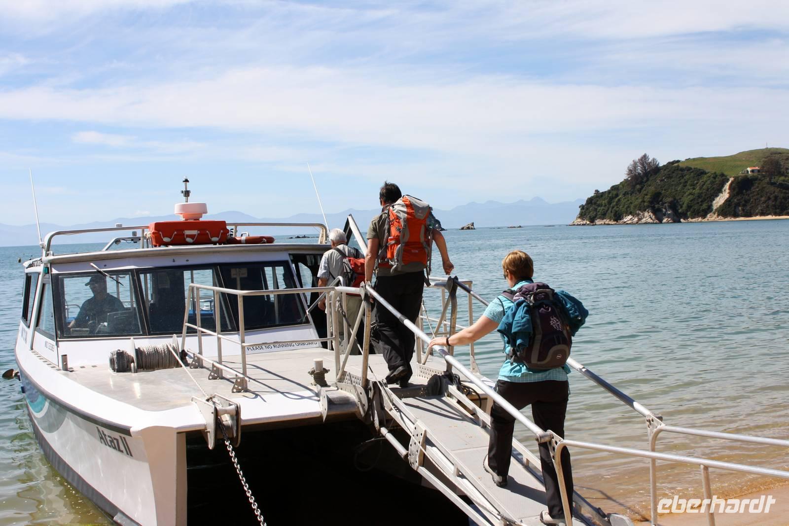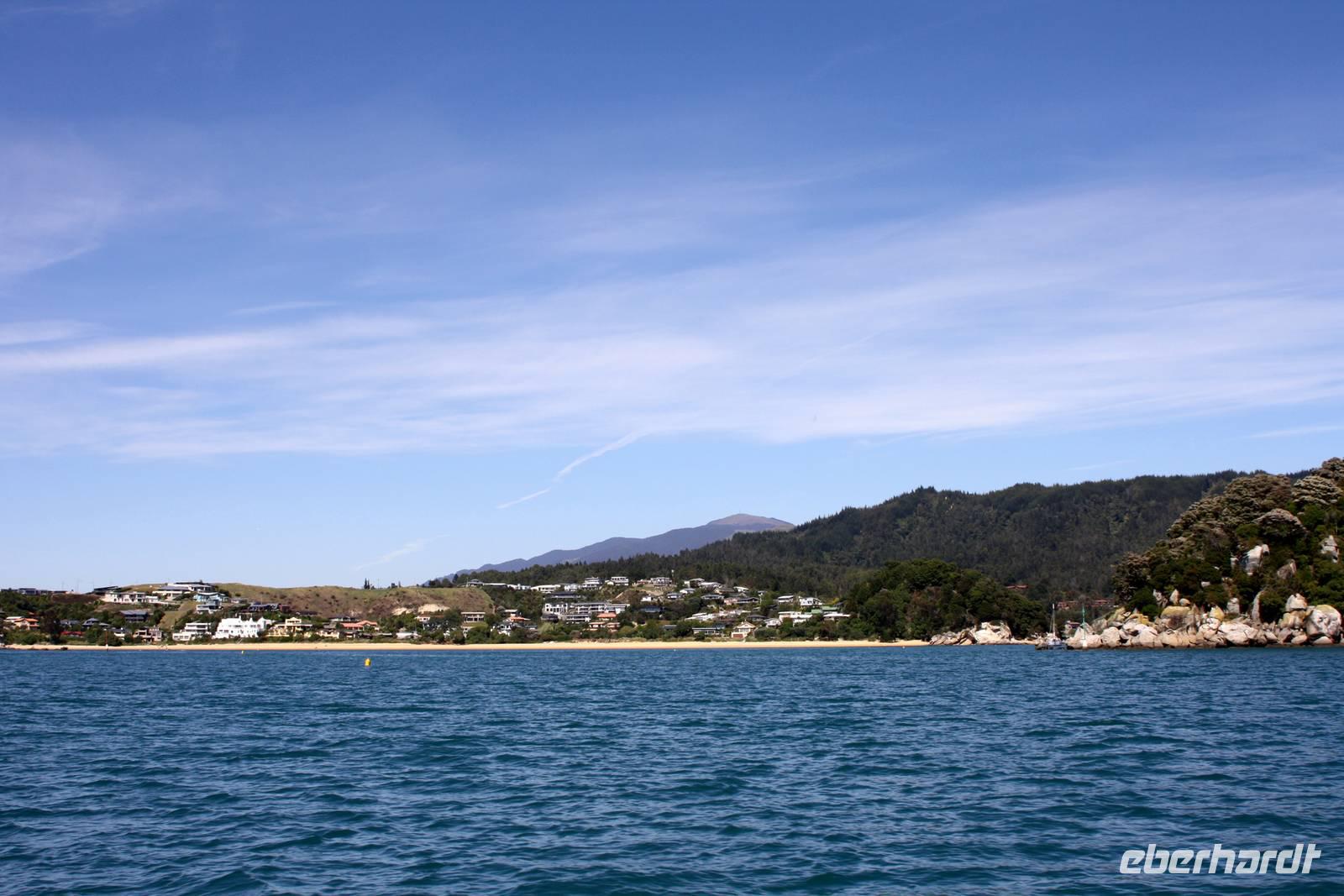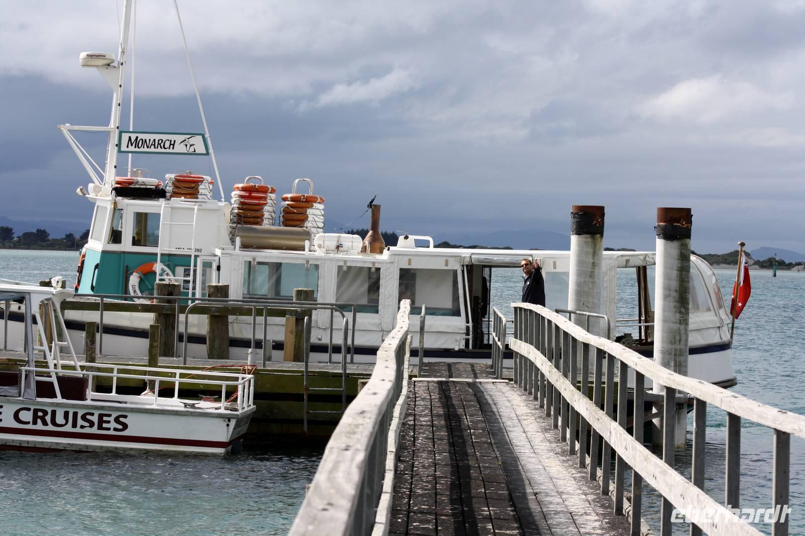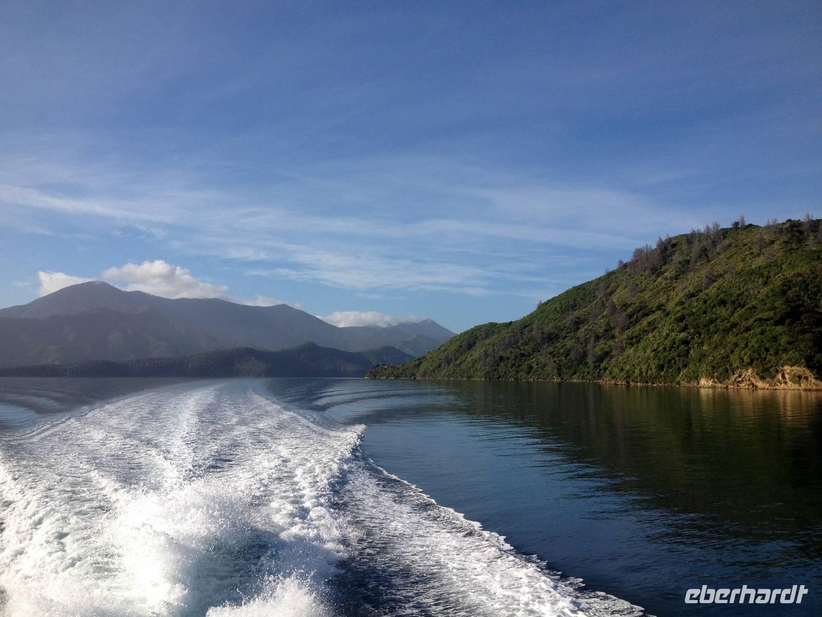 Unser letzter Tag auf der Südinsel beginnt früh. Mit dem Wassertaxi fahren wir am Morgen durch die Marlborough Sounds - ein Labyrinth aus Halbinseln und Inseln im Meer. Die Bäume und Sträucher strahlen im Sonnenlicht in undendlichen Schattierungen von Grün und das Wasser glitzert türkis blau. Als besondere Überraschung tauchen plötzlich Delfine direkt neben dem Boot auf und begleiten uns ein Stück. In der Ship Cove können wir uns vorstellen, dass sich Kapitän James Cook vor rund 240 Jahren hier wohl fühlte - wir tun es auch. Noch ein paar Erinnerungsbilder vom Denkmal und dann geht es erst einmal bergan durch ein Waldgebiet. Die fantastische Aussicht auf die Küste vom Gipfel ist der Mühe Lohn. Wir wandern weiter vorbei an der Resolution Bay zum Endevour Inlet. An der Furneaux Lodge holt uns das Wasertaxi wieder ab und bringt uns zurück nach Picton. Morgen geht unsere Reise weiter auf die Nordinsel - wir freuen uns auf neue Abenteuer!