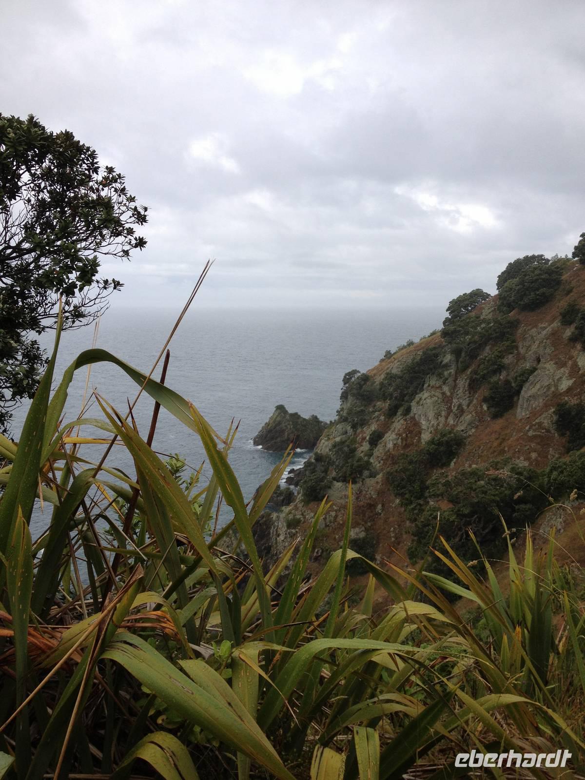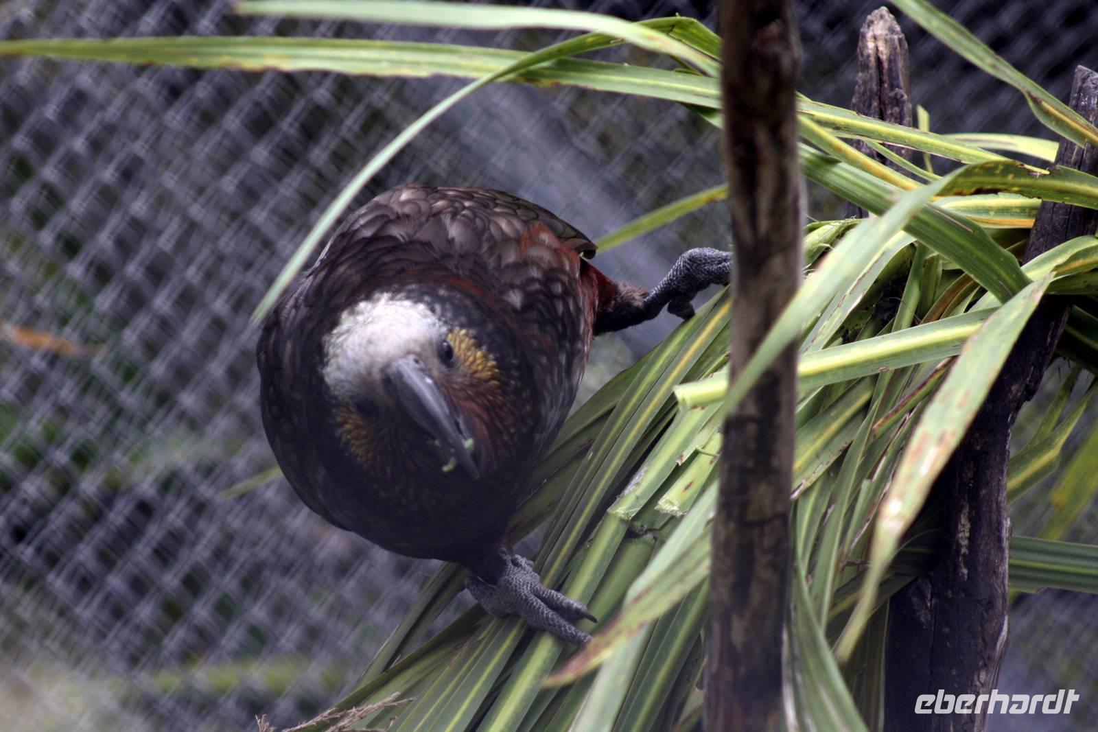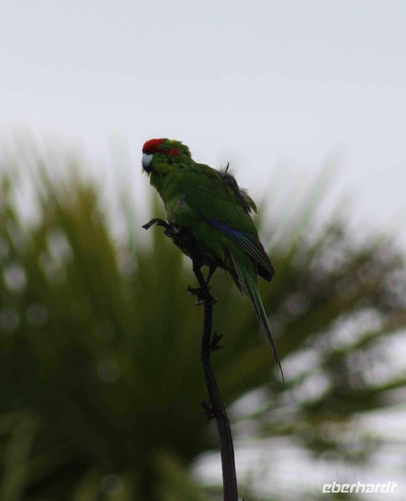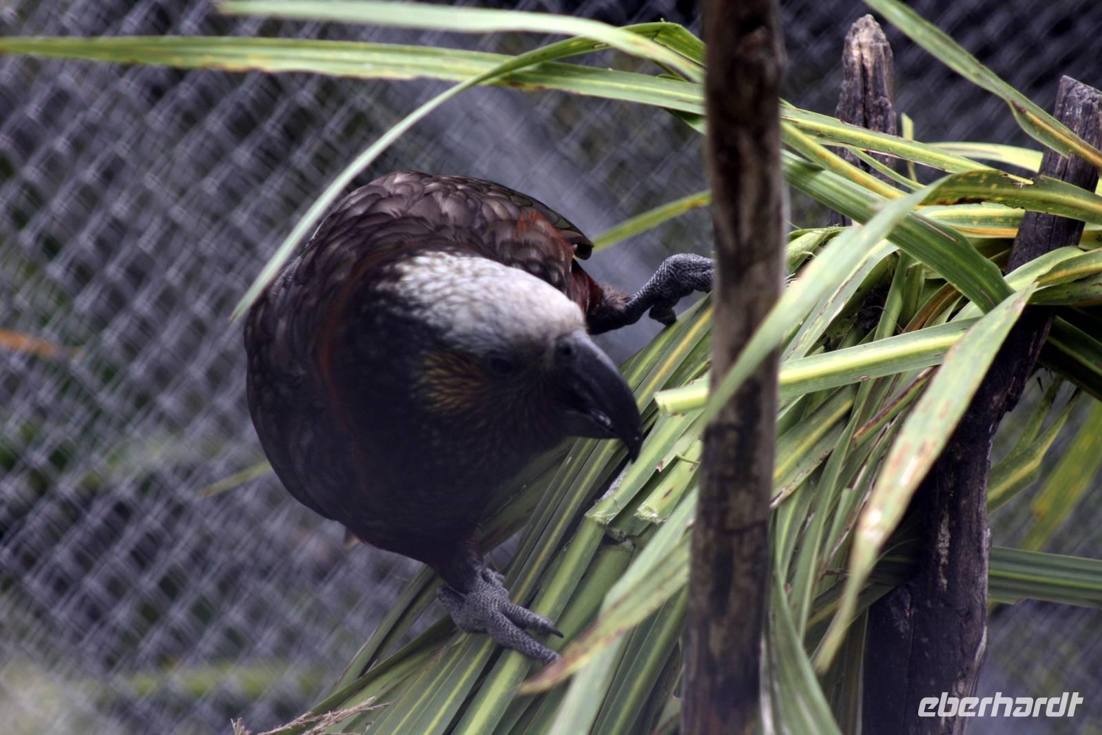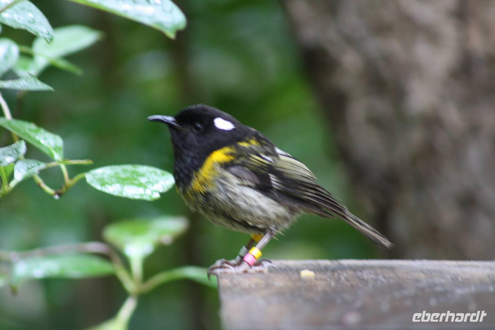 Nur gut eine Stunde von Auckland entfernt, liegt das Vogelschutzgebiet Tiritiri Matangi. Mit der Fähre erreichen wir das kleine Eiland, wo ein beispielhaftes Projekt realisiert wurde. Seit 1984 haben tausende freiwillige Helfer über 300.000 einheimische Bäume auf der Insel angepflanzt und damit ein Schutzgebiet für die endemischen Vögel und Reptilien geschaffen. Der Zutritt zur Insel ist auf 170 Personen täglich begrenzt und so können wir unser Konzert fast exklusiv genießen. Durch den Regen wirkt der Wald heute noch viel grüner und üppiger als bisher und wir entdecken einige der seltendsten Vögel Neuseelands, wie den Sattelstar, den Stichbird (Hihi), den Kakariki und sogar den Kokako, von dem es nur etwa 20 Exemplare gibt!