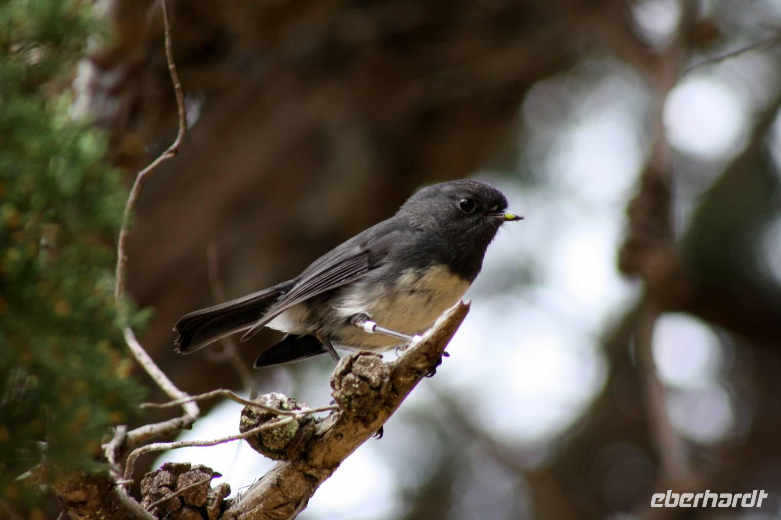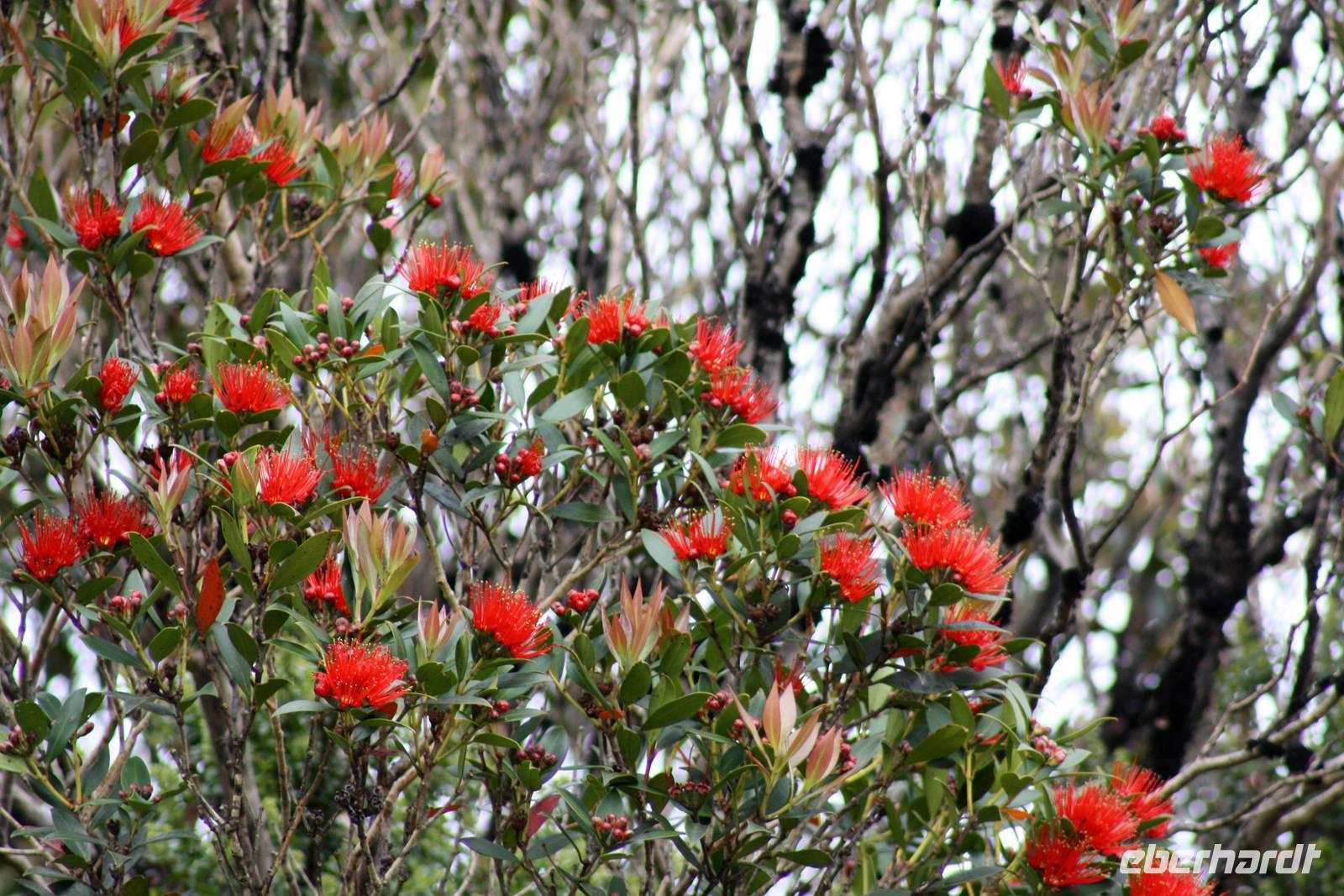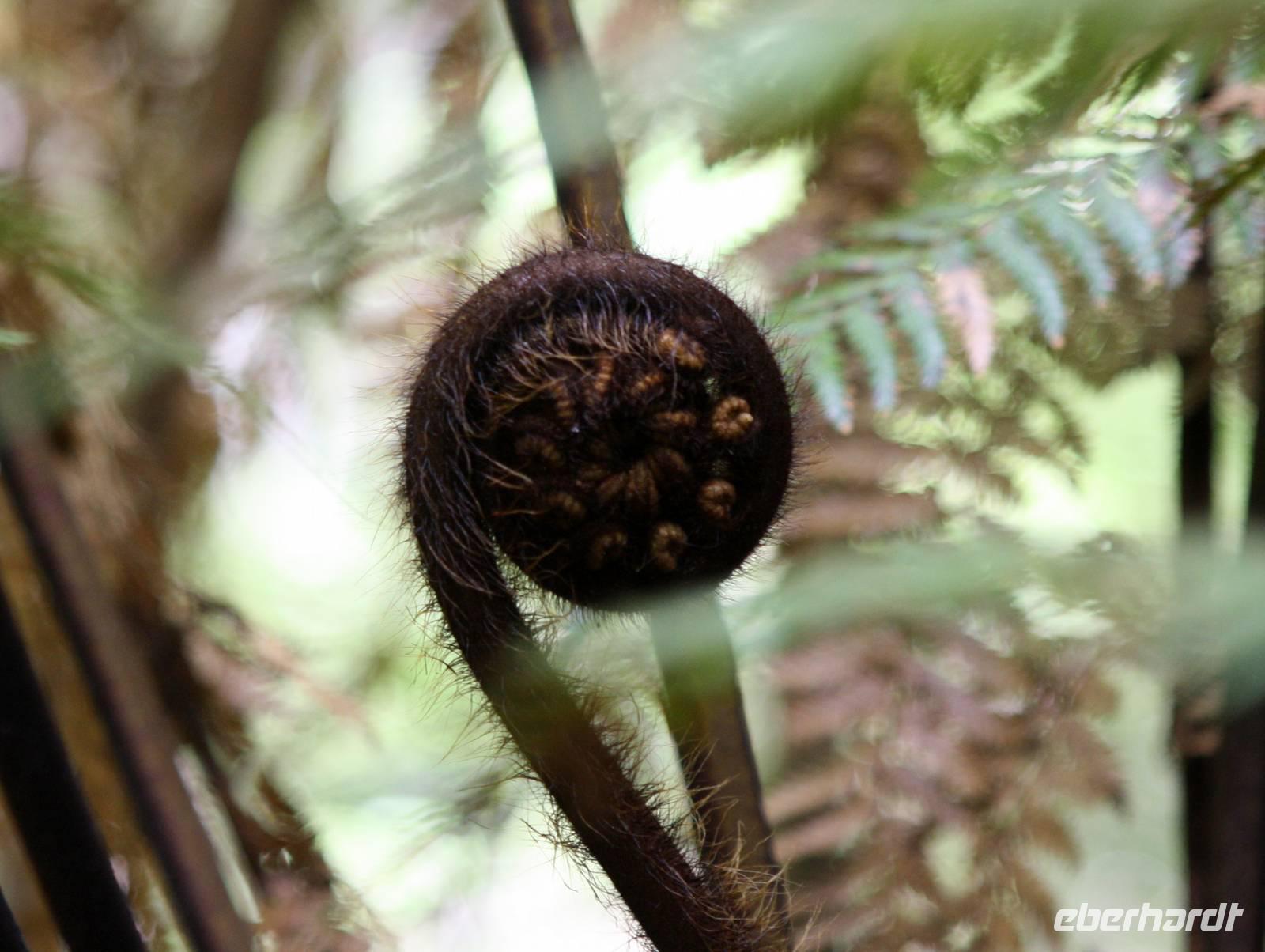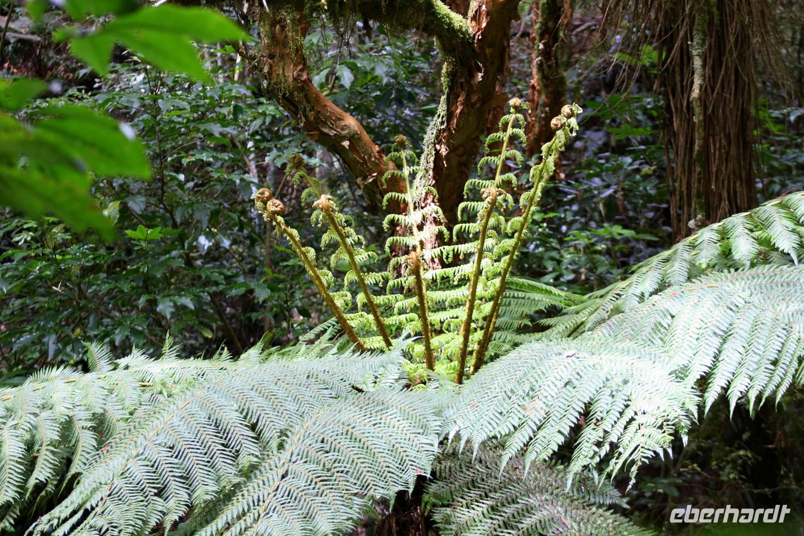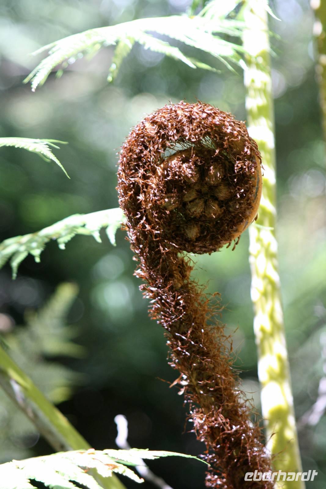 Nur gut eine Stunde von Auckland entfernt, liegt das Vogelschutzgebiet Tiritiri Matangi. Mit der Fähre erreichen wir das kleine Eiland, wo ein beispielhaftes Projekt realisiert wurde. Seit 1984 haben tausende freiwillige Helfer über 300.000 einheimische Bäume auf der Insel angepflanzt und damit ein Schutzgebiet für die endemischen Vögel und Reptilien geschaffen. Der Zutritt zur Insel ist auf 170 Personen täglich begrenzt und so können wir unser Konzert fast exklusiv genießen. Durch den Regen wirkt der Wald heute noch viel grüner und üppiger als bisher und wir entdecken einige der seltendsten Vögel Neuseelands, wie den Sattelstar, den Stichbird (Hihi), den Kakariki und sogar den Kokako, von dem es nur etwa 20 Exemplare gibt!