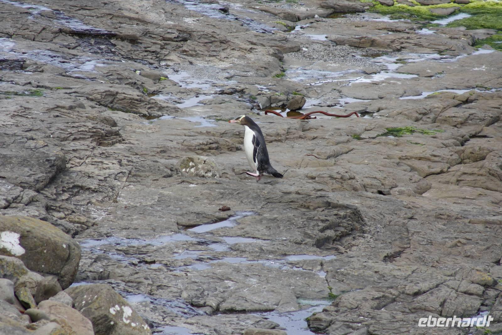 Bei strahlend blauem Himmel und Sonnenschein begeben wir uns auf die Southern Scenic Route in die landschaftlich reizvollen Catlins. So weit das Auge reicht, sehen wir scheinbar endlose grüne Hügel, wo viele glückliche Kühe und noch mehr glücklichen Schafe grasen. Am Nugget Point unternehmen wir einen Spaziergang zum Leuchtturm. Auf den Felsinseln fühlen sich Löffler und Möwen besonders wohl. Bei unserem nächsten Halt befinden wir uns plötzlich mitten im üppig grünen Regenwald. An den Puakaunui Falls entdecken wir die endemische Baumfuchsie, die Kronenfarne und auch eine Waldtaube (Wood Pigeon) aus nächster Nähe. Nach unserer Mittagspause geht es weiter zum Lake Wilkie, wo wir einheimische Bäume, wie den Rimu und Manuka kennenlernen. An der Curio Bay wartet noch eine Überaschung auf uns - auf den Felsen steht einer der seltensten Pinguine der Welt für uns Portrait. Wir können uns glücklich schätzen, einen Gelbaugenpinguin beobachten zu können. Die eigentliche Sehenswürdigkeit, der 170 Millionen Jahre alte versteinerte Wald, rückt angesichts dessen sogar in den Hintergrund. Unser Ziel ist für heute die südlichste Stadt Neuseelands, Invercargill, wo wir übernachten.