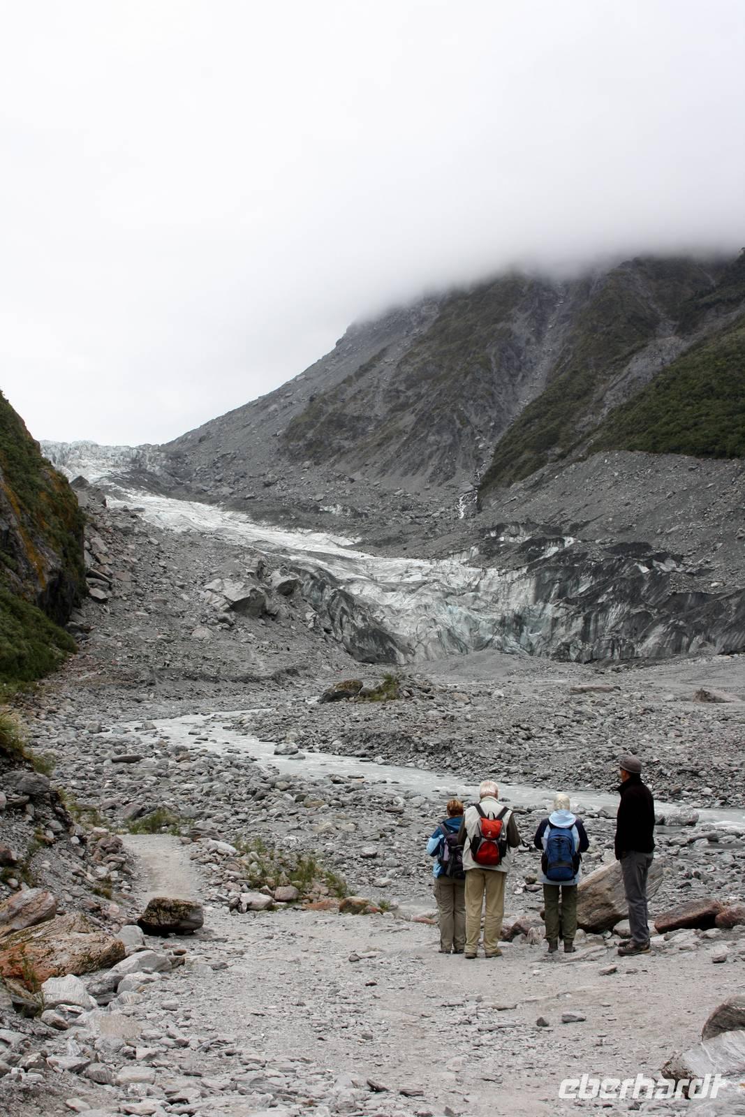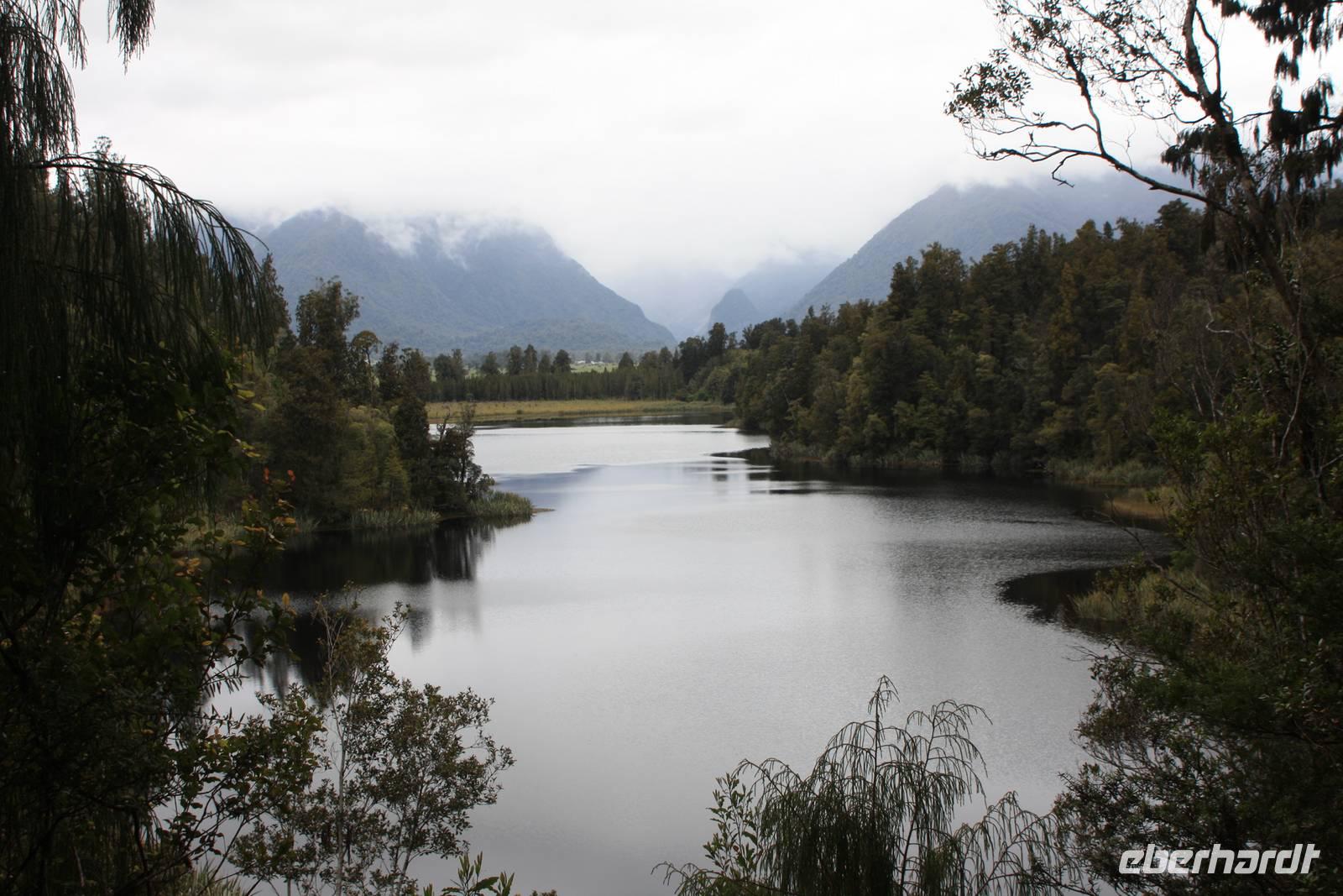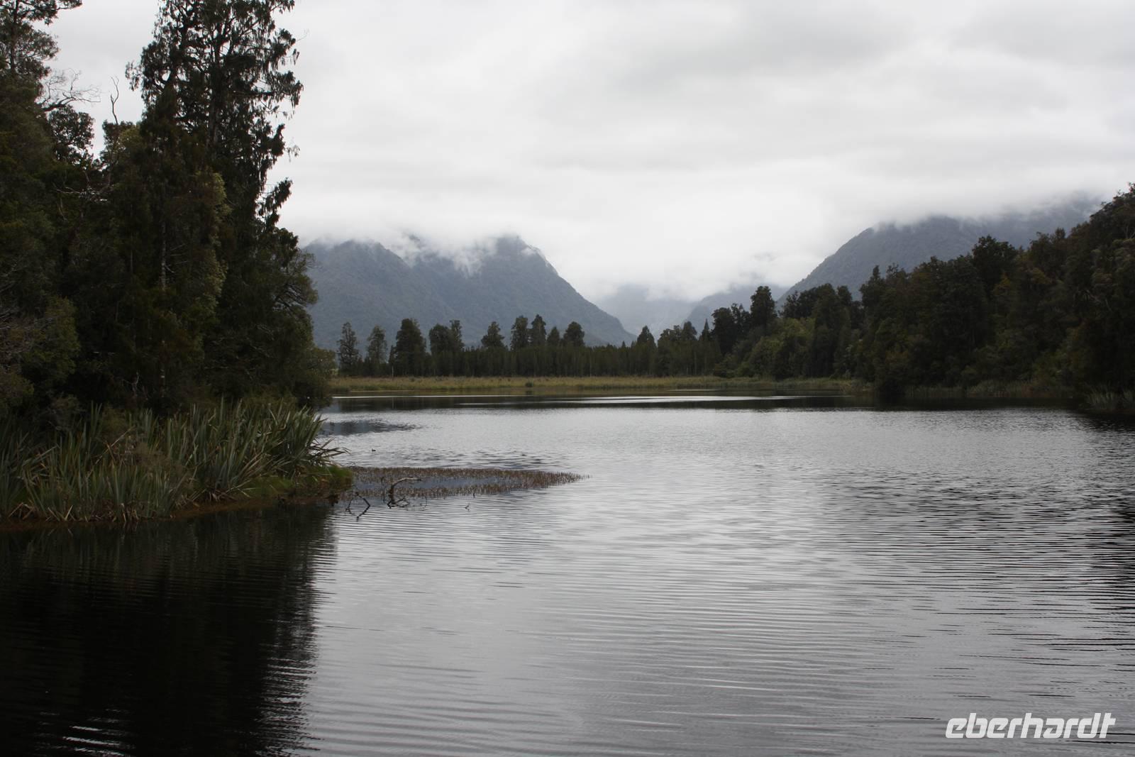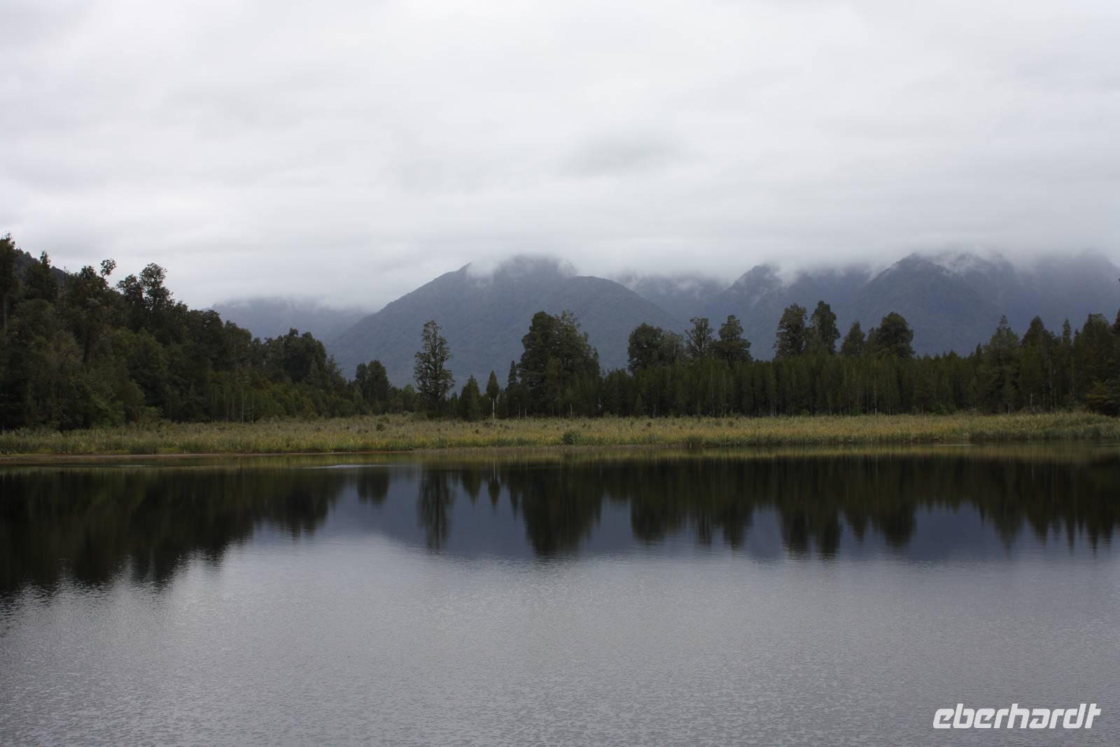 Am Morgen wird von einem Vulkanausbruch auf der Nordinsel am Tongariro berichtet. Wir werden sehen, ob und wie es unsere Reise in einer Woche beeinflusst. Noch haben wir eine abwechslungsreiche Zeit auf der Südinsel vor uns. Meist regnet es an der Westküste - wir bekommen heute nur eine winzige Kostprobe mit Nieselregen und wolkenverhangenen Bergen. Das Westland gehört zu den am dünnsten besiedelten Regionen Neuseelands und bietet unendlich viel Natur. Unsere erste Wanderung führt durch üppig grünen Regenwald aus Farnen und moosbewachsenen Bäumen. Unser Ziel ist der Monro Strand, wo die seltenen Dickschnabelpinguine (Crested Penguins) nisten. Wir bekommen zwar keine zu Gesicht, aber der einsame Sand- und Kieselstrand ist dennoch sehenswert. Vorbei am Lake Moeraki fahren wir über Paringa weiter nach Fox. Von den vielen Gletschern Neuseelands haben sich die beiden Eiszungen von Fox und Franz Josef hier ihren Weg bis fast an die Küste gebahnt. So sehen wir neben dem Gletschereis nicht nur graues Gestein, sondern auch Regenwald! Abschließend umrunden wir noch den Lake Matheson, der als der Spiegelsee bekannt ist. Heute verschleiern leider Wolken das Panorama auf Mount Cook und Mount Tasman. Als Überraschung unternehmen wir dafür nach dem Abendessen noch eine kleine Nachtwanderung und entdecken die Glühwürmchen im Wald.