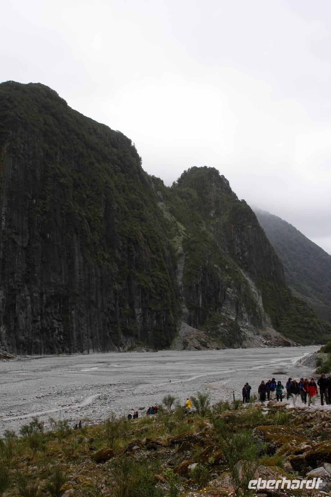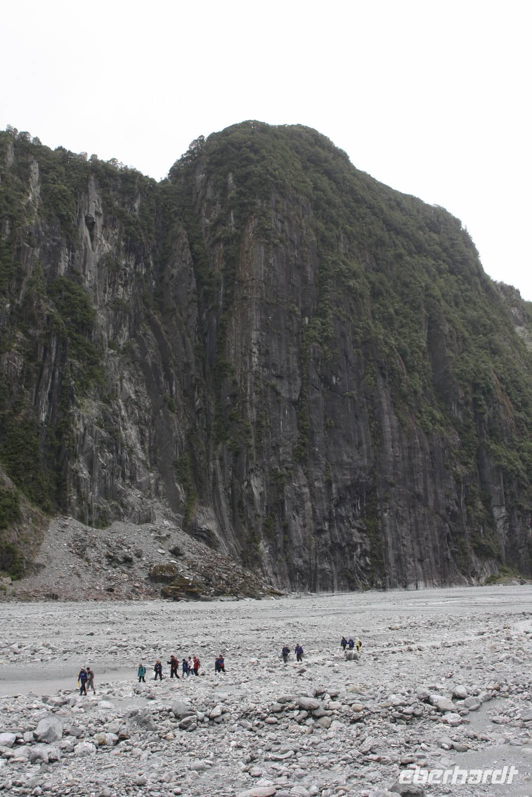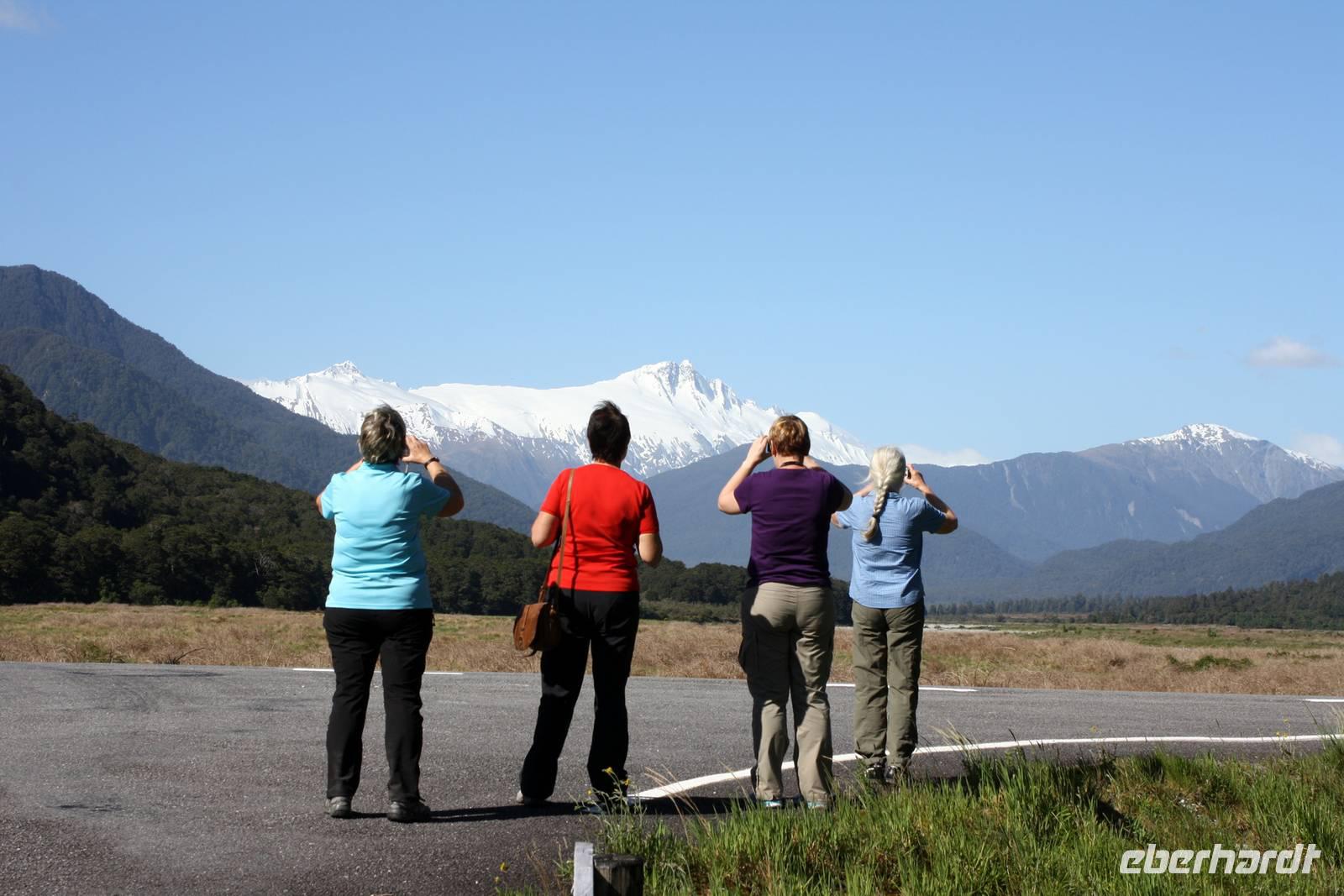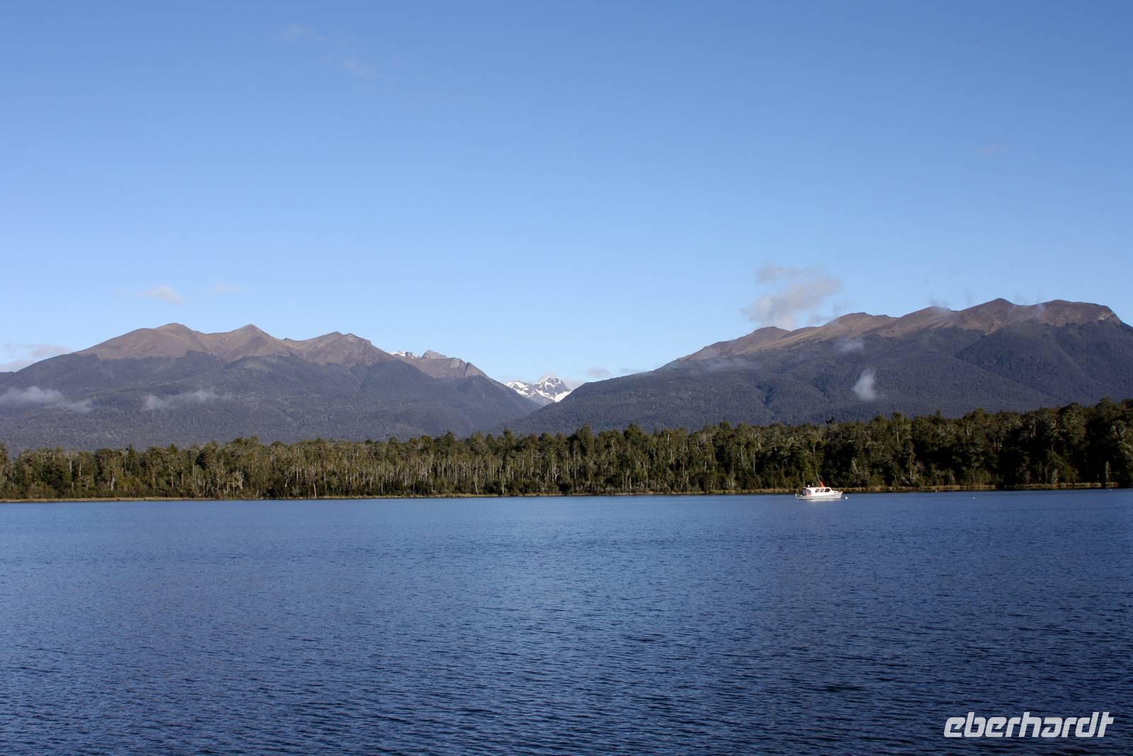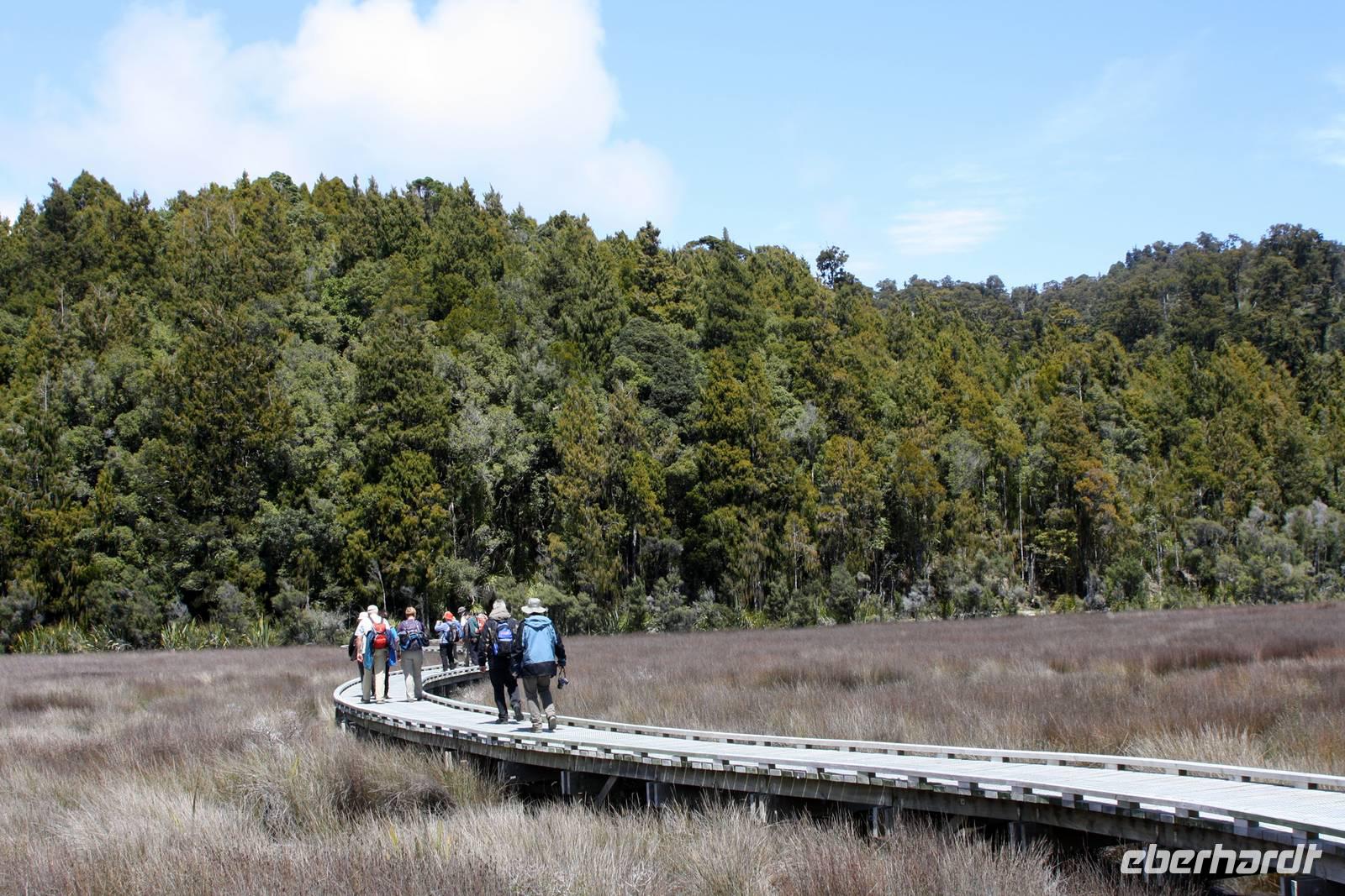 Am Morgen wird von einem Vulkanausbruch auf der Nordinsel am Tongariro berichtet. Wir werden sehen, ob und wie es unsere Reise in einer Woche beeinflusst. Noch haben wir eine abwechslungsreiche Zeit auf der Südinsel vor uns. Meist regnet es an der Westküste - wir bekommen heute nur eine winzige Kostprobe mit Nieselregen und wolkenverhangenen Bergen. Das Westland gehört zu den am dünnsten besiedelten Regionen Neuseelands und bietet unendlich viel Natur. Unsere erste Wanderung führt durch üppig grünen Regenwald aus Farnen und moosbewachsenen Bäumen. Unser Ziel ist der Monro Strand, wo die seltenen Dickschnabelpinguine (Crested Penguins) nisten. Wir bekommen zwar keine zu Gesicht, aber der einsame Sand- und Kieselstrand ist dennoch sehenswert. Vorbei am Lake Moeraki fahren wir über Paringa weiter nach Fox. Von den vielen Gletschern Neuseelands haben sich die beiden Eiszungen von Fox und Franz Josef hier ihren Weg bis fast an die Küste gebahnt. So sehen wir neben dem Gletschereis nicht nur graues Gestein, sondern auch Regenwald! Abschließend umrunden wir noch den Lake Matheson, der als der Spiegelsee bekannt ist. Heute verschleiern leider Wolken das Panorama auf Mount Cook und Mount Tasman. Als Überraschung unternehmen wir dafür nach dem Abendessen noch eine kleine Nachtwanderung und entdecken die Glühwürmchen im Wald.