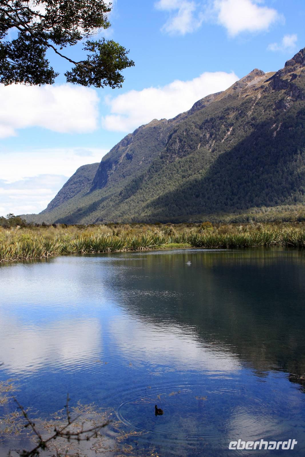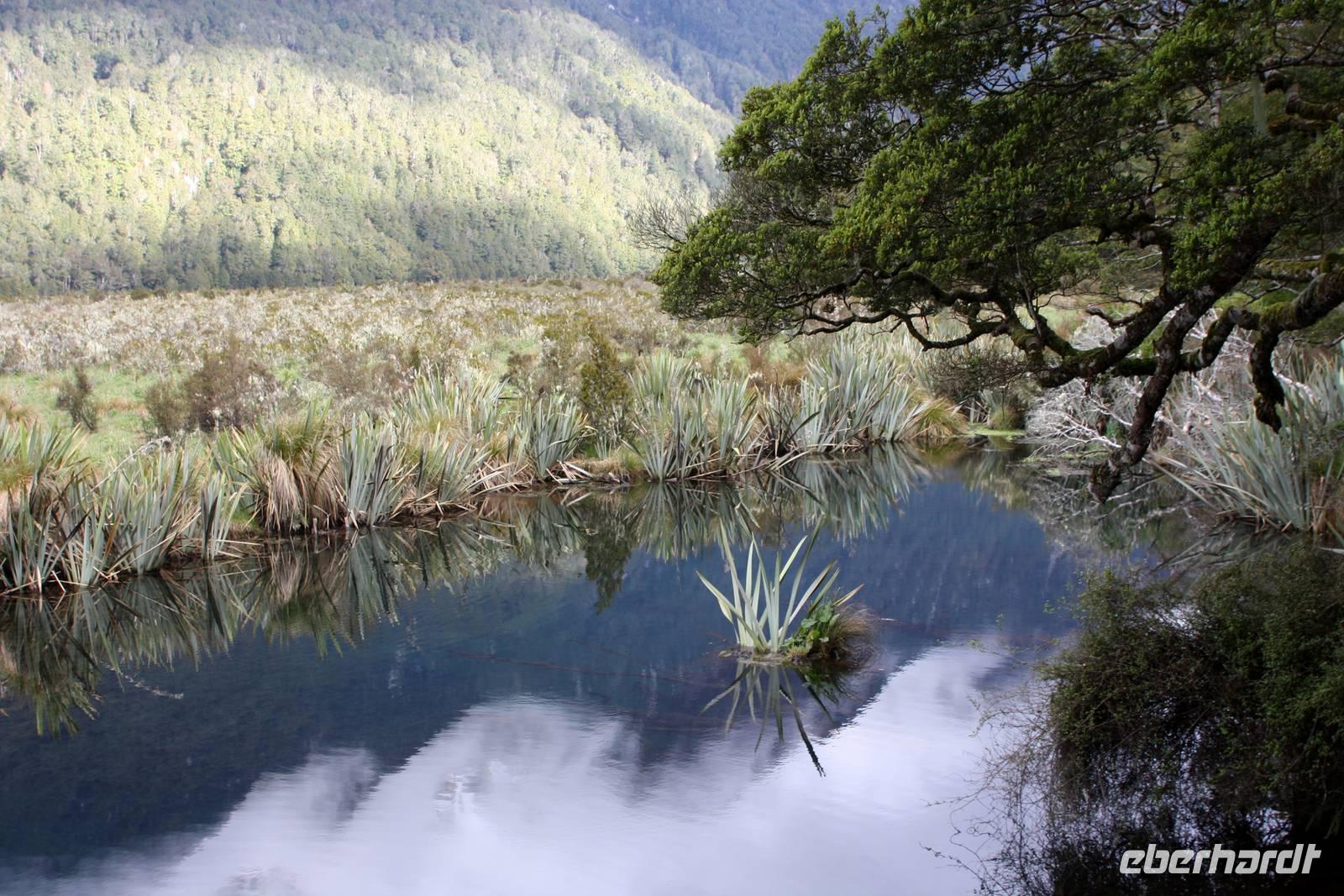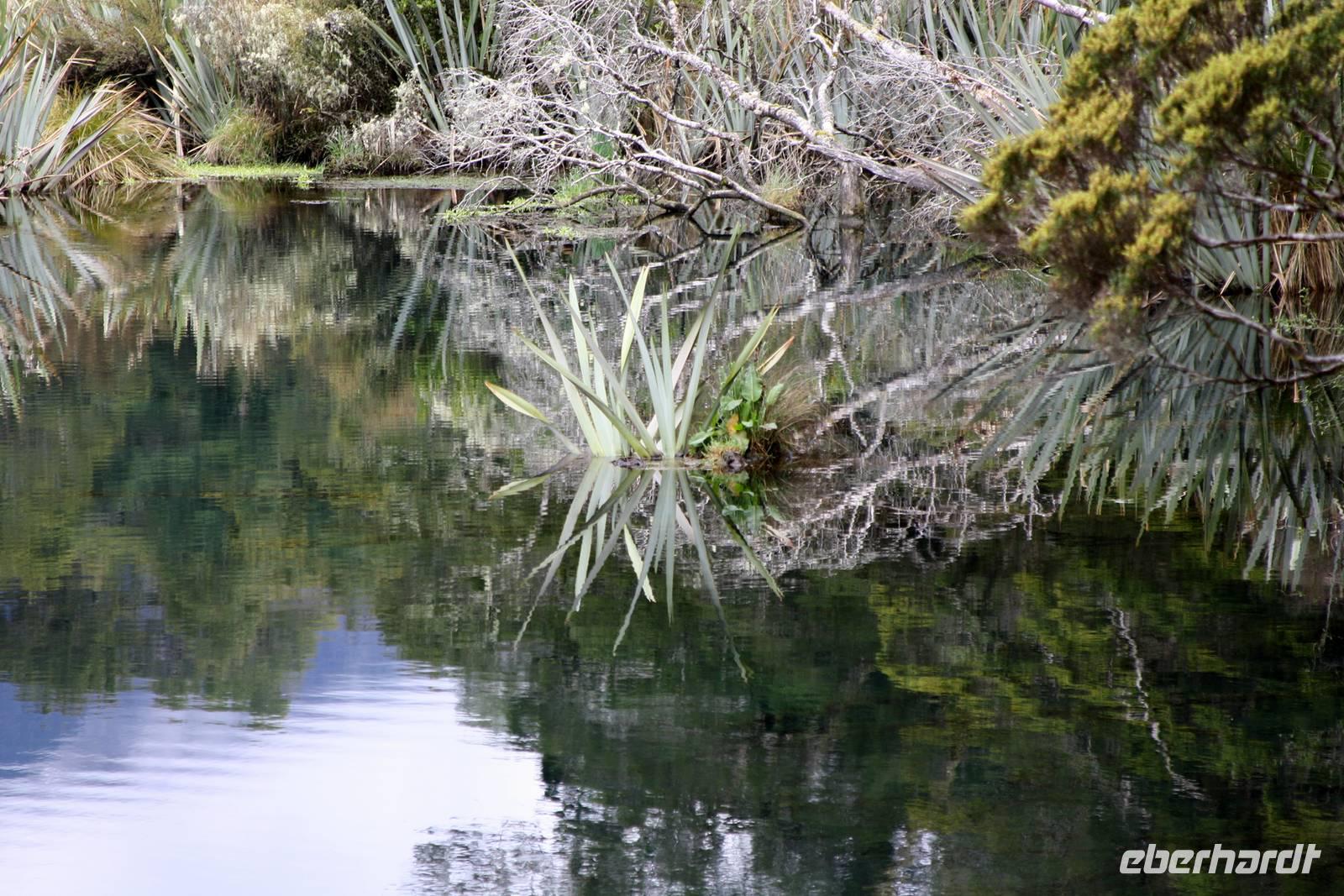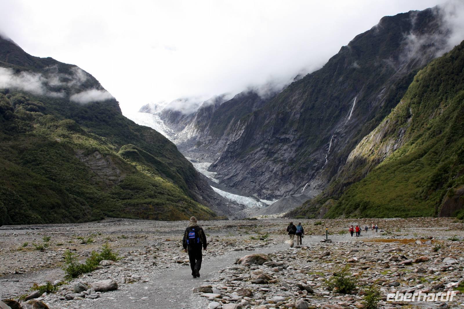 Am Morgen wird von einem Vulkanausbruch auf der Nordinsel am Tongariro berichtet. Wir werden sehen, ob und wie es unsere Reise in einer Woche beeinflusst. Noch haben wir eine abwechslungsreiche Zeit auf der Südinsel vor uns. Meist regnet es an der Westküste - wir bekommen heute nur eine winzige Kostprobe mit Nieselregen und wolkenverhangenen Bergen. Das Westland gehört zu den am dünnsten besiedelten Regionen Neuseelands und bietet unendlich viel Natur. Unsere erste Wanderung führt durch üppig grünen Regenwald aus Farnen und moosbewachsenen Bäumen. Unser Ziel ist der Monro Strand, wo die seltenen Dickschnabelpinguine (Crested Penguins) nisten. Wir bekommen zwar keine zu Gesicht, aber der einsame Sand- und Kieselstrand ist dennoch sehenswert. Vorbei am Lake Moeraki fahren wir über Paringa weiter nach Fox. Von den vielen Gletschern Neuseelands haben sich die beiden Eiszungen von Fox und Franz Josef hier ihren Weg bis fast an die Küste gebahnt. So sehen wir neben dem Gletschereis nicht nur graues Gestein, sondern auch Regenwald! Abschließend umrunden wir noch den Lake Matheson, der als der Spiegelsee bekannt ist. Heute verschleiern leider Wolken das Panorama auf Mount Cook und Mount Tasman. Als Überraschung unternehmen wir dafür nach dem Abendessen noch eine kleine Nachtwanderung und entdecken die Glühwürmchen im Wald.