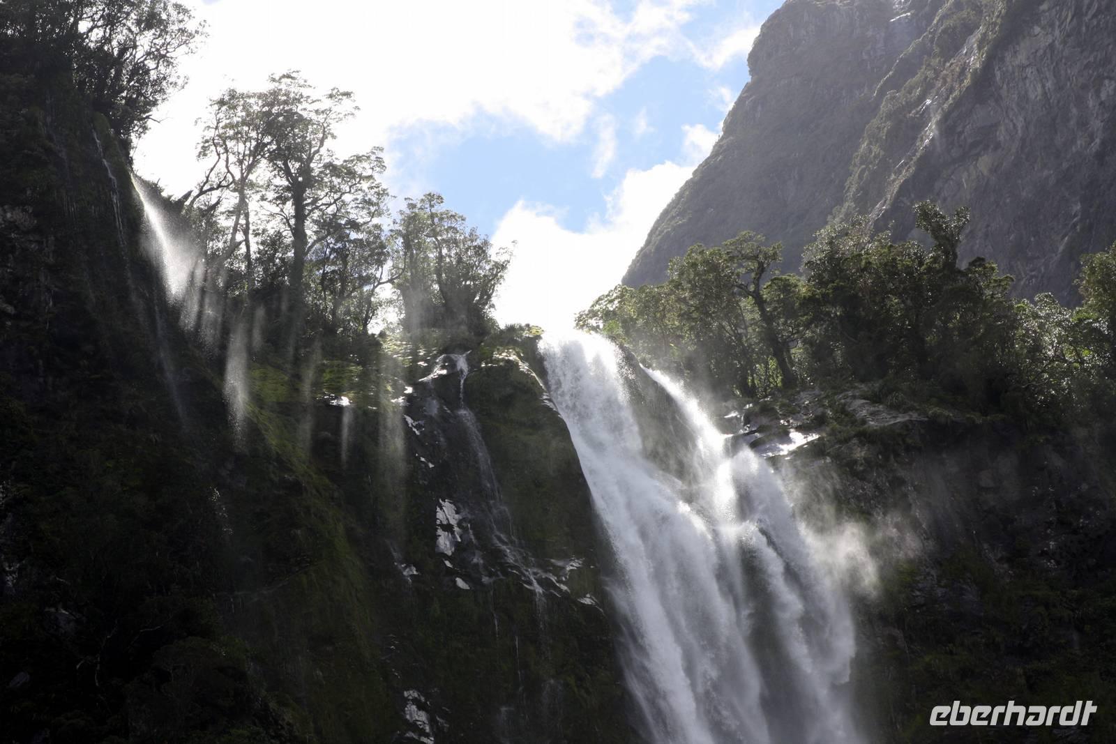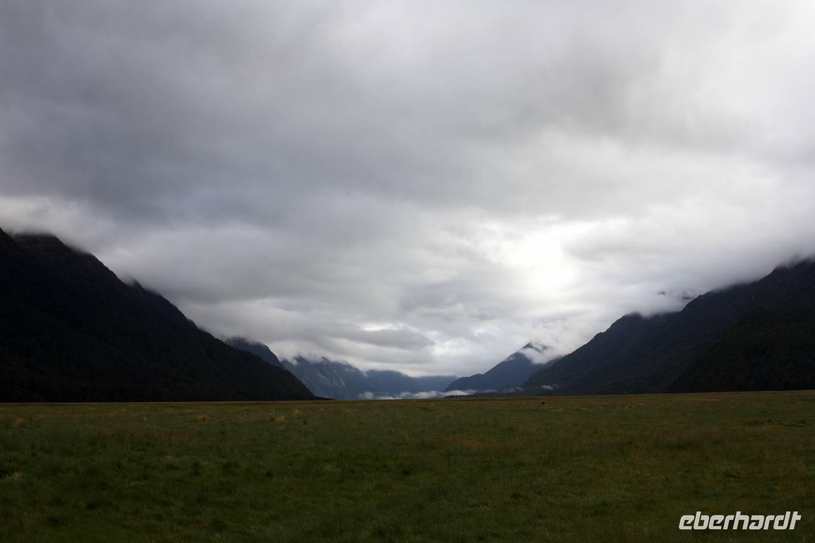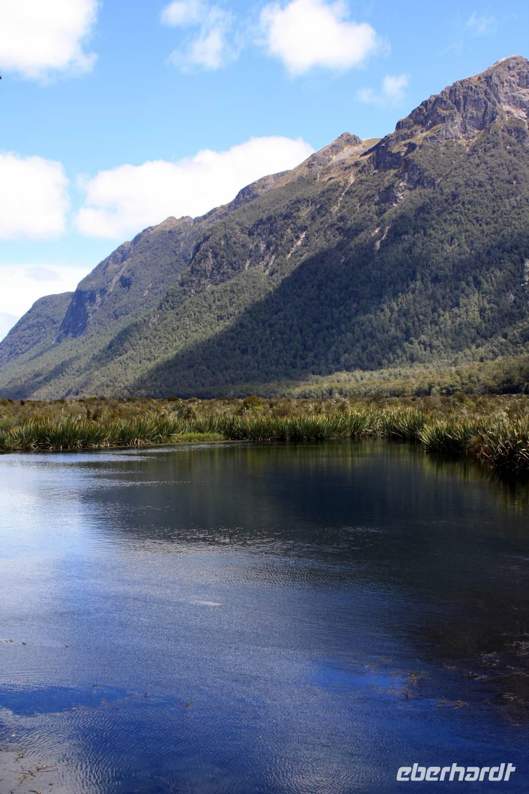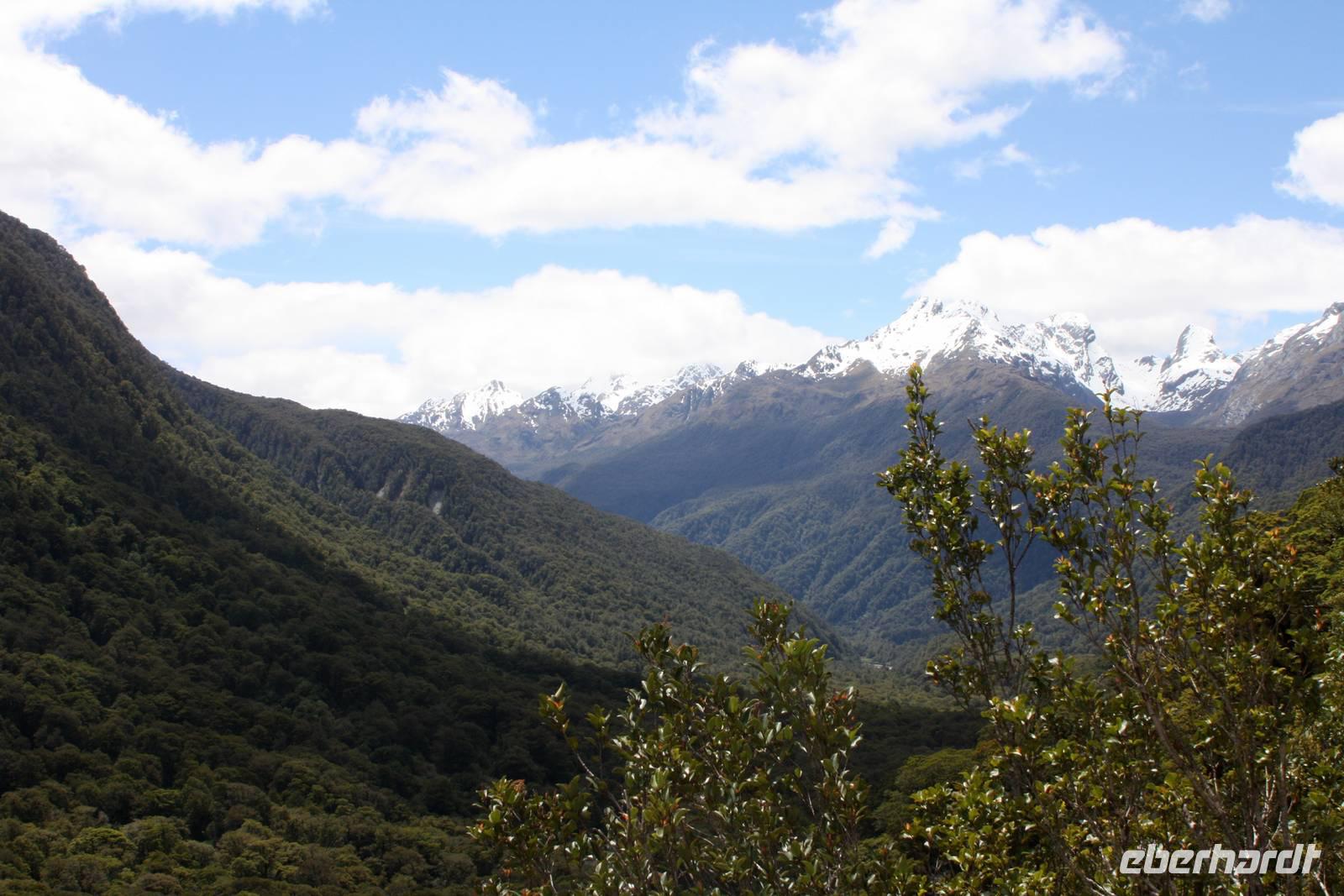 Wir reisen weiter entlang der Southern Scenic Route von der Küste in die Berge nach Te Anau, dem Tor zum Fiordland Nationalpark. Die Regenschauer während der Busfahrt stören uns wenig, denn sonst wäre es hier wohl kaum so grün. Die Landschaft um den Lake Manapouri und den Lake Te Anau ist traumhaft schön und auch das Wetter meint es wieder gut mit uns. Nach dem Mittag unternehmen wir eine Wanderung auf einem Teilstück des berühmten Kepler Tracks. Der Weg führt durch Neuseeländischen Buchenwald entlang des Waiau Rivers. Der Wald wirkt fast märchenhaft mit all den Moosen, Farnen und Flechten. Am Abend besuchen wir das Kino in Te Anau und lernen das Fiordland aus einer besonderen Perspektive kennen. Der Film „Ata Whenua" (Land der Schatten) zeigt spektakuläre Bilder der Region und lädt zum Träumen ein.