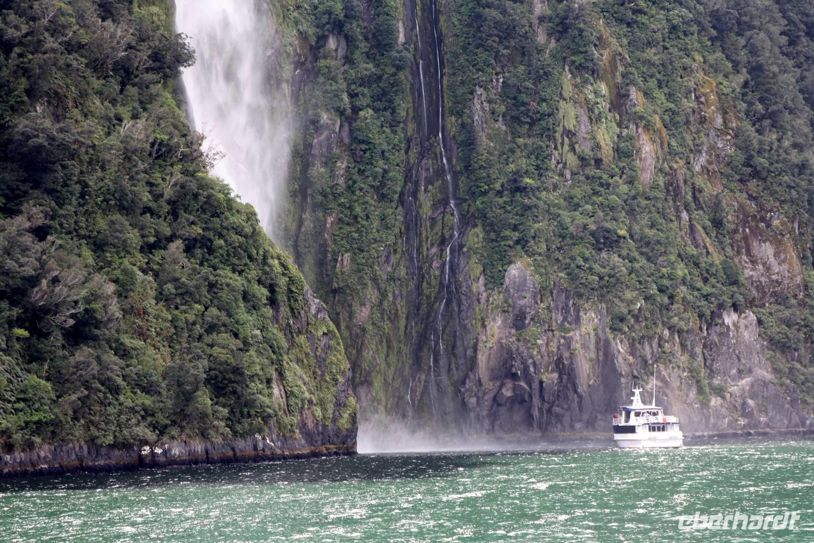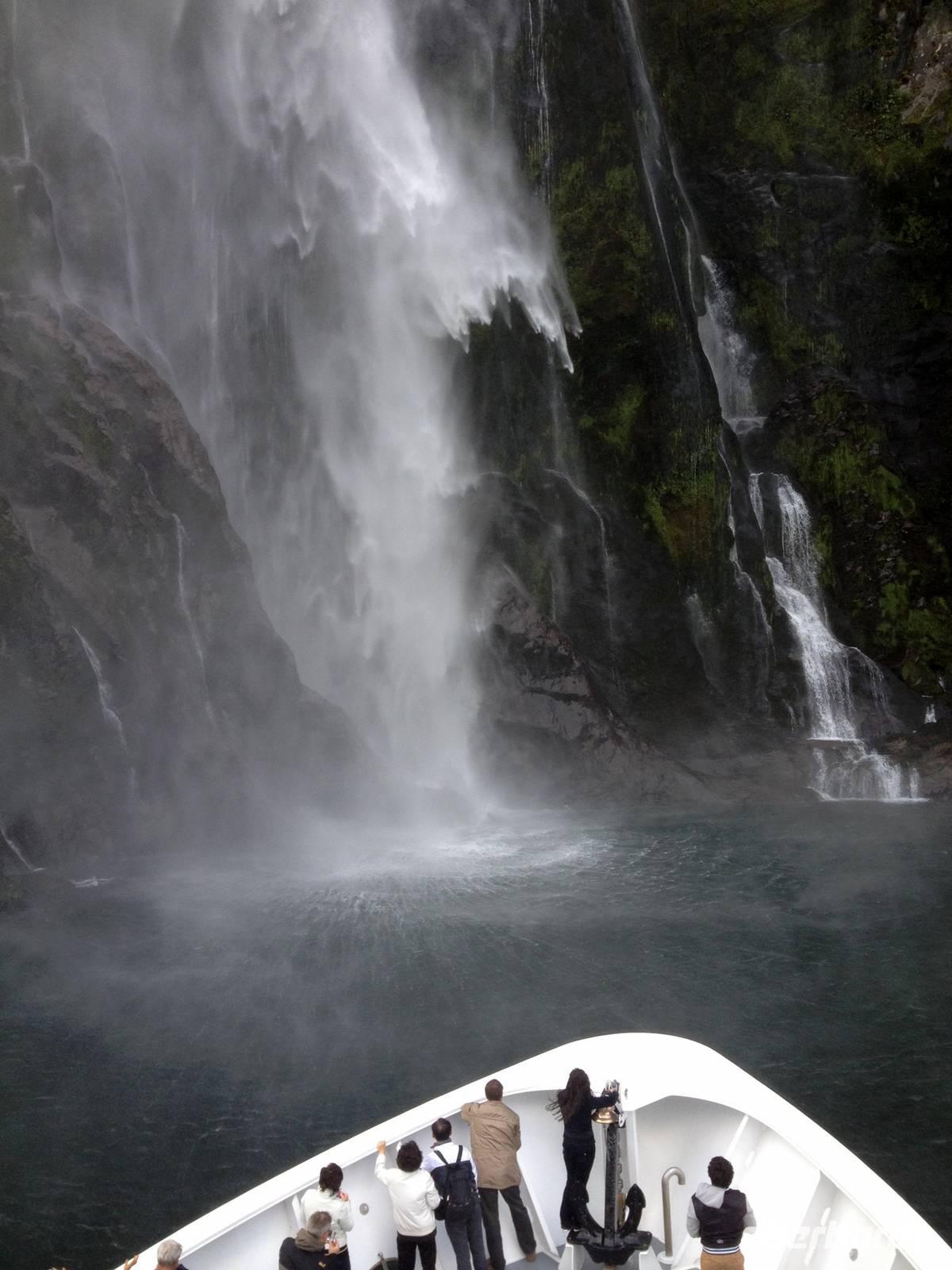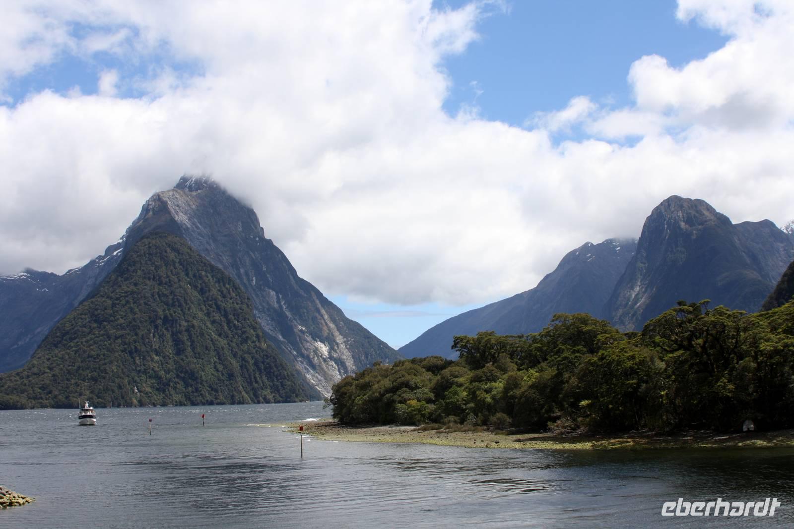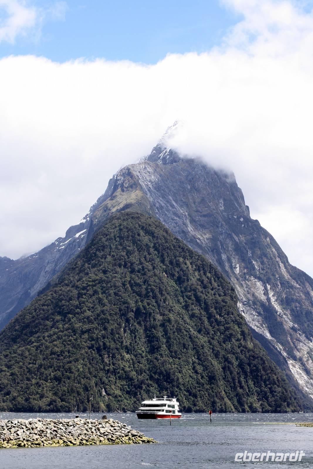 Unser Tag beginnt früh, denn heute steht ein weiterer Höhepunkt unserer Reise auf dem Programm. Von Te Anau fahren wir in den größten Nationalpark des Landes, den Fiordland Nationalpark. Die Route führt durch das Eglinton Valley in eine subalpine Wunderwelt. An den Mirror Lakes spiegelt sich die Landschaft und bietet schöne Fotomotive. Auf unserer Weiterfahrt treffen wir auf die frechen Keas und durchqueren schließlich den Homer Tunnel (940 Meter). Auf der anderen Seite fällt das Cleddau Valley steil zum Milford Sound ab. Manchmal ist hier sogar schönes Wetter - heute ist so ein Tag! An der Pier steht unser Schiff, die „Sovereign", zur Abfahrt bereit. Während der eineinhalbstündigen Fahrt können wir dieses Naturwunder ausgiebig genießen. Die Felsen ragen steil zu beiden Seiten des Fjordes auf und der Blick vom Meer zum Gletscher ist zweifelsohne ein besonderer Höhepunkt! Nur der Gipfel des markanten Mitre Peak versteckt sich in Wolken. Auf der Rückfahrt über die selbe Route bieten sich noch einmal Ausblicke in das Hollyford Valley. In Te Anau statten wir den seltenen Takahes noch einen Besuch im Vogelpark ab, bevor wir weiter nach Queenstown fahren.