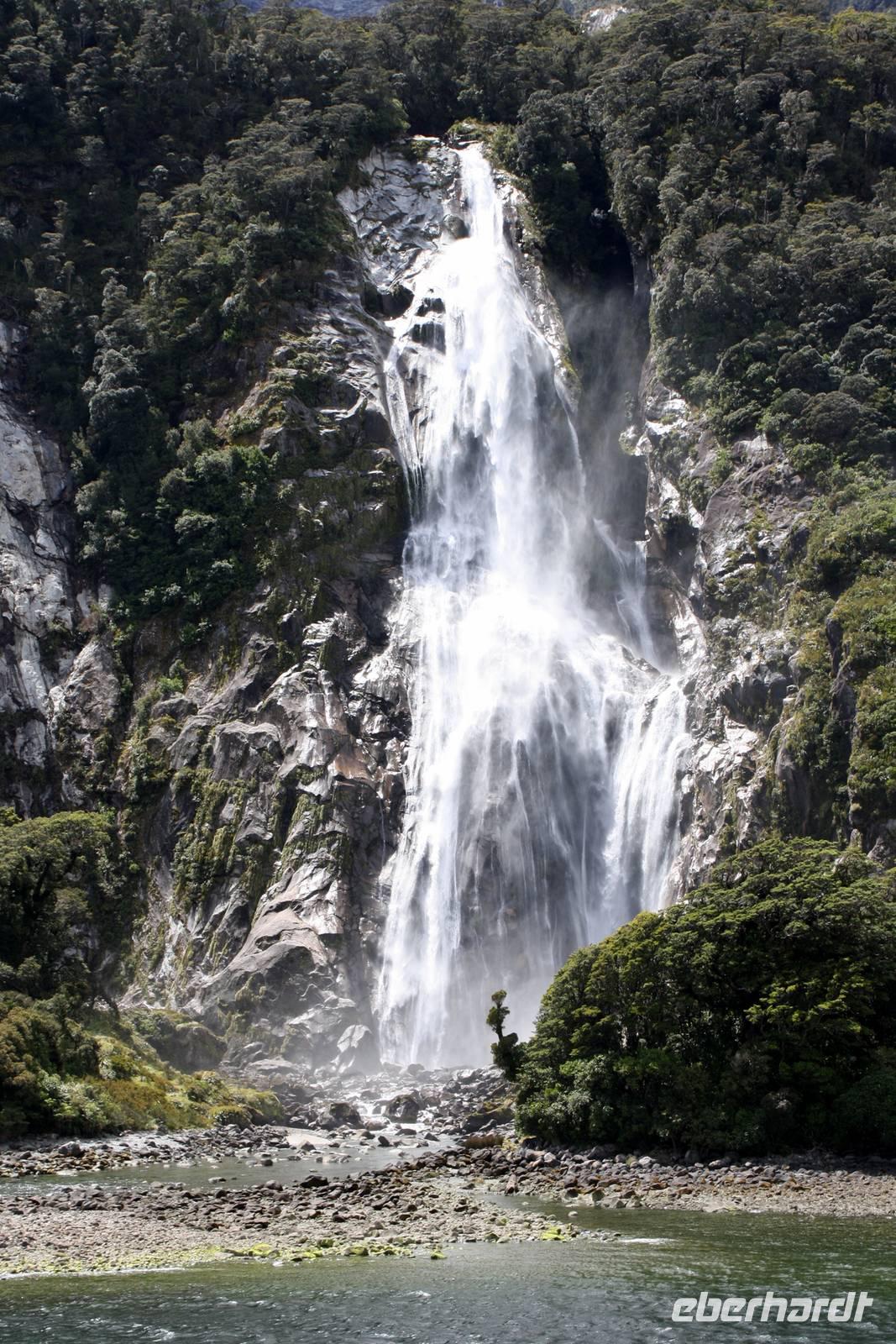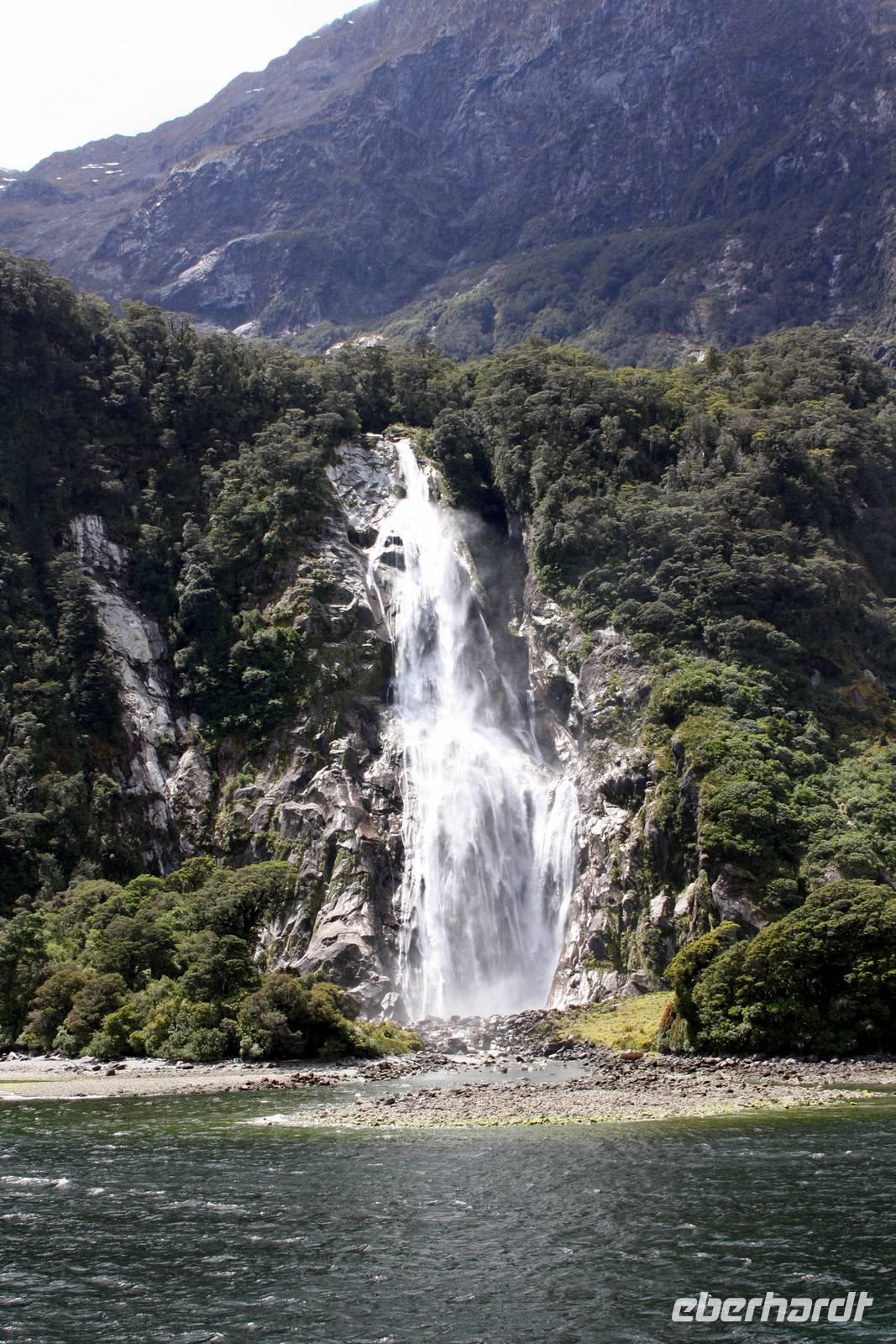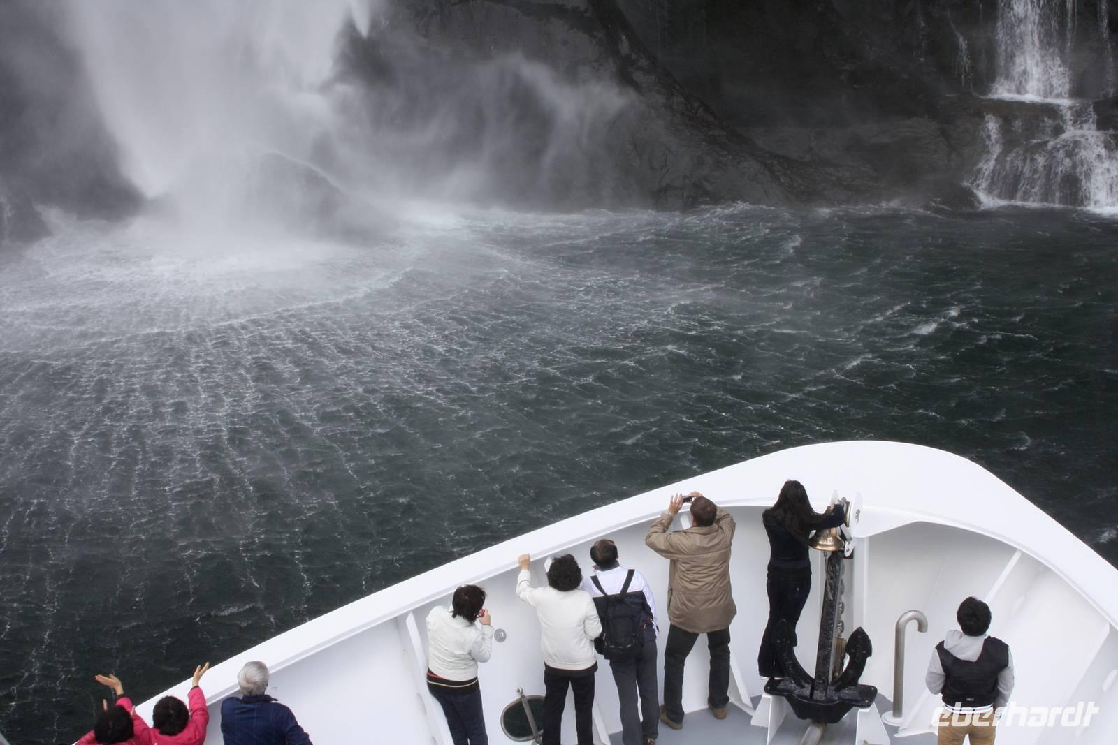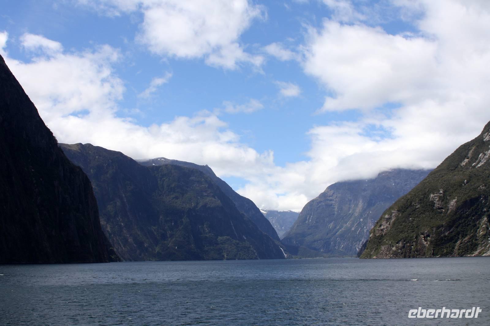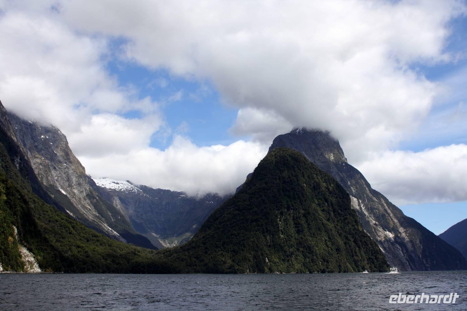 Unser Tag beginnt früh, denn heute steht ein weiterer Höhepunkt unserer Reise auf dem Programm. Von Te Anau fahren wir in den größten Nationalpark des Landes, den Fiordland Nationalpark. Die Route führt durch das Eglinton Valley in eine subalpine Wunderwelt. An den Mirror Lakes spiegelt sich die Landschaft und bietet schöne Fotomotive. Auf unserer Weiterfahrt treffen wir auf die frechen Keas und durchqueren schließlich den Homer Tunnel (940 Meter). Auf der anderen Seite fällt das Cleddau Valley steil zum Milford Sound ab. Manchmal ist hier sogar schönes Wetter - heute ist so ein Tag! An der Pier steht unser Schiff, die „Sovereign", zur Abfahrt bereit. Während der eineinhalbstündigen Fahrt können wir dieses Naturwunder ausgiebig genießen. Die Felsen ragen steil zu beiden Seiten des Fjordes auf und der Blick vom Meer zum Gletscher ist zweifelsohne ein besonderer Höhepunkt! Nur der Gipfel des markanten Mitre Peak versteckt sich in Wolken. Auf der Rückfahrt über die selbe Route bieten sich noch einmal Ausblicke in das Hollyford Valley. In Te Anau statten wir den seltenen Takahes noch einen Besuch im Vogelpark ab, bevor wir weiter nach Queenstown fahren.