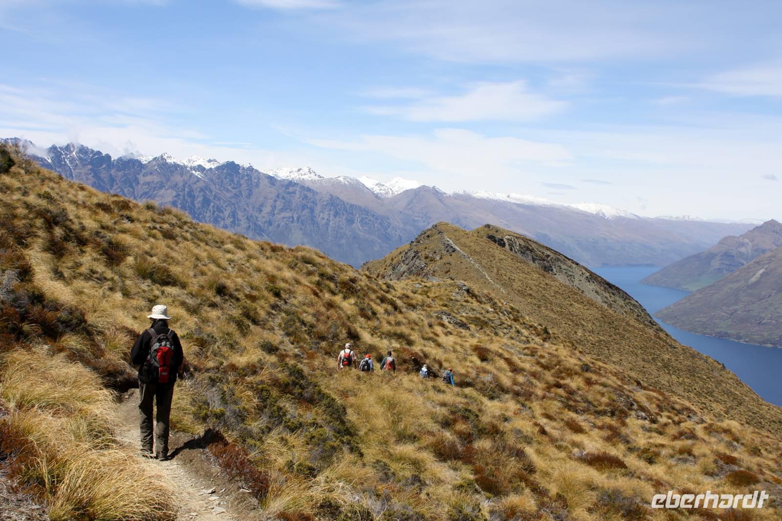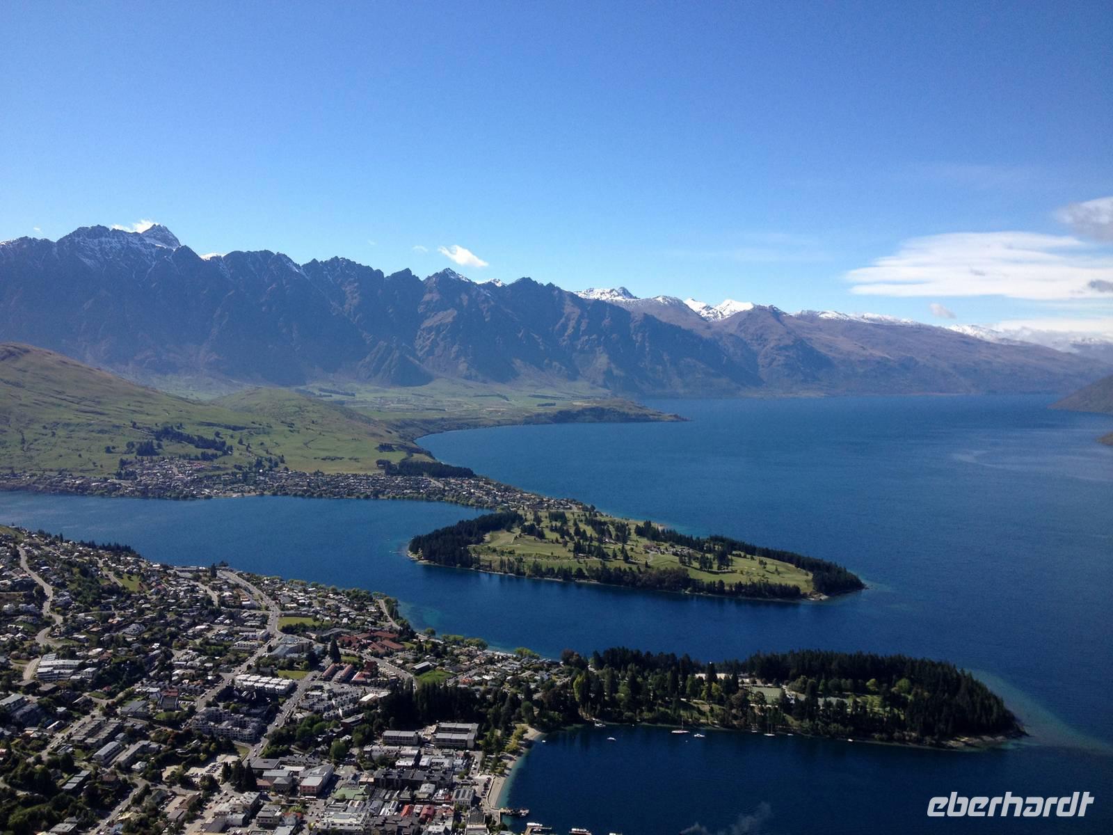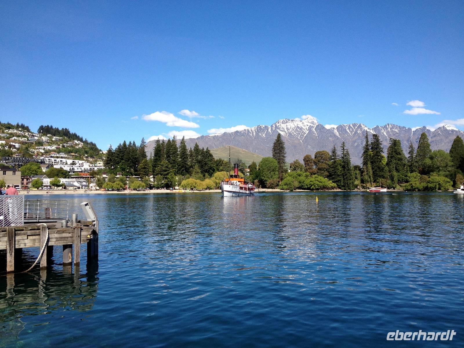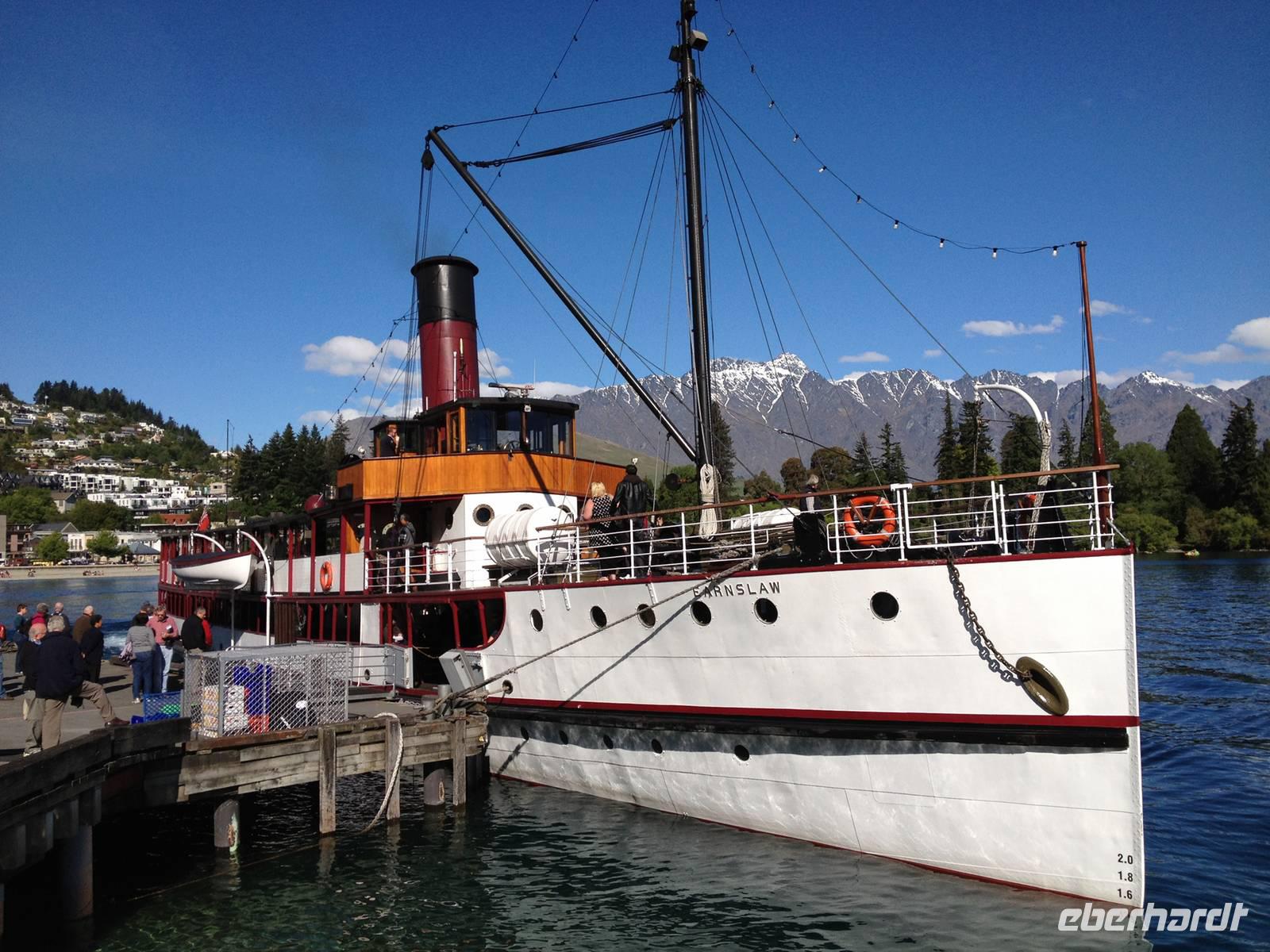 Nach all den Erlebnissen der vergangenen Tage ist heute ein echter Genießertag, und Queenstown bietet das Richtige für jeden Geschmack. Das historische Dampfschiff "TSS Earnslaw" lädt zu einer Fahrt zur Walter Peak Station ein oder es geht hoch hinauf auf den Bob's Peak. Mit der Gondelbahn schweben wir auf den Hausberg von Queenstown. Hier bietet sich ein fantastisches Panorama auf die Stadt, den Lake Wakatipu und die markanten Berge der Umgebung. Für alle, die noch weiter hinaus möchten, geht es zu Fuß in Richtung Ben Lomond. Die Aussicht ist einfach atemberaubend! Am Nachmittag ist Gelegenheit für einen gemütlichen Stadtbummel , ein leckeres Eis und den Besuch des Botanischen Gartens.