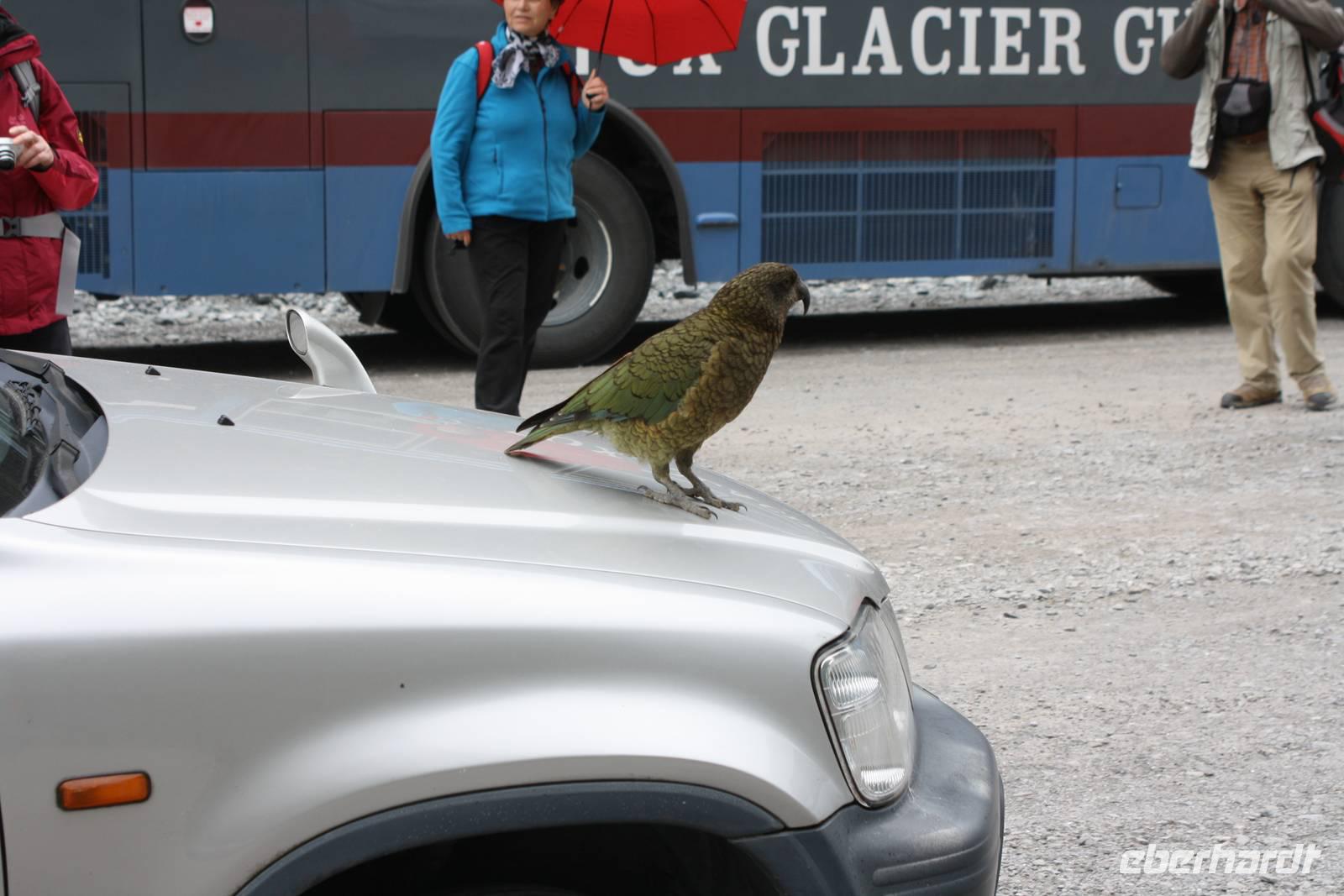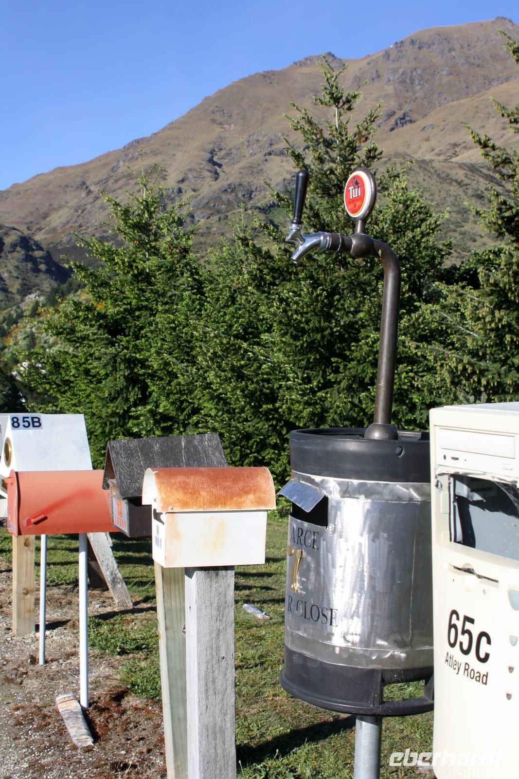 Dass die Neuseeländer ausgesprochen kreativ und einfallsreich sind, zeigt sich auch an den ausgefallenen Briefkästen. In Queenstown sehen wir eine Sammlung von über 70 besonderen Exemplaren. Ein wenig nostalgische Atmosphäre finden wir in Arrowtown, wo einst der Goldrausch viele Glücksritter anzog. Heutzutage gibt es ganz andere Attraktionen in der Region: Abenteuerlustige finden hier alle möglichen und unmöglichen Sportarten. An der Bungee-Brücke über dem Kawarau-River können wir die mutigen Springer beobachten. Wir lassen Queenstown hinter uns und fahren über die Crown Range und den Cardrona Pass nach Wanaka. Das hübsche Städchen liegt malerisch am Seeufer. Unsere Wanderung führt hinauf zum Mount Iron, wo sich uns eine tolle Aussicht auf die traumhafte Landschaft bietet. Die Route führt uns schließlich weiter entlang des türkisblauen Lake Hawea und Lake Wanaka mit fantastischen Landschaftsbildern! Über den Haast-Pass queren wir die Alpenkette von Ost nach West. Manchmal scheint sogar die Sonne an der Westküste - heute ist so ein Tag!