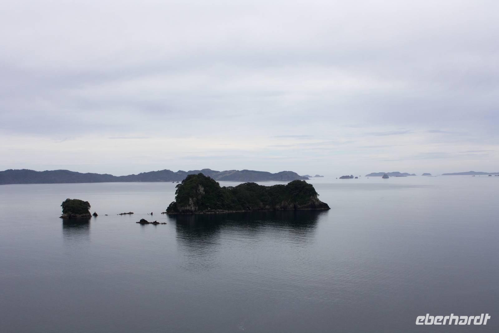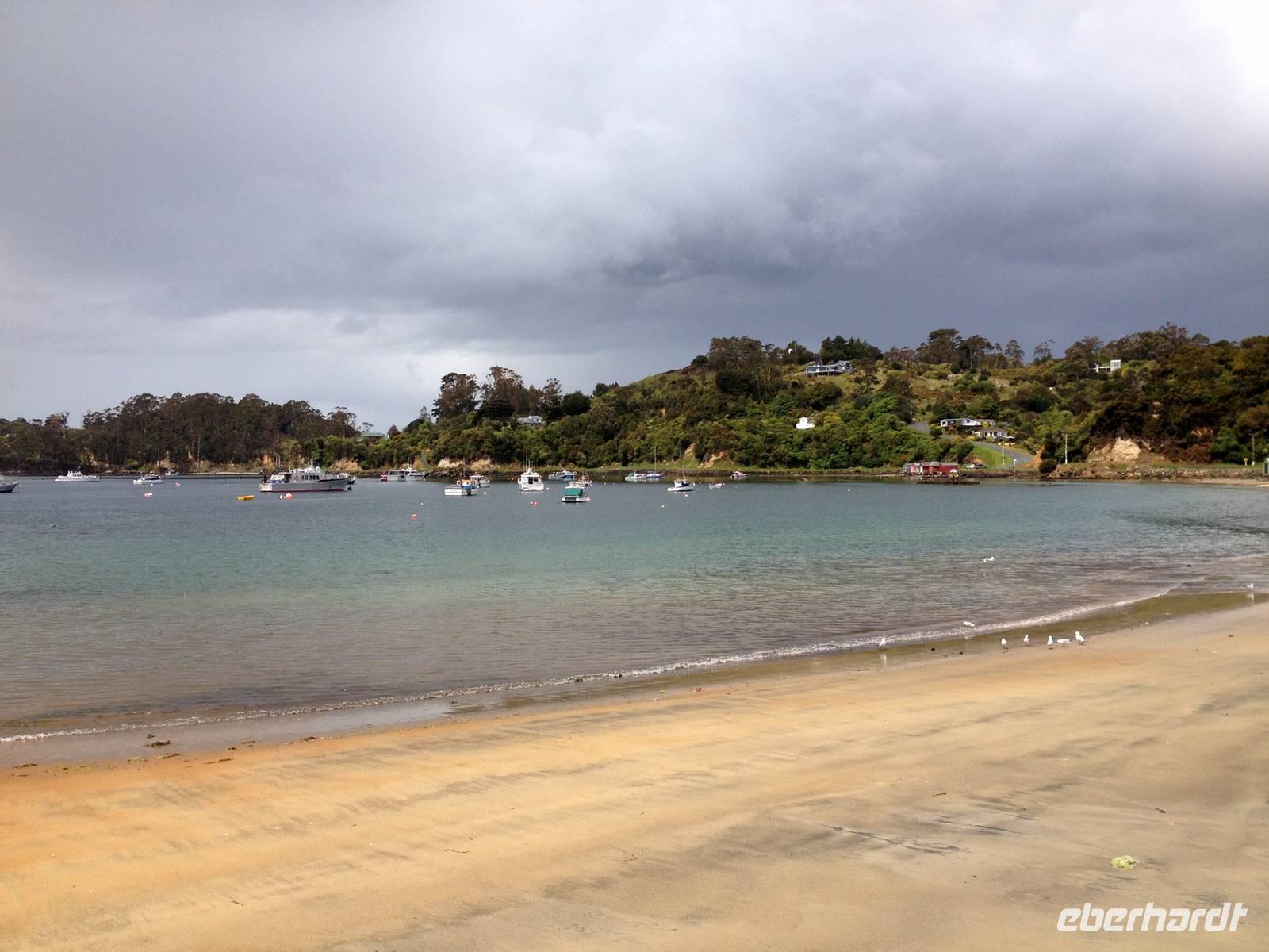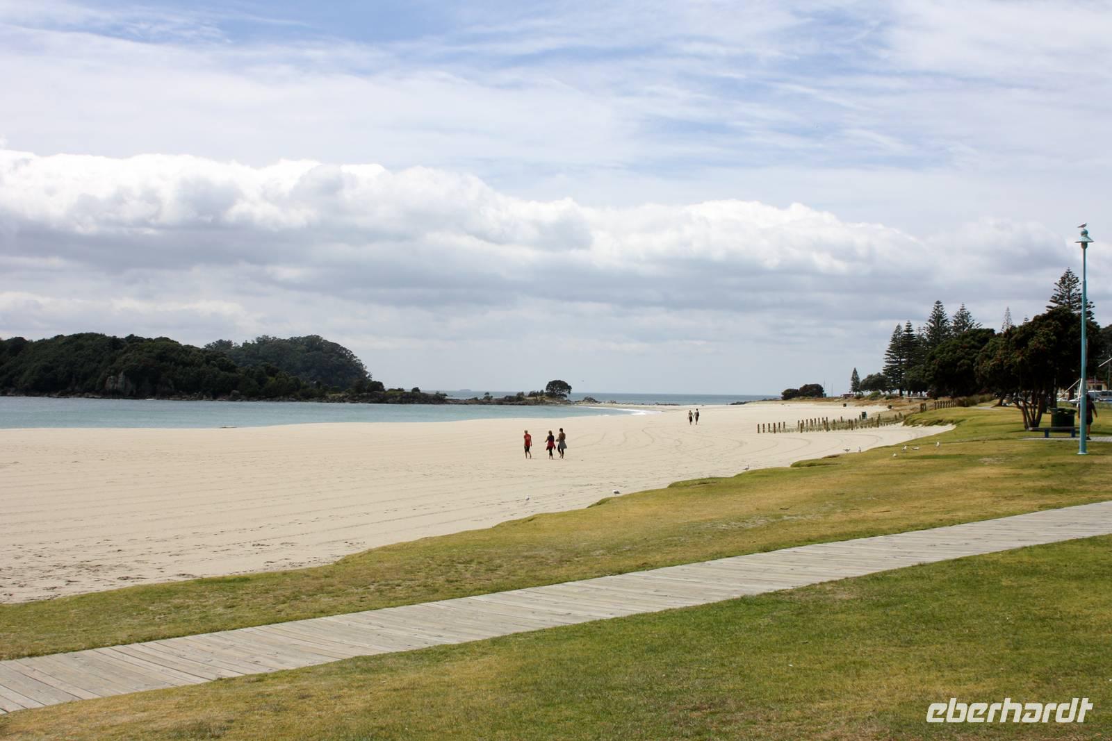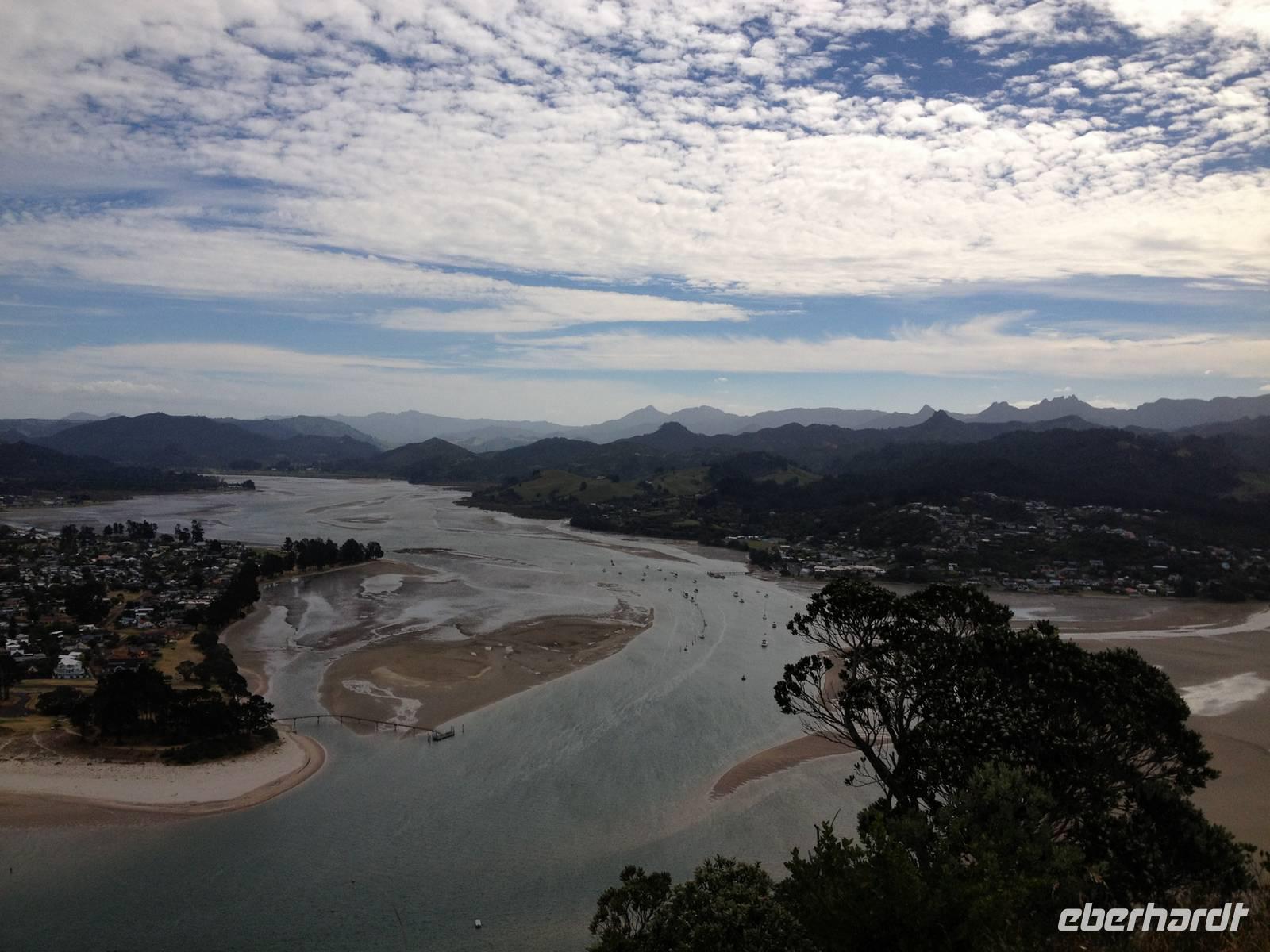 Unsere Reise führt uns heute durch die Kiwi-Anbaugebiete um Te Puke nach Mt. Maunganui. Hier erwartet uns ein lang gezogener Sandstrand, der einige zum Baden lockt. Je weiter wir nach Norden gelangen, umso prachtvoller blühen die Pohutukawa, die Neuseelandischen Weihnachtsbäume! Nach der Mittagspause in Tauranga fahren wir über Waihi auf die traumhaft schöne Coromandel-Halbinsel. Wir checken in unserem Hotel in Tairua ein und wollen die Umgebung etwas näher erkunden. Den besten Ausblick hat man vom Paku Hill, den wir mit einem kurzen Anstieg erklimmen. In der Vorsaison wirkt Tairua recht verschlafen, ist jedoch im Januar und Dezember ein beliebtes Urlaubsziel. Wir würden auch gern etwas länger hier verweilen und eines der Häuschen am Wasser mit den gepflegten Gärten beziehen!