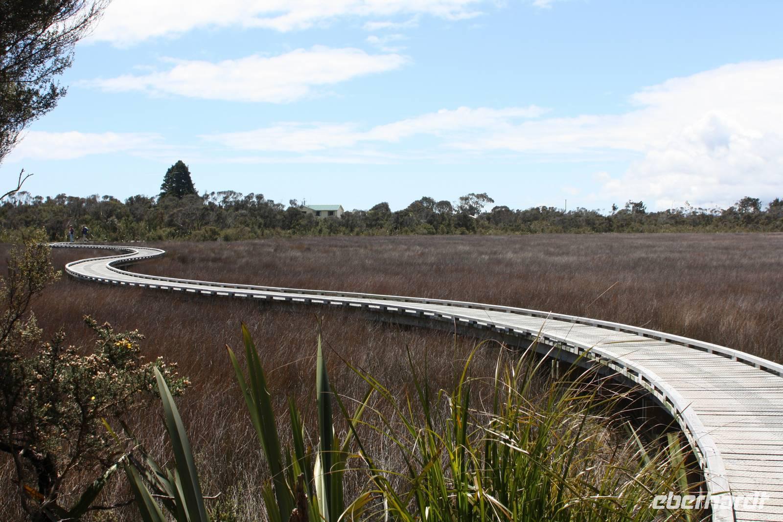 Von Bluff setzen wir am Morgen mit der Fähre nach Steward Island über - neben der großen Nord- und Südinsel, ist dies die dritte Hauptinsel Neuseelands. Die einstündige Überfahrt ist verhältnismäßig ruhig, denn die windumtoste Foveaux Street ist berüchtigt für viel Seegang. In Oban steigen wir direkt um auf ein kleineres Schiff und fahren weiter nach Ulva Island. Das Inselchen im Paterson Inlet ist ein Naturparadies und Heimat einiger seltener einheimischer Vögel und Pflanzen. Willkommen im Konzertsaal der Natur! Das Gezwitscher ist einfach herrlich! Bei unserer Wanderung durch den üppig grünen Wald entdecken wir den äußerst seltenen Sattelstar, den hübschen Tui (Pastorenvogel), den putzigen Tomtit, den Bellbird (Glockenvogel) und sogar den Waldpapagei Kaka. Bevor wir wieder zum Festland zurück fahren, haben wir etwas Freizeit im beschaulichen Oban. In Bluff legen wir noch einen Stopp am Stirling Pont ein, wo ein Wegweiser die Entfernungen zu großen internationalen Orten angibt. Wir sind hier dem Südpol etwas näher als dem Äquator. In Invercargill halten wir kurz am Southland Museum, wo wir Tuataras beobachten können - einheimische Reptilien aus der Dinosaurierzeit! Heute haben wir bereits den südlichsten Punkt unserer Reise erreicht. Ab morgen geht es weiter nordwärts.