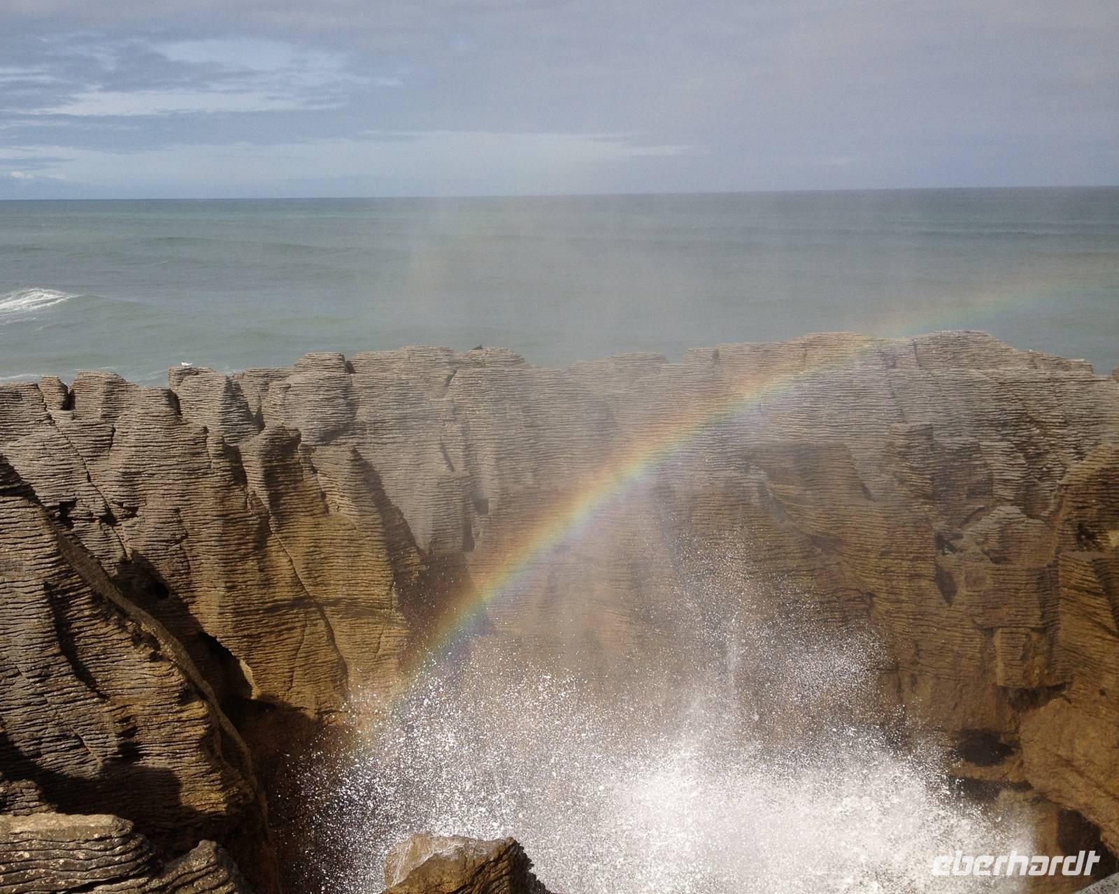 Die Westküste ist so abwechslungsreich wie kaum eine andere Region Neuseelands. Am Morgen besuchen wir die Pancake Rocks in Punakaiki. Hier hat die Natur wiederum ein kleines Wunderwerk vollbracht. Die Felsen sind wie Plinsen aufgeschichtet und bilden interessante Formationen. Ein Spazierweg führt durch einen Wald aus New Zealand Flax und Nikau Palmen zu einigen schönen Aussichtspunkten. Durch die starke Brandung schießt das Wasser in den Blow Holes in die Höhe und zaubert mit der Sonne schöne Regenbögen. Am Cape Foulwind unternehmen wir noch einen Spaziergang zu einer Kolonie von Seehunden, die sich auf den Felsen sonnen und im Wasser plantschen. Später verlassen wir die Westküste und fahren durch die Schlucht des Buller-Flusses nach St. Arnaud. Das kleine Dorf liegt eingebettet in eine wunderbare Bergwelt am Lake Rotoiti. Im Hotel werden wir mit österreichischer Gastfreundlichkeit begrüßt und bestens bewirtet.