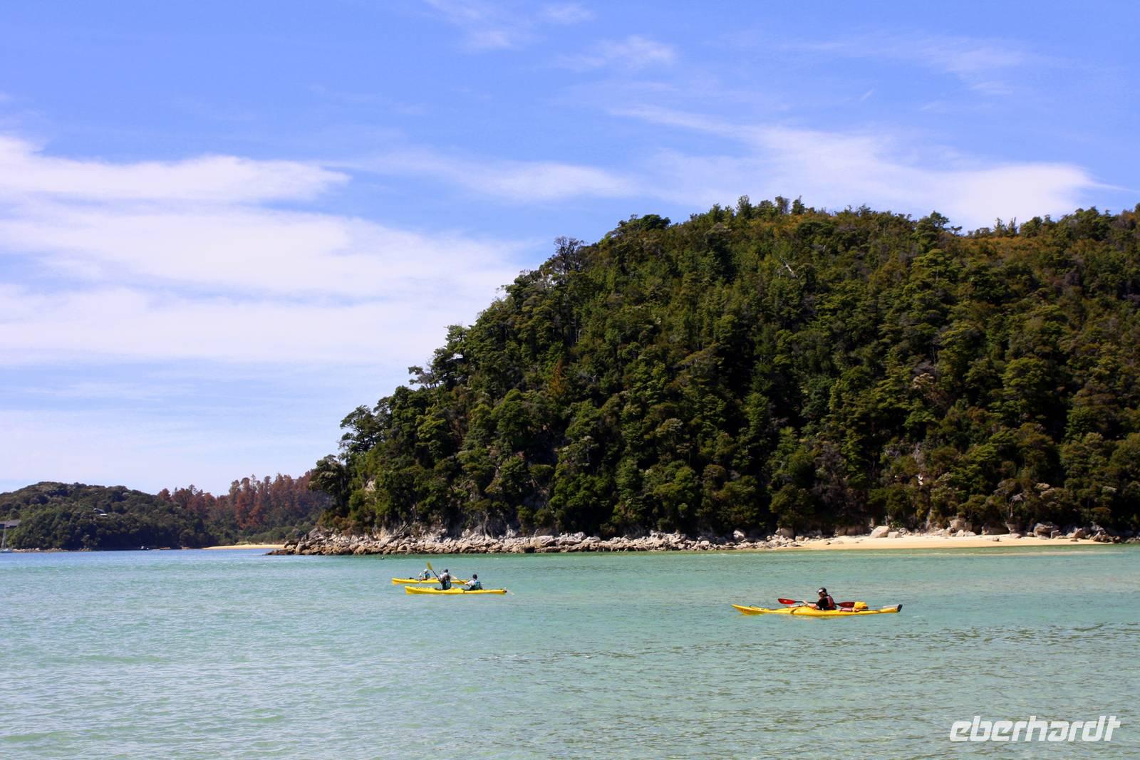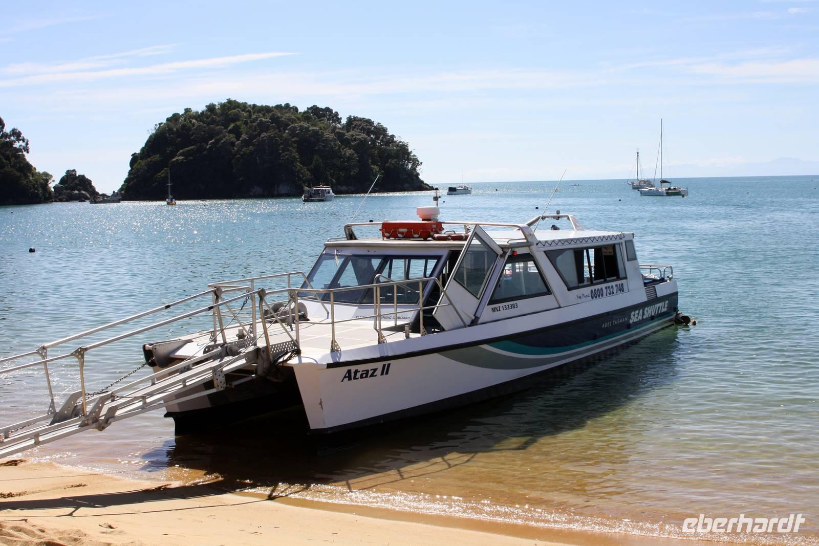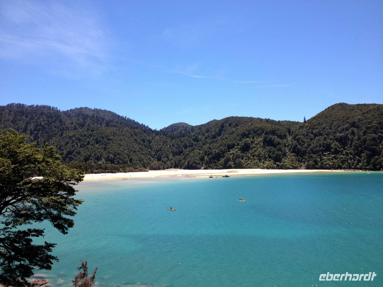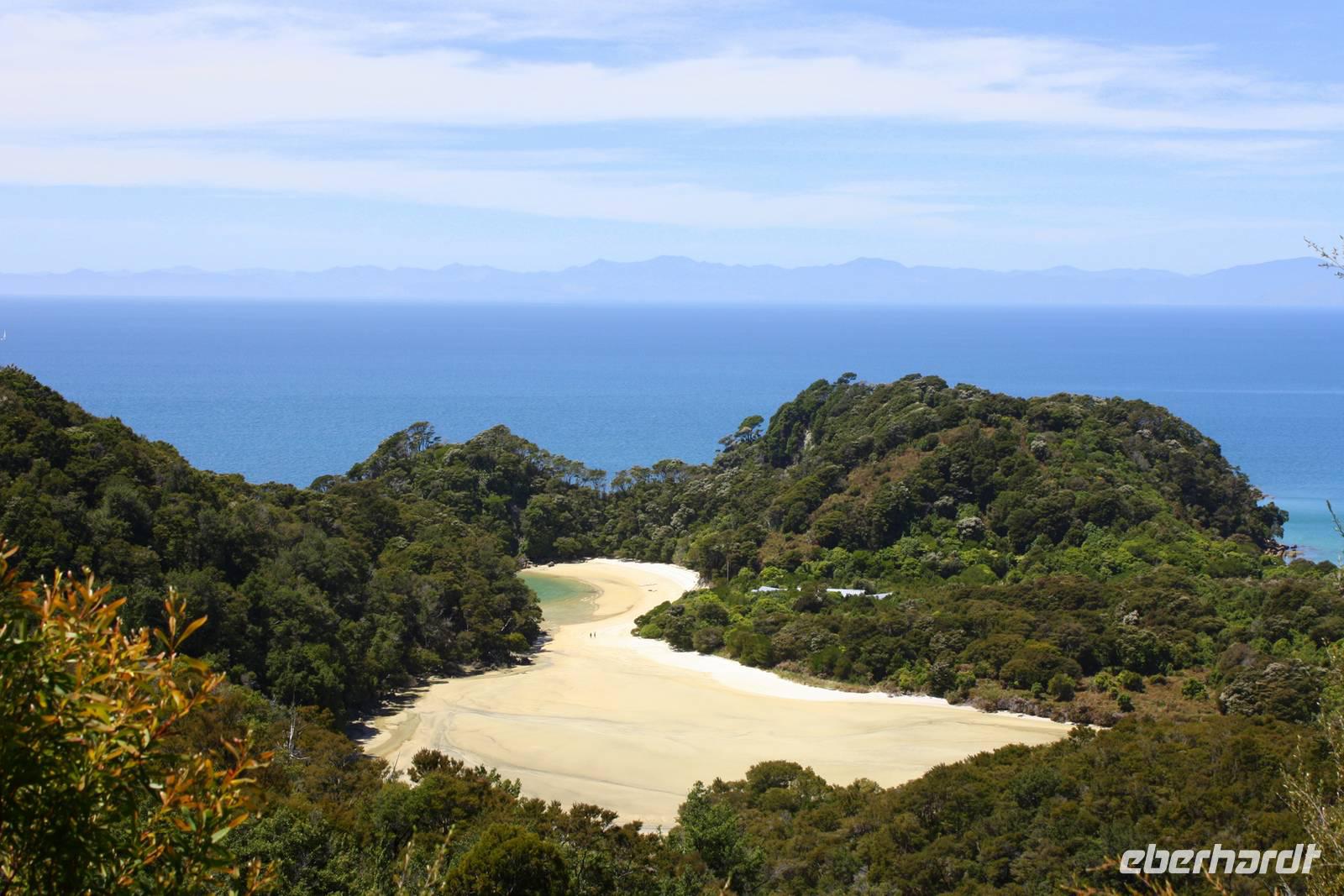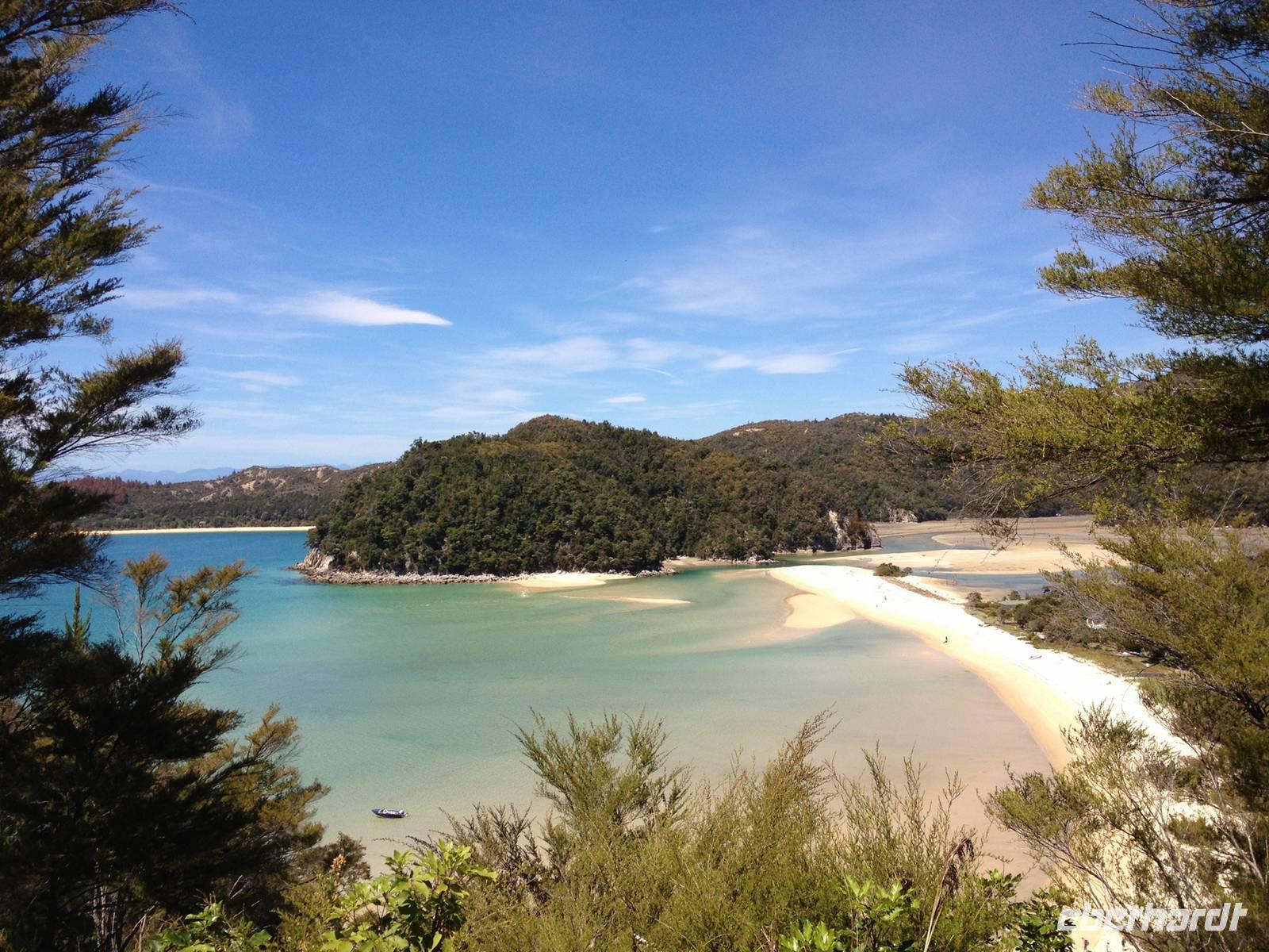 Auch das ist Neuseeland - goldgelbe Sandstrände und türkisfarbenes Meer! Willkommen im Abel Tasman Nationalpark! In zwei Stunden erreichen wir diese sonnenverwöhnte Gegend im Norden der Südinsel. In Kaiteriteri steigen wir vom Bus auf's Boot, das uns zum Ausgangspunkt unserer Wanderung bringt. Von Torrent Bay wandern wir durch einen herrlichen Wald aus Baumfarnen, Südbuchen und Manuka zur Bark Bay. Zwischen dem Grün der Bäume leuchtet das Meer. Der Traumstrand am Wanderziel lädt zum Baden und Relaxen ein. Auf der Rückfahrt mit dem Wassertaxi haben wir noch einmal tolle Ausblicke auf die wunderbare Landschaft! Am Abend kehren wir zurück nach St. Arnaud zur Übernachtung.