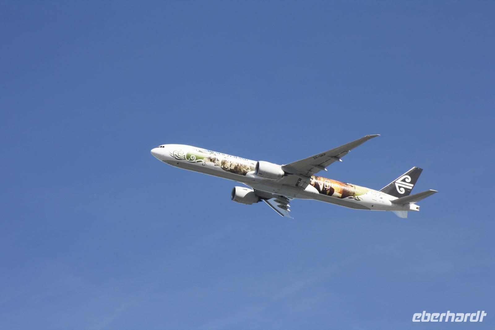 Nach 4.280 Kilometern Rundreise erreichen wir den Flughafen von Auckland und verabschieden uns von unserem Reiseleiter Hampi. (Fast) die ganze Reise hatten wir ungewöhnlich schönes Wetter, doch zum Abflug weint der Himmel und schickt uns Blitz und Donner, so dass wir einige Stunden Verspätung in Kauf nehmen müssen. In Sydney verpassen wir dadurch unseren Flieger und "stranden" in der australischen Metropole.