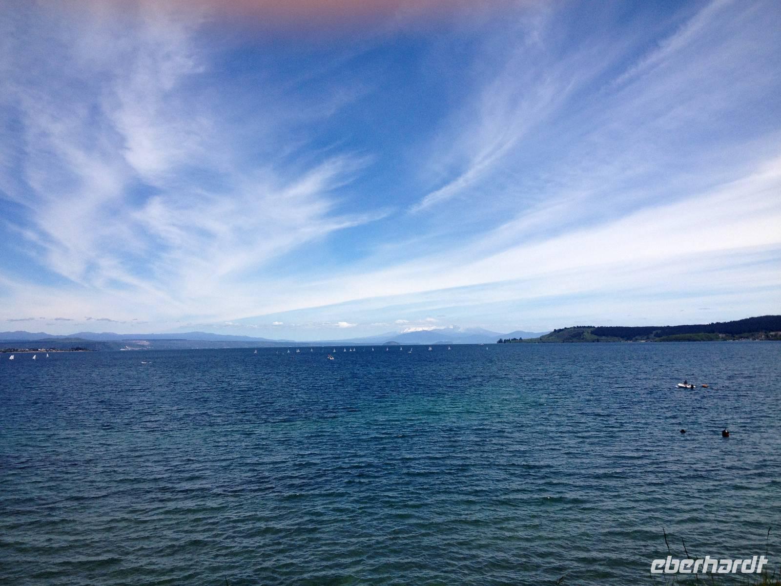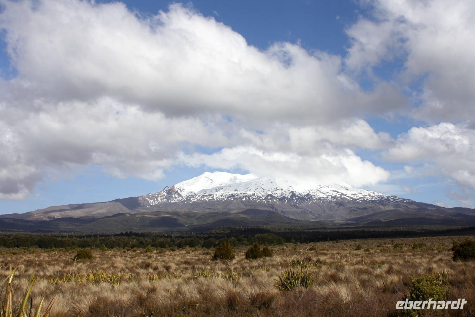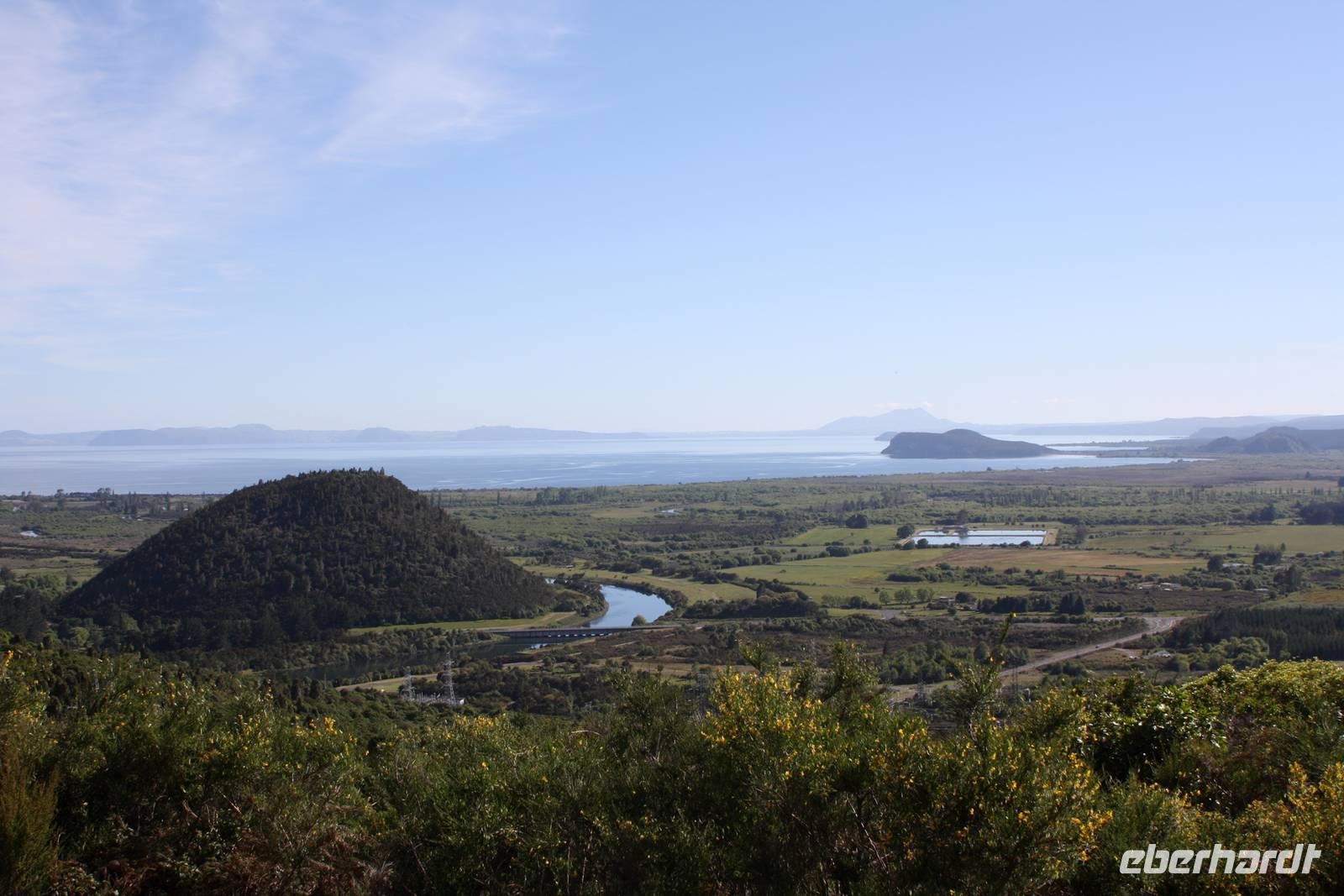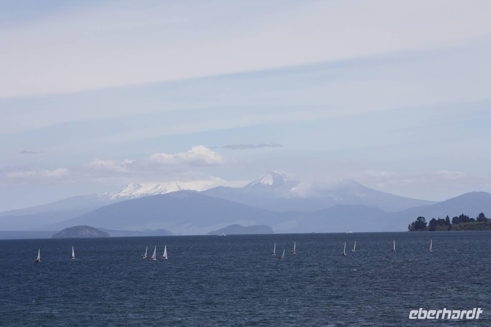 Heute gönnen wir unseren Füßen noch einmal eine Ruhepause. In der Tageszeitung wird von den Stars und Sternchen von der Filmpremiere am Vortag berichtet und wir waren ganz nah dran! Bevor wir Wellington verlassen, legen wir noch einen Stopp auf dem Mount Victoria ein. Von hier haben wir einen tollen Blick auf die Stadt, den Hafen und die Umgebung. Es zeigt sich schnell, dass die Nordinsel deutlich urbaner ist. Wir fahren in nördlicher Richtung entlang der Kapiti Coast durch kleinere Städte, danach wechselt das Landschaftsbild wieder zu grünen Hügeln mit Schaf- und Kuhweiden, bis wir auf das Hochplateau des Tongariro Nationalparks gelangen. Unsere Unterkunft liegt im Herzen der Nordinsel auf ca. 1.100 Meter Höhe und auf den Gipfeln der drei Vulkane liegt immer noch Schnee. Erst vor einer Woche war der Ausbruch am Tongariro und die Aktivitäten werden hier ganz genau beobachtet.