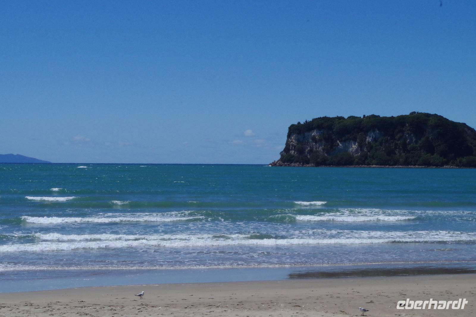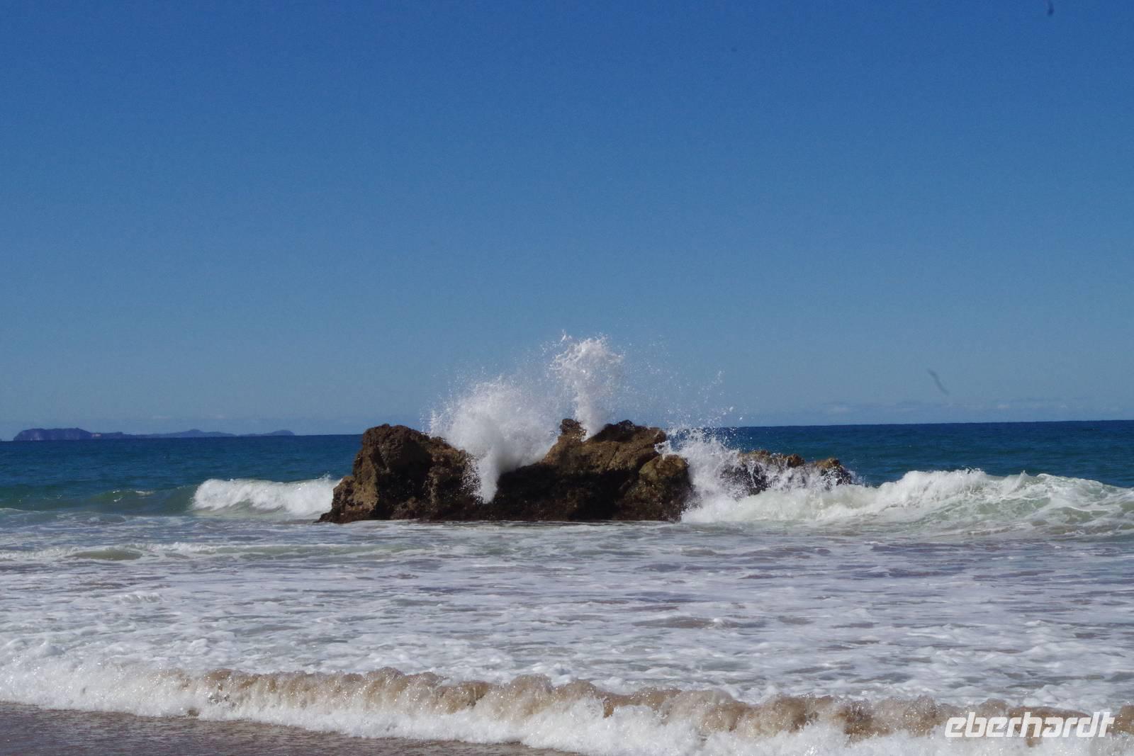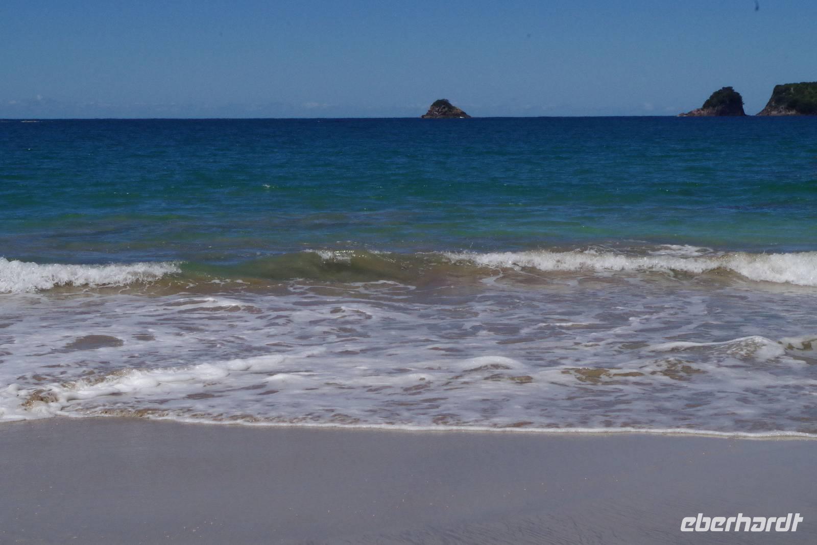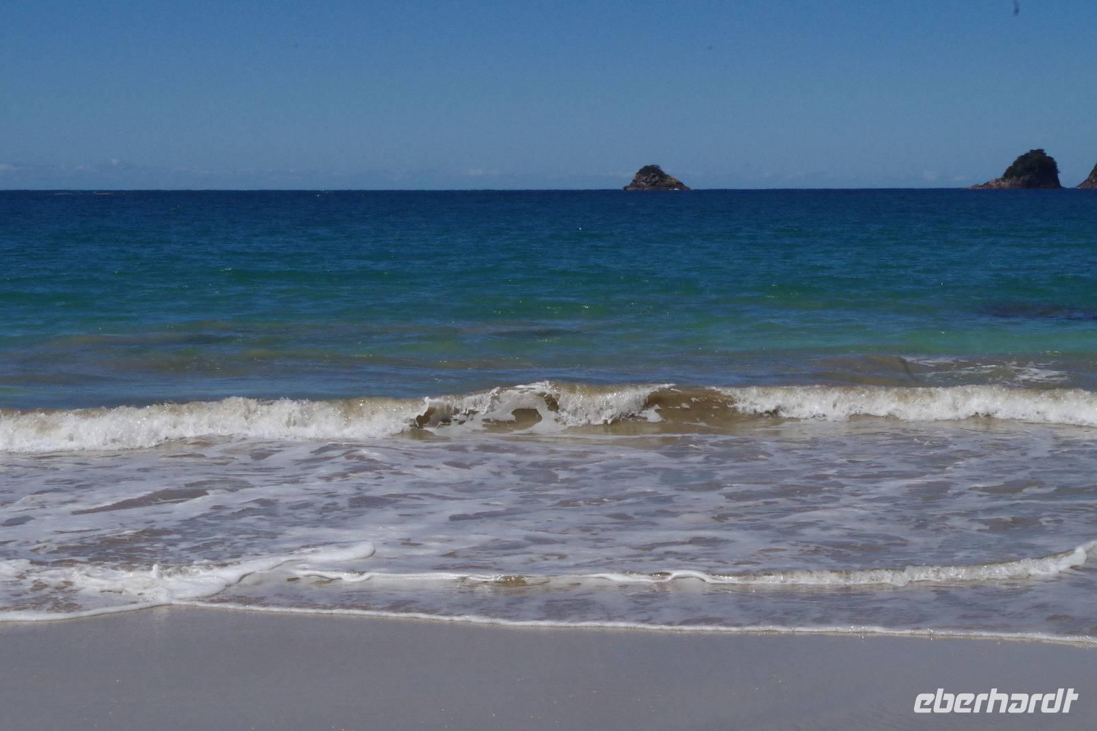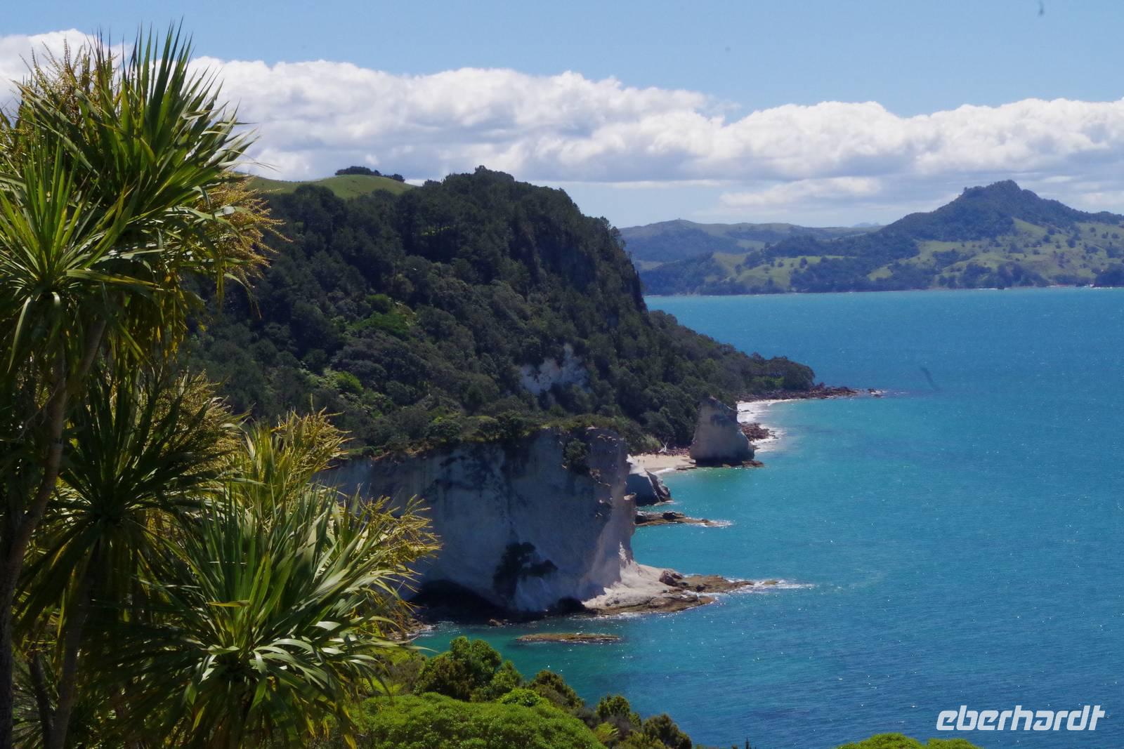 Nach einer erholsamen Nacht und einem echten Farmersfrühstück müssen wir leider bereits wieder Abschied von der Familie nehmen. Ein wahrhaft spannendes Erlebnis, wobei wir einmal tief in das Leben der Farmer Neuseelands blicken durften. Beim Wiedertreffen der Gruppe erzählen alle von ihren Erlebnissen. Für uns ging die Fahrt nun weiter zu Coromandel Halbinsel. Am Strand konnten wir erste schöne Fotos machen. Ziel des Tages war der Ort Tairua welcher ca. 150 km östlich von Auckland liegt. Nach einer ausgiebigen Mittagspause machten wir uns, bepackt mit Handtüchern und Schaufeln, auf Richtung Cathedral Code. Nach einer kleinen Wanderung bei schönsten Sonnenschein dieses Stück Küstenschutzgebiet genießen. Wieder am Bus angekommen machten wir uns auf zum letzten Stopp des heutigen Tages. Der Hot Water Beach ist ein Standabschnitt an der Pazifikküste. Der Strand trägt seinen Namen wegen des Austrittes von Thermalwasser. Also nahmen wir uns unsere Handtücher und die Schaufeln und wollten uns davon überzeigen. Der kleine Spaziergang am Strand entlang war ein Klacks und wir genossen es unsere Füße im heißten Strand zu baden.