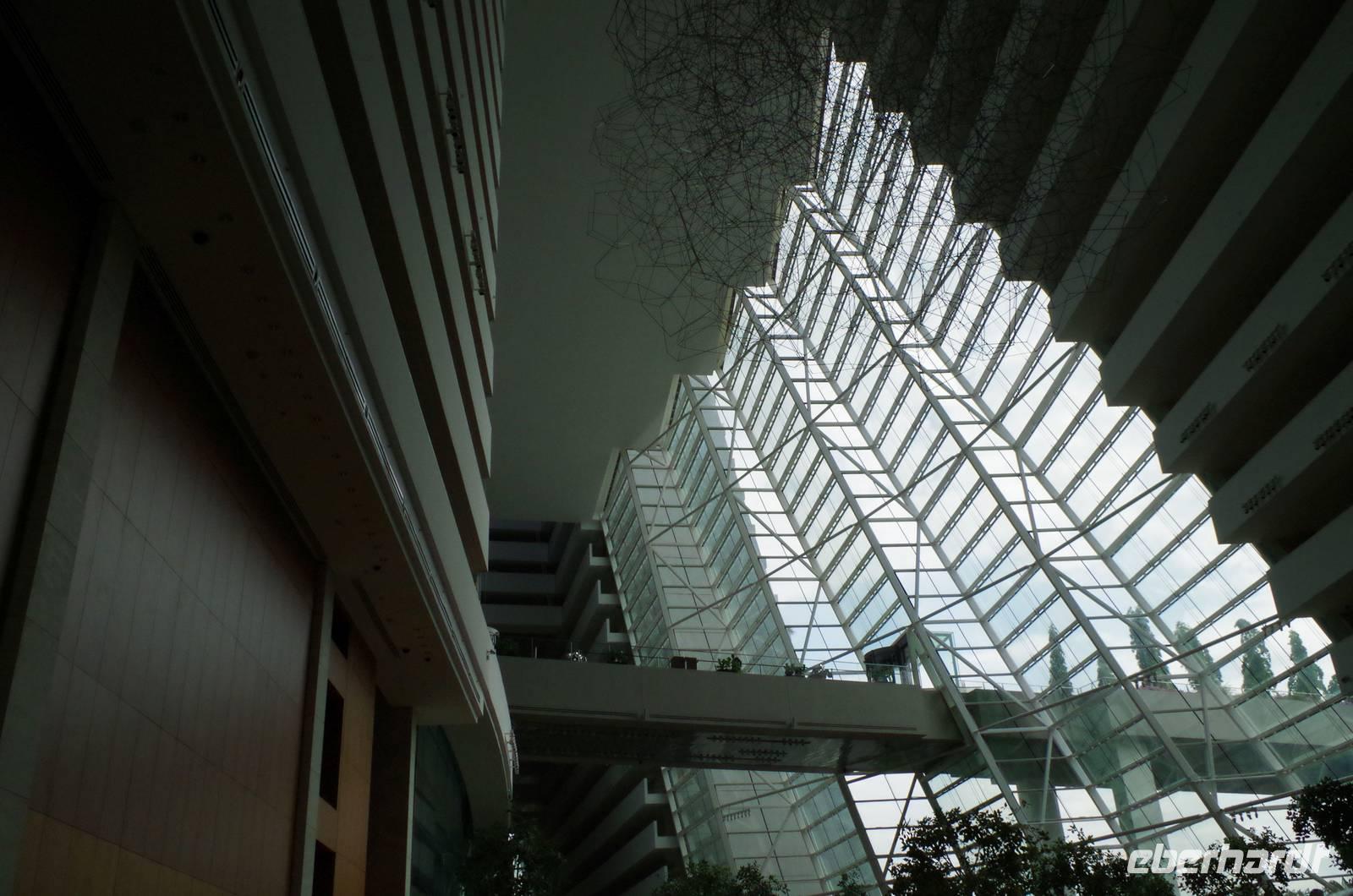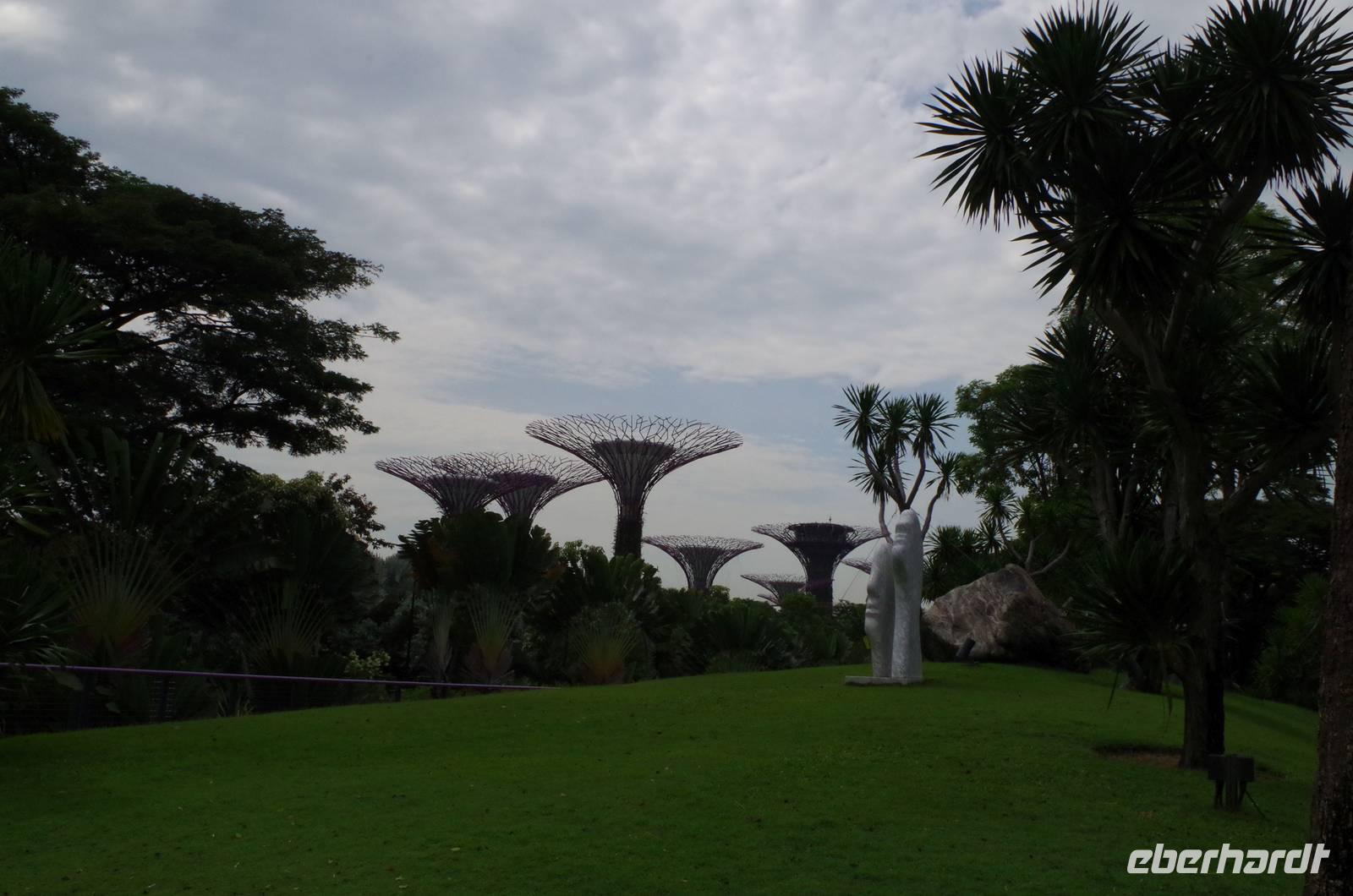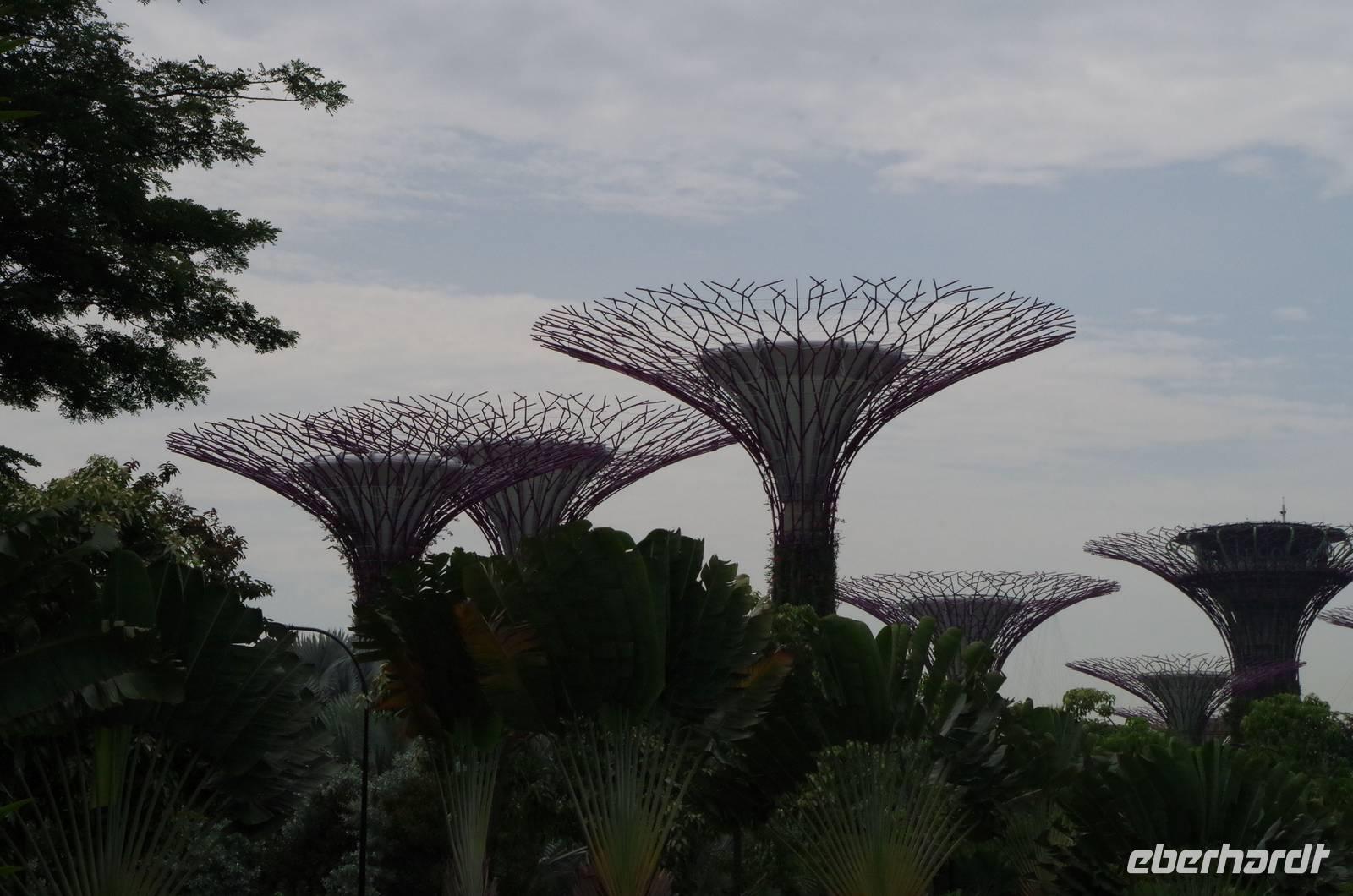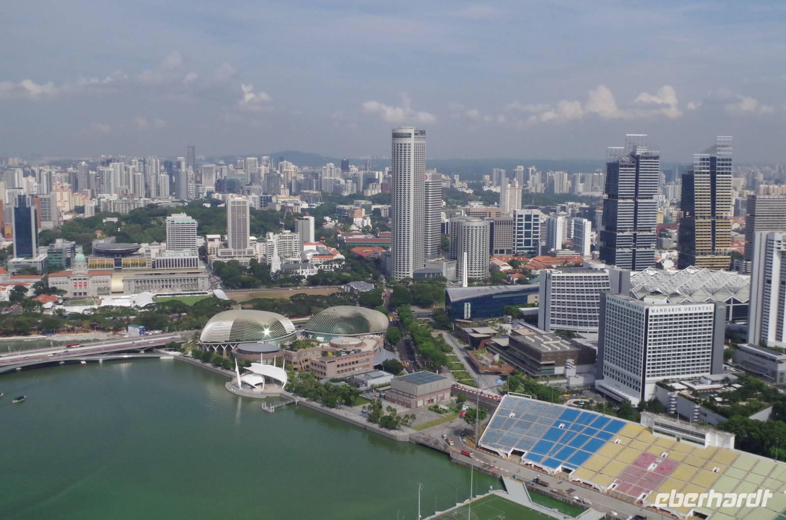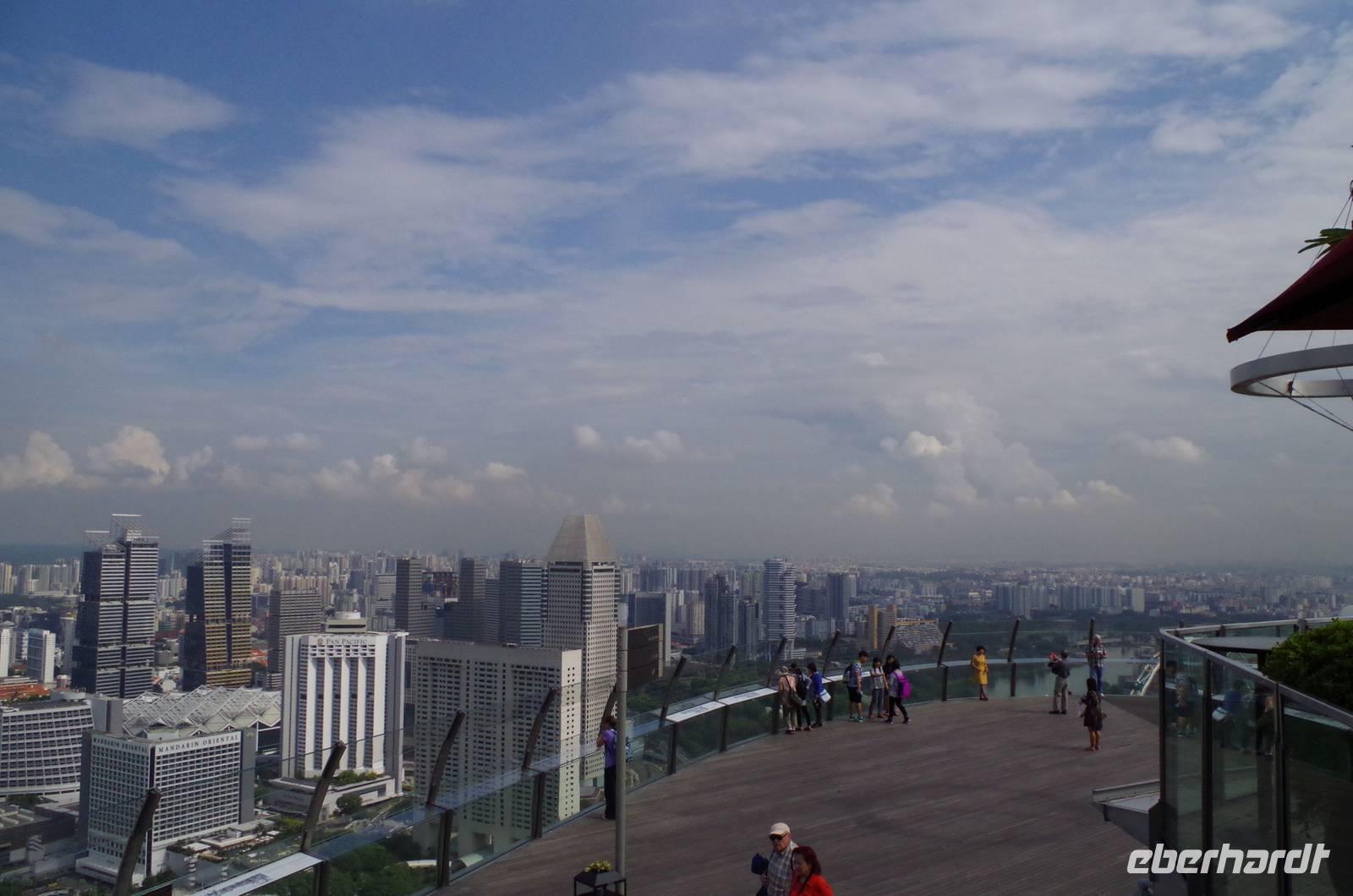 Hier hatten wir einen Wahnsinns-Ausblick auf Singapur. Wir entdeckten die Plätze, an denen wir gestern mit dem Boot entlang gefahren sind. Auch unseren nächsten Halt, die „Gardens of Bay", konnten wir schon ausfindig machen.