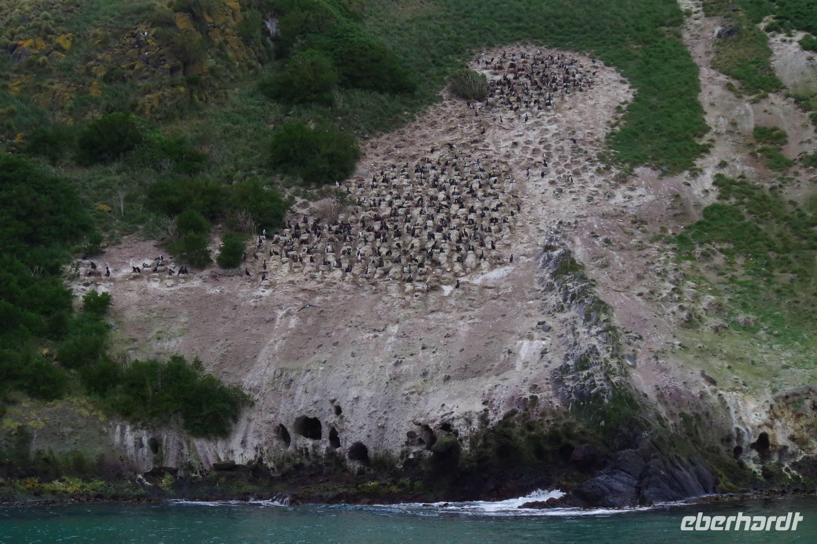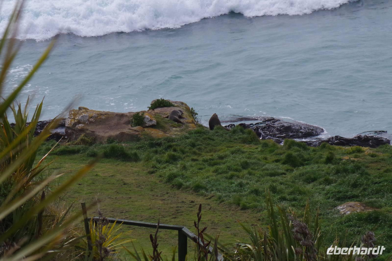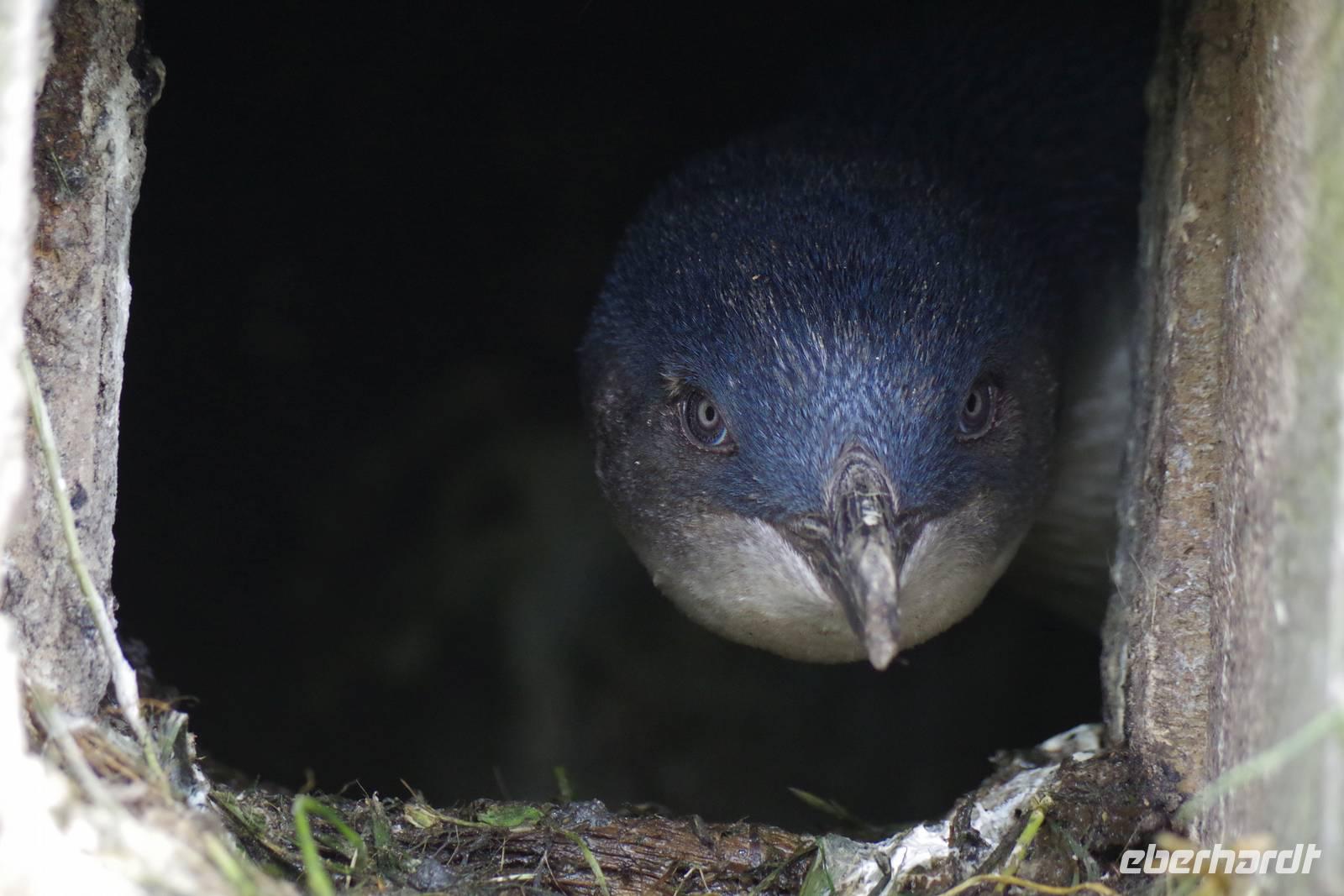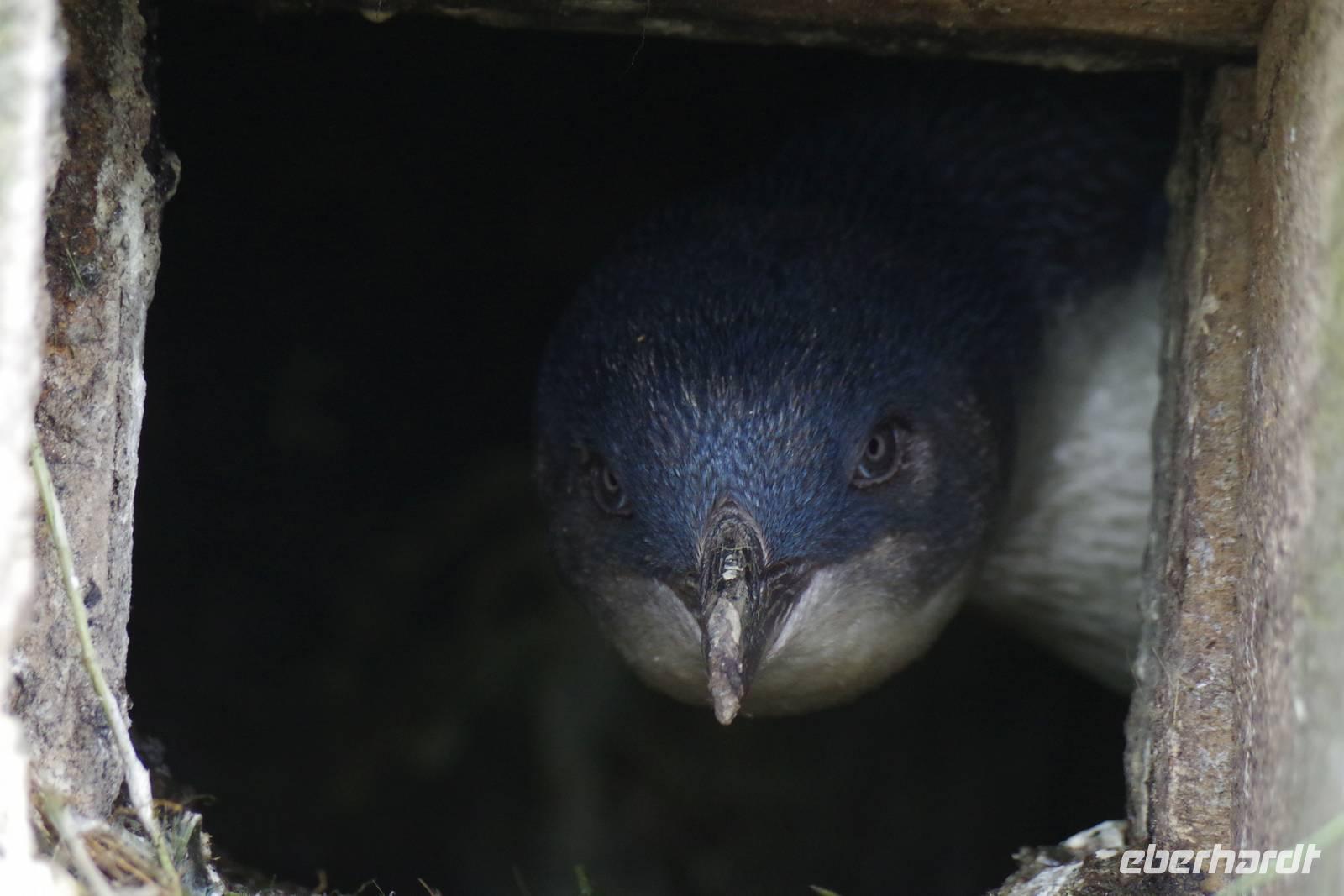 Nach einem ausgiebigen Frühstück fuhren wir zur Farm der Gelbaugenpinguine. Diese Farm liegt direkt an der Küste, an der jahrelang Gelbaugenpinguine und blaue Zwergpinguine nisteten und Ihre Jungen großzogen. Sie machten es sich zu Aufgabe, dieses Stück Küste zu sichern und vor Besuchern zu schützen. Nachdem wir einen kleinen Vortrag über die Pinguine, deren Nachwuchs und der Verhalten erfahren hatten, ging es für uns raus an die Küste. Wir entdeckten auf unserem Spaziergang die Nistplätze der blauen Zwergpinguine und sahen Robben sich auf Steinen sonnen. Durch spezielle Tunnel konnten wir relativ nah zu den Gelbaugenpinguinen vordringen. Wir beobachteten 2 Gelbaugenpinguine bei brüten.