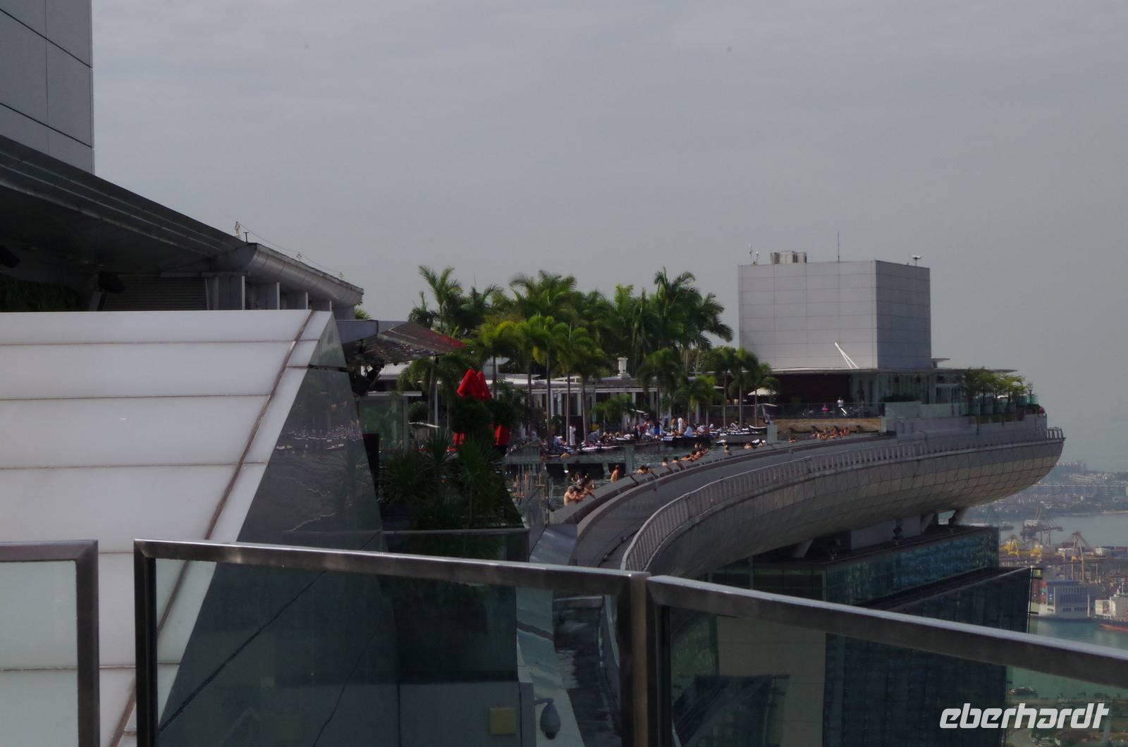 Nach einem ausgiebigen Frühstück konnten wir auch unseren Vormittag selbst gestalten. Wir hatten uns alle dafür entschieden, den höchsten Ausblick über die Stadt zu erkunden. Also rein ins Taxi und auf ging es zum Marina Sands, dem markanten Hotel mit dem Surfbrett auf dem Dach.