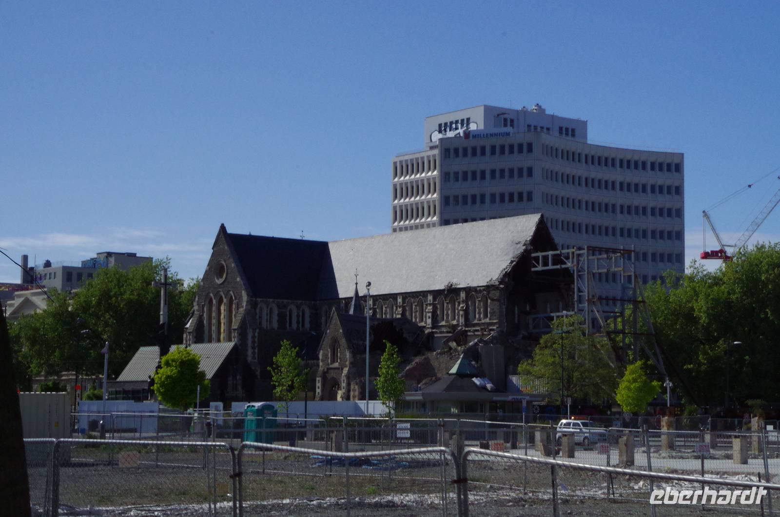 Wir unternahmen eine kleine Stadtrundfahrt durch Christchurch. Die Stadt befindet sich nach dem Erdbeben immer noch im Wiederaufbau. Überall kann man die Zerstörung und die damit verbundenen Baumaßnahmen erkennen.