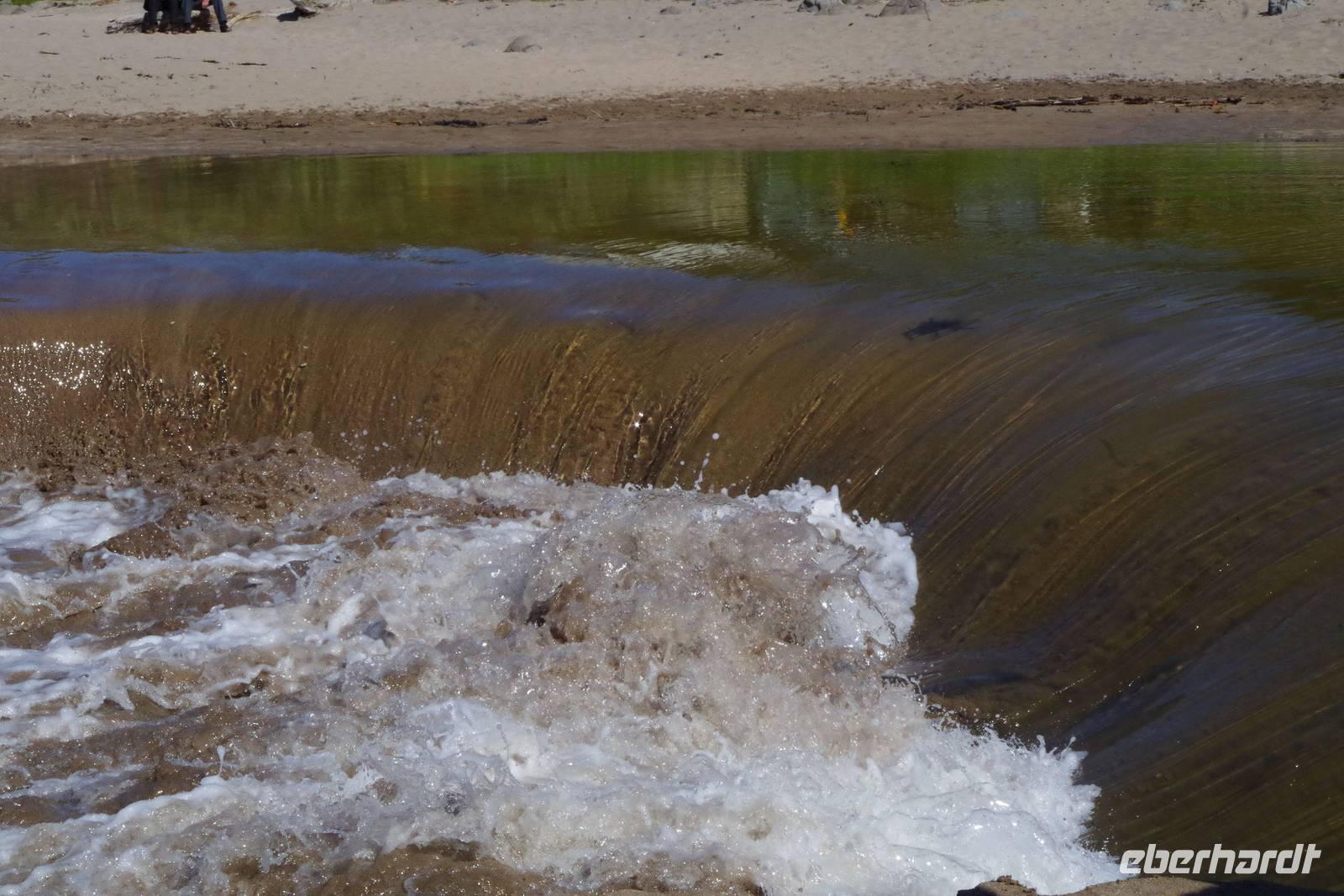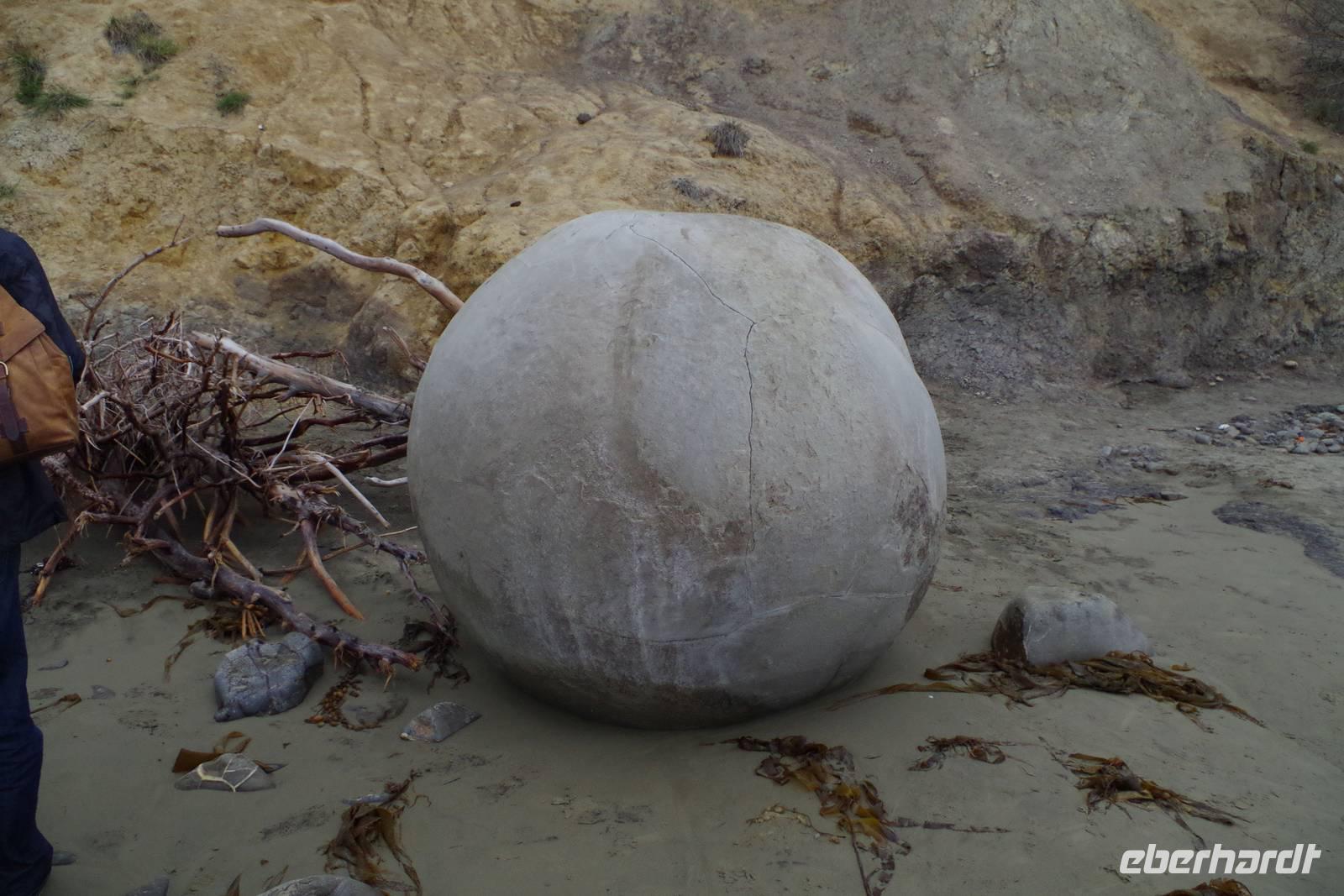 Da die Ebbe bereits weit fortgeschritten war, konnten wir viele von diesen Steinkugeln entdecken, besteigen und fotografieren. Auf aufgebrochene konnten wir sehen und uns die Beschaffenheit der Steinkugeln genau anschauen.