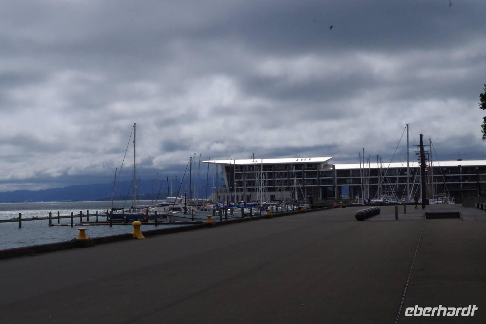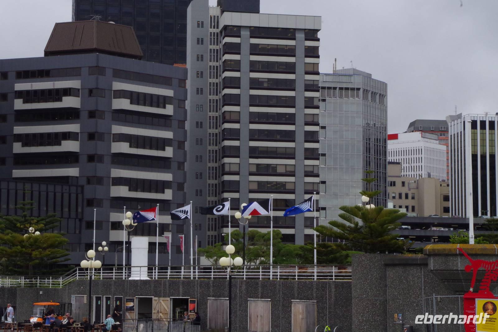 Heute verließen wir die Südinsel, denn wir wollten auf unserer Rundreise durch Neuseeland auch die Nordinsel kennenlernen. Also machten wir uns mit unseren Koffern auf zum Kiwi Trail. Der Kiwi Trail fuhr entlang der Küste über Blenheim bis nach Picton. Hier bestiegen wir die große Fähre, welche durch die Marlborough Sounds aufs offene Meer bis zur Nordinsel fährt. In Wellington, der Hauptstadt Neuseelands, angekommen, bezogen wir rasch unser Hotel. Der Tag war sehr lang und wir freuten uns auf ein schönes Abendessen, um den Abend ausklingen zu lassen.
