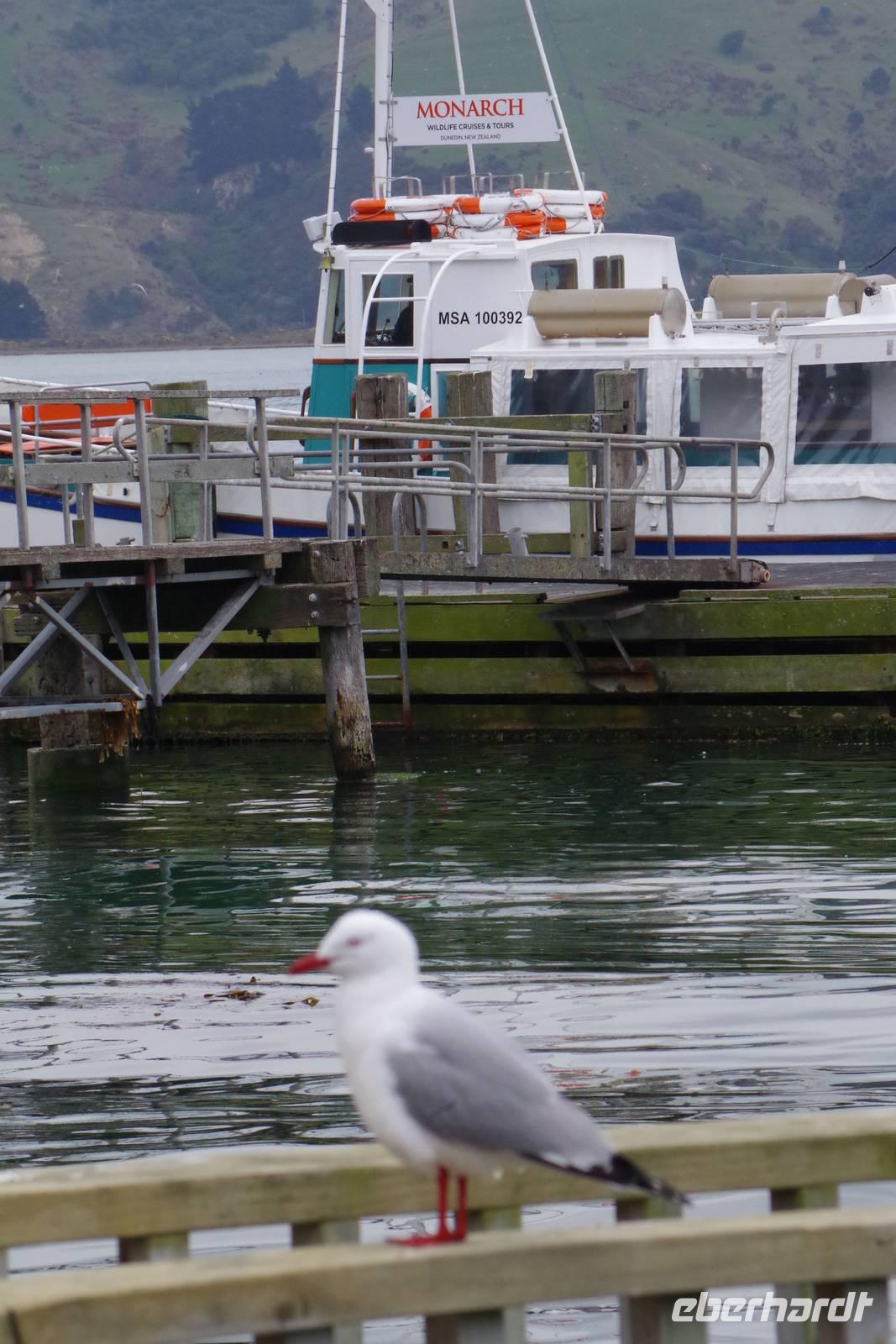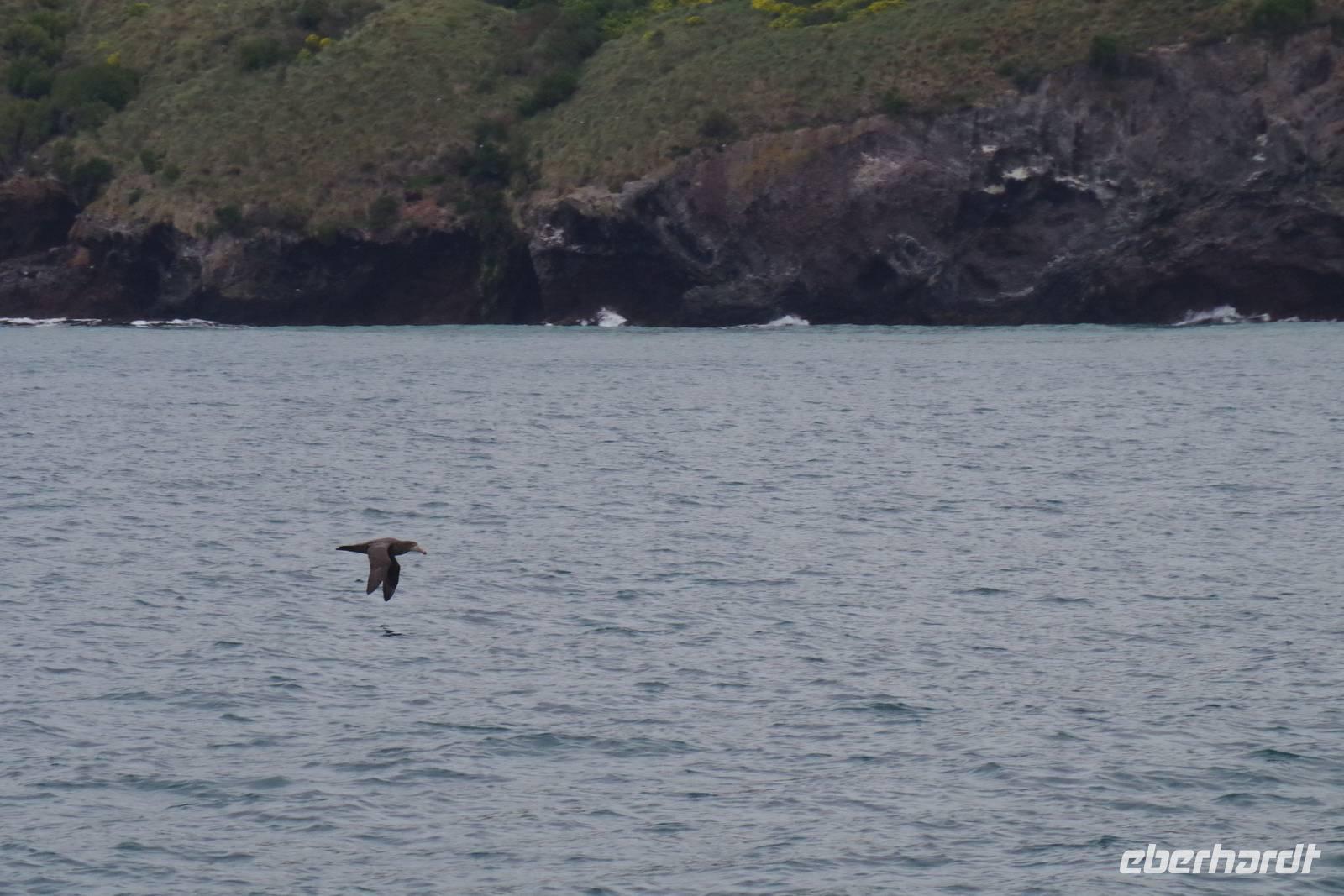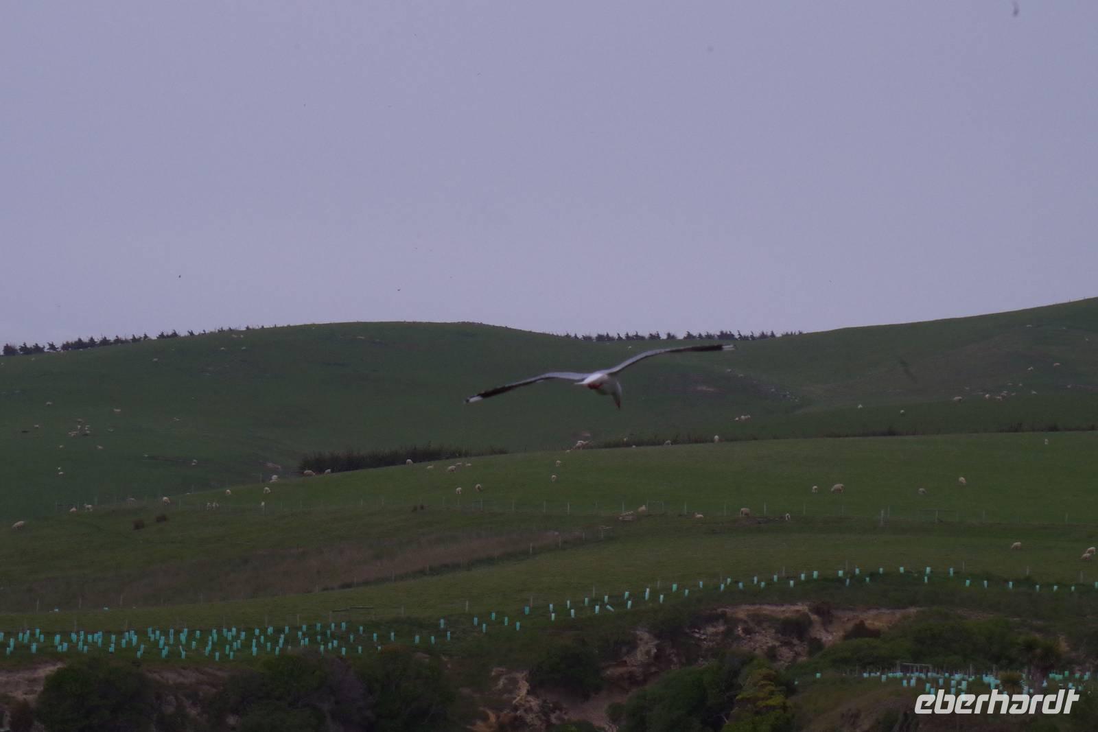 Auch Albatrosse wollten wir heute noch entdecken und so hieß es nach dem Abschied der Pinguin Farm rauf aufs Boot und hinaus aufs Meer. Wir sahen Nistplätze der verschiedensten Küstenvögel und auch der Albatros kam uns vor die Linse. Weiter draußen auf See wurden wir Zeuge der Flugkünste des stolzen Albatros. Mit diesen einmaligen Eindrücken ging es nun für uns auf die Otago Halbinsel.