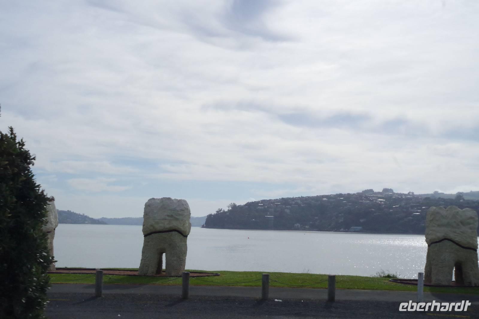 Der Zielort unserer heutigen Bustour hieß Paihia. Die Fahrt verging wie im nu und wir konnten auf halber Strecke schon den ersten Blick auf die ehemalige Hauptstadt Auckland werfen. Bevor wir in Paihia ankamen, machten wir noch einen weiteren Fotostopp in Whangarei. Den Nachmittag verbrachte jeder individuell in Paihia.