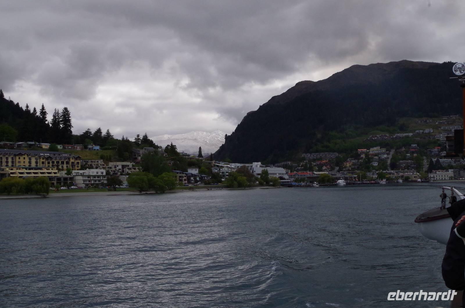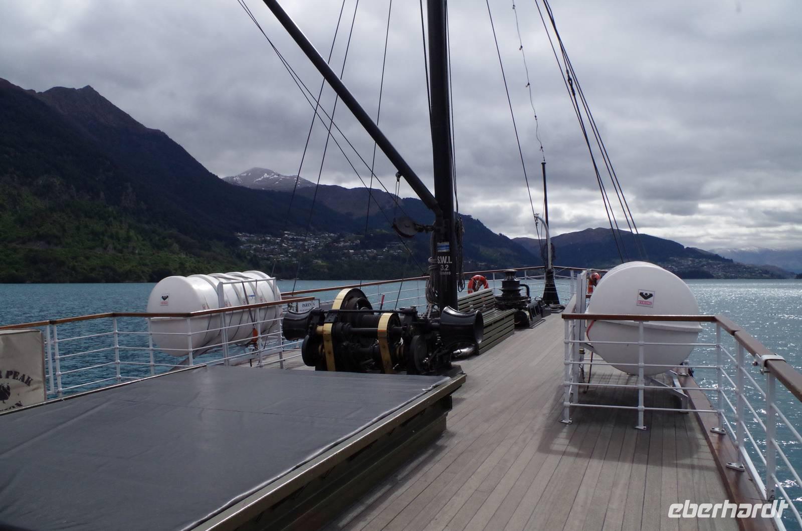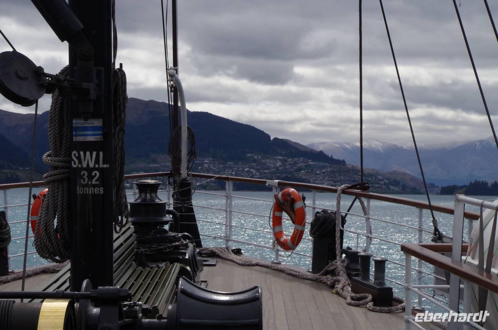 "TSS Earnslow" auf dem Lake Wakatipu. Das Wetter wurde immer besser und auch die Sonne traute sich langsam raus.