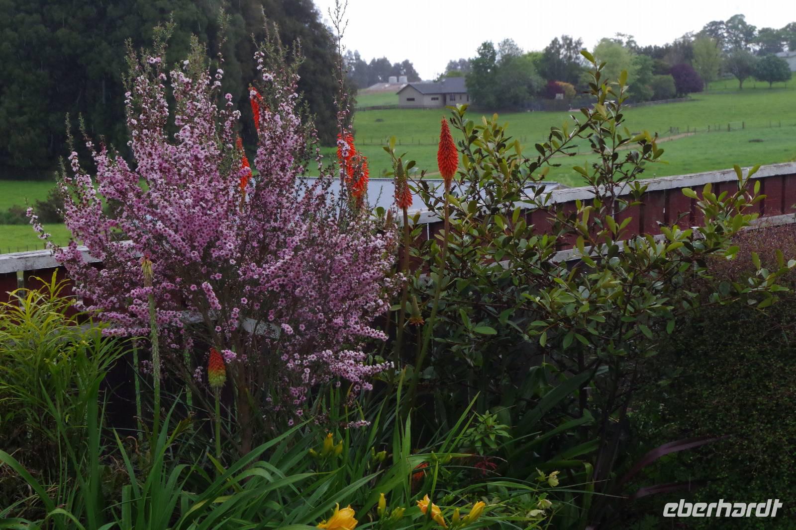 Während wir durch den Garten spazierten und die tollen Pflanzen betrachteten und fotografierten, öffnete der Himmel seine Tore und es schüttete wie aus Eimern.
