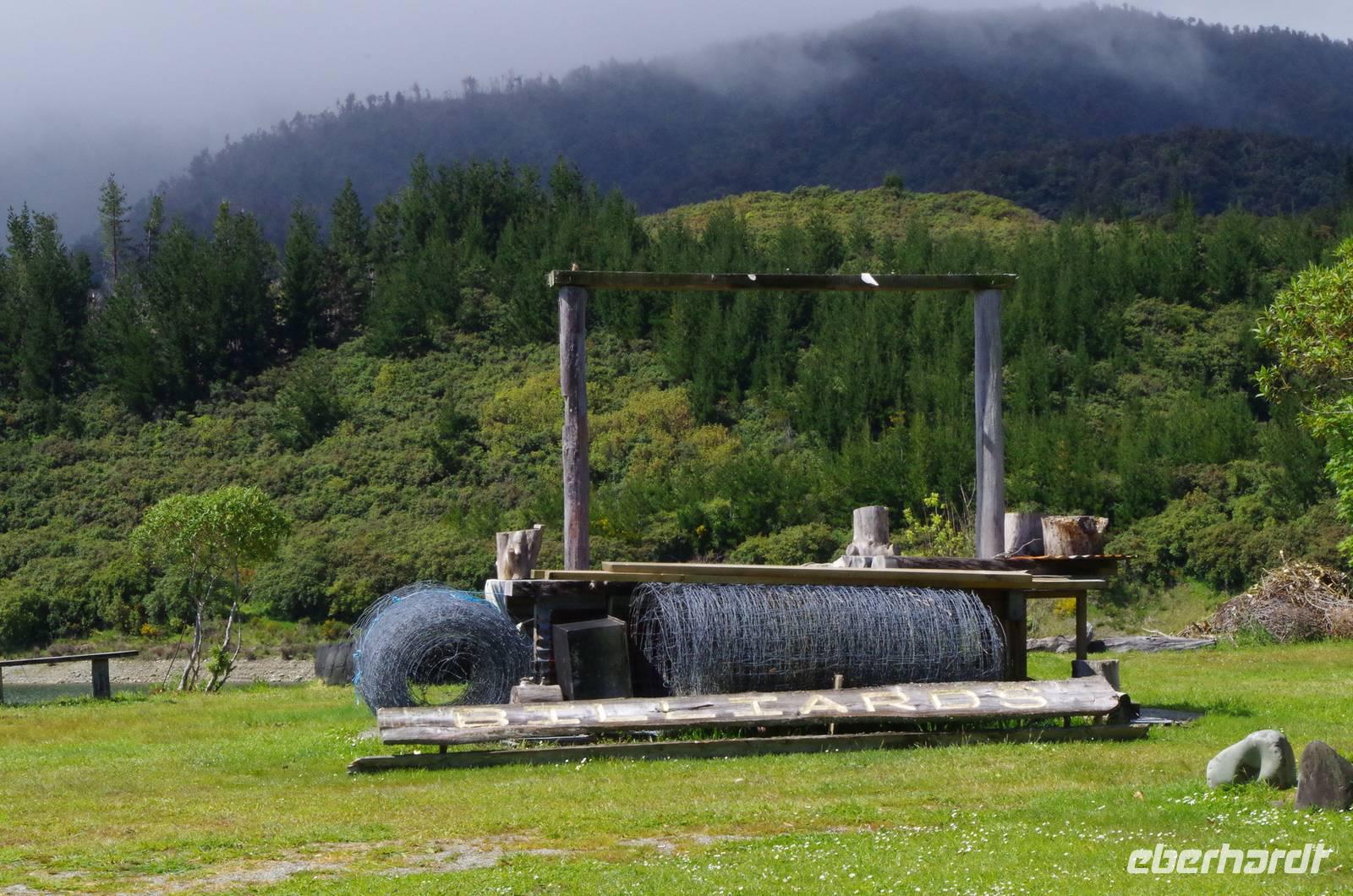 Unser zweiter Stopp an diesem Fahrtag war Sheep Creek. Hier machten wir einen Spaziergang durch einen weiteren Regenwald mit Sumpfgebiet und anschließend an der rauen Tasman Küste entlang. Der Regen hörte am späten Nachmittag endlich auf und wir konnten ohne Regenschirm einen Spaziergang durch die ehemalige Goldgräberstadt Arrowtown unternehmen.