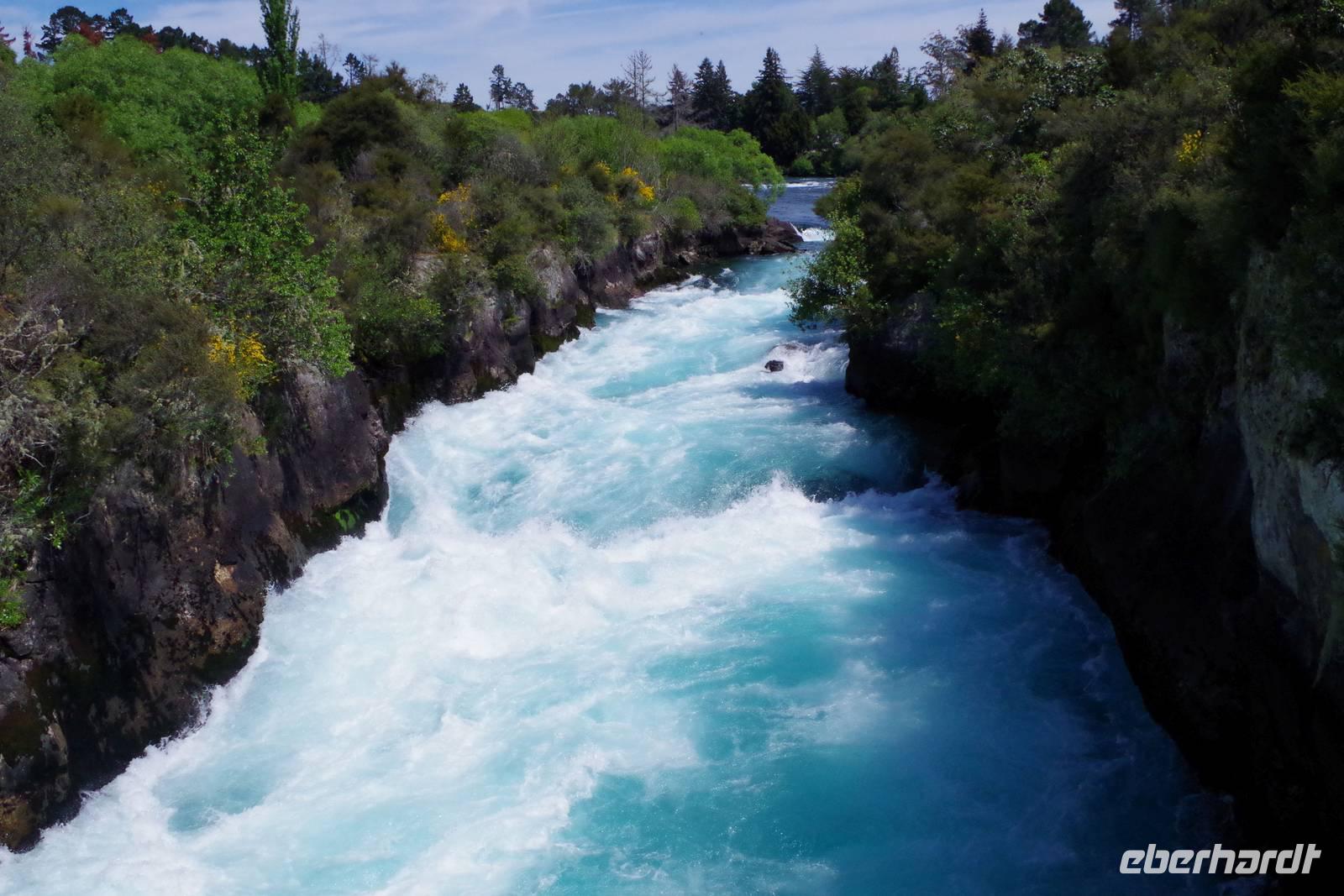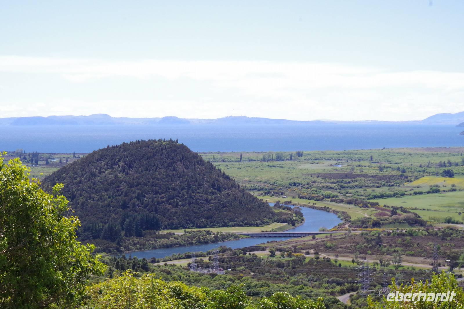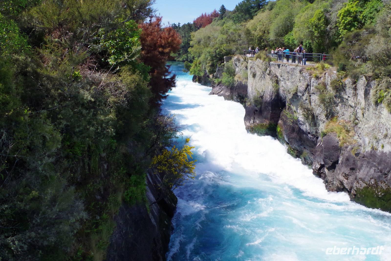 Beim Fotostopp am Lake Taupo gab es schon die nächsten Eindrücke. Dort machten wir eine Mittagspause und fuhren anschließend zu den Huka Falls.