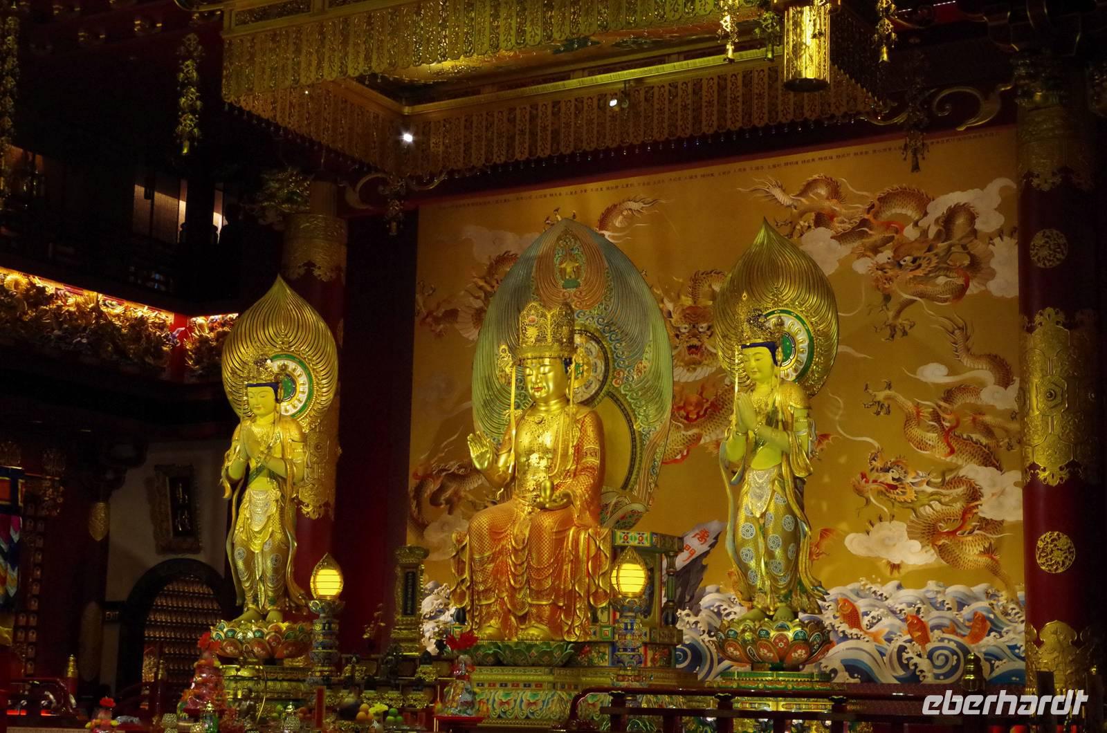 Unser nächster Halt waren Little India und Chinatown mit Besuch des buddhistischen Tempels und der typischen Märkte. Noch ein kurzer Stopp mit einem fantastischen Ausblick auf den Merlion, dem Wahrzeichen von Singapur, und dem Marina Sands im Hintergrund.
