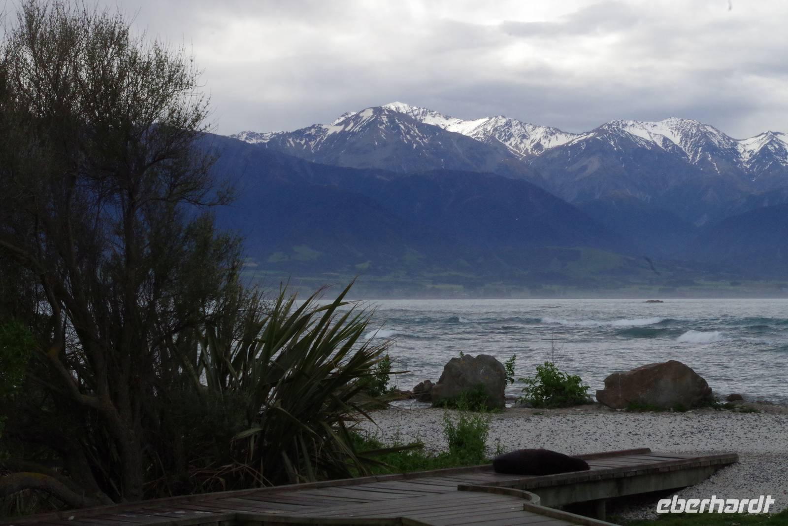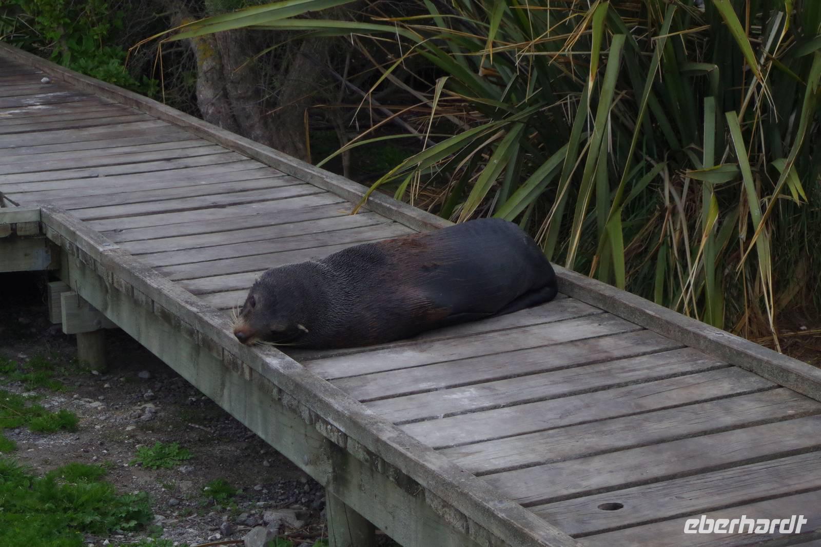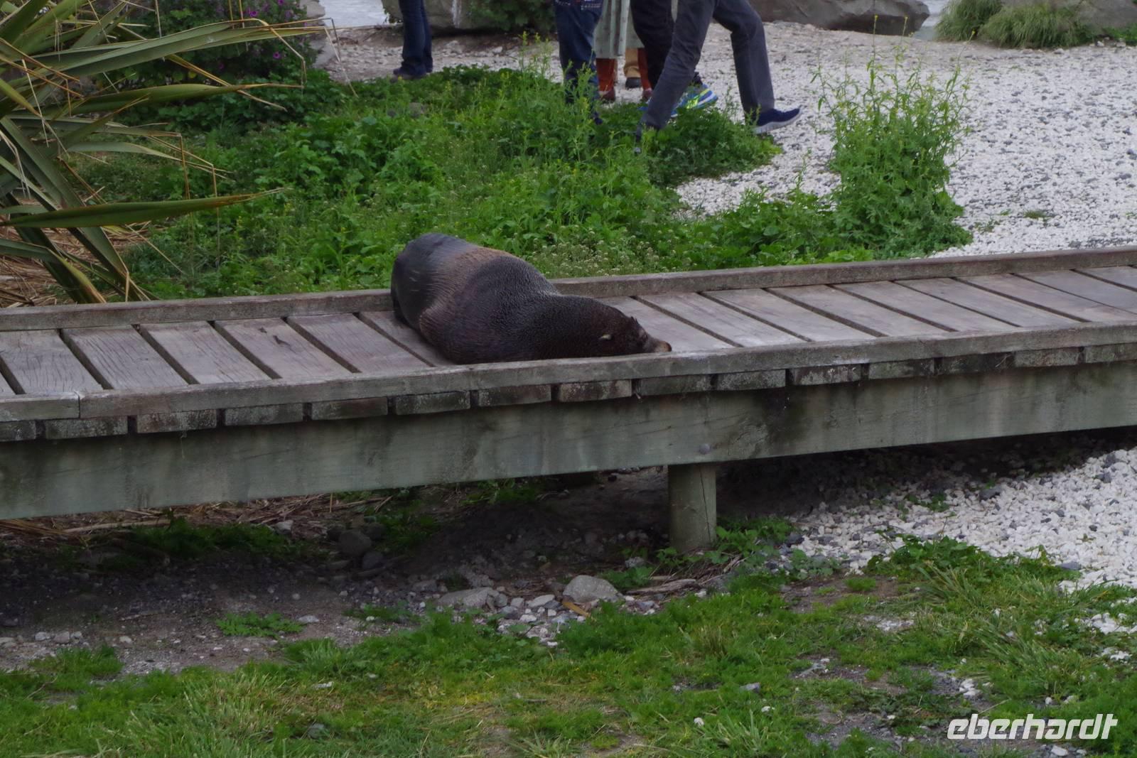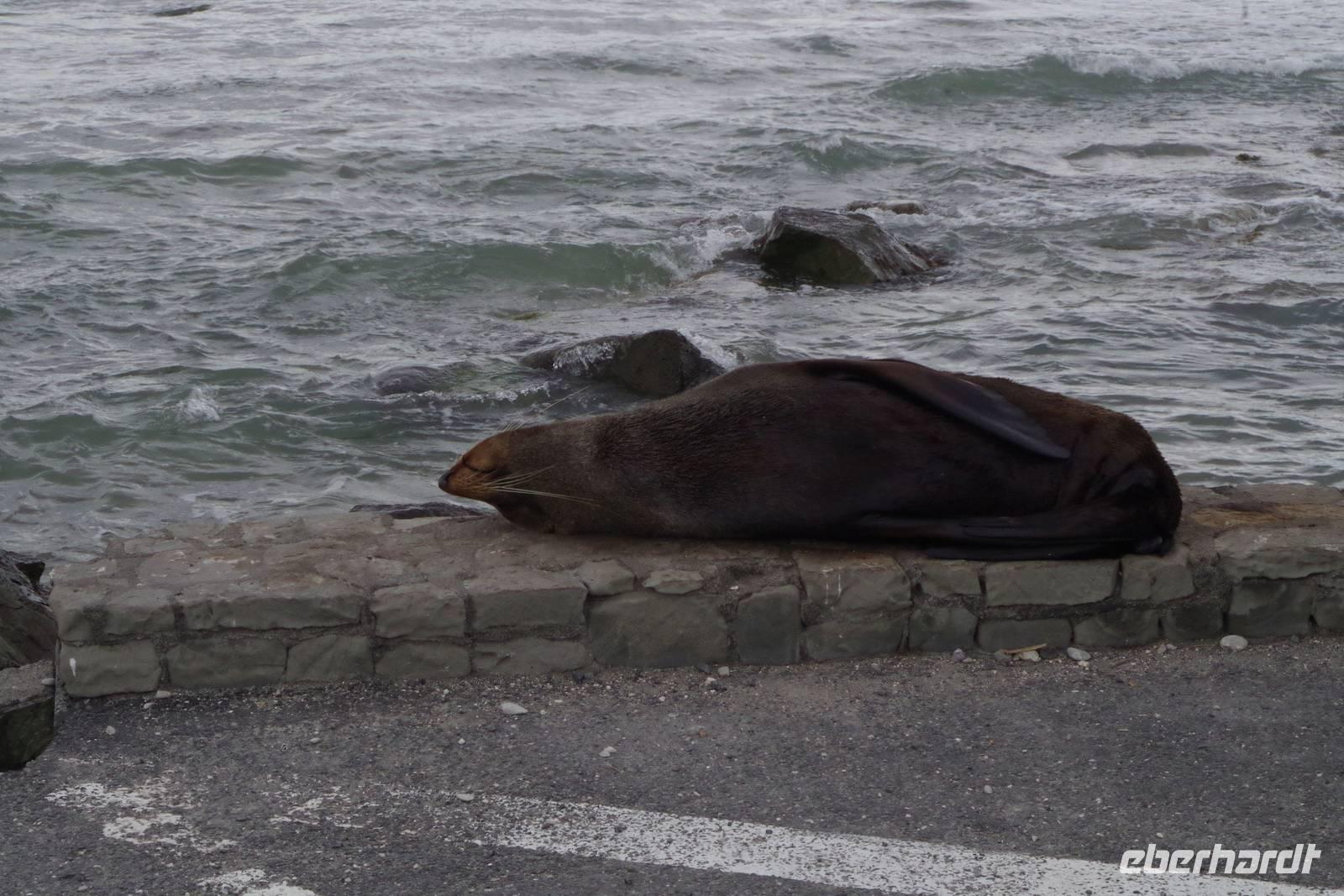 Der Lake Tekapo liegt in der berühmten Mckenzie Ebene welche direkt im Zentrum der Südinseln Neuseelands liegt. Seinen Namen hat das Gebiet von einem der berühmtesten Gesetzeslosen: James McKenzie, der beschuldigt wurde, Vieh gestohlen zu haben. Somit machten wir uns direkt nach dem Frühstück auf zur Kirche zum Gedenken an James Mckenzie. Auch ein Denkmal für seinen Hund wurde hier errichtet. Die Fahrt führte und nun durch die James Mckenzie Ebene weiter an die pazifische Küste bis hin nach Kaikoura. Den langen Fahrtag verkürzten wir durch einige kleine Fotostopps an der Ostküste entlang. In Kaikoura angekommen fuhren wir zuerst durch den Stadtkern bis hin zum Strand. Dort konnten wir auf Tuchfühlung mit Robben gehen. Sie scheinen Touristen gewöhnt zu sein und genossen das Bad in der Menge. Nach einem leckeren Abendessen ließen wir den Abend gemütlich ausklingen.